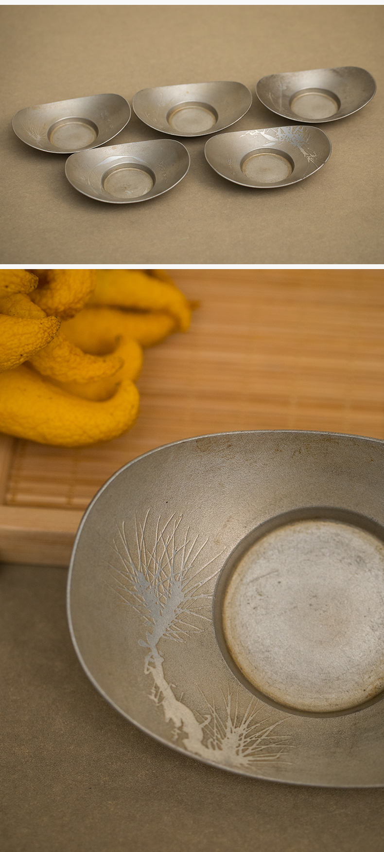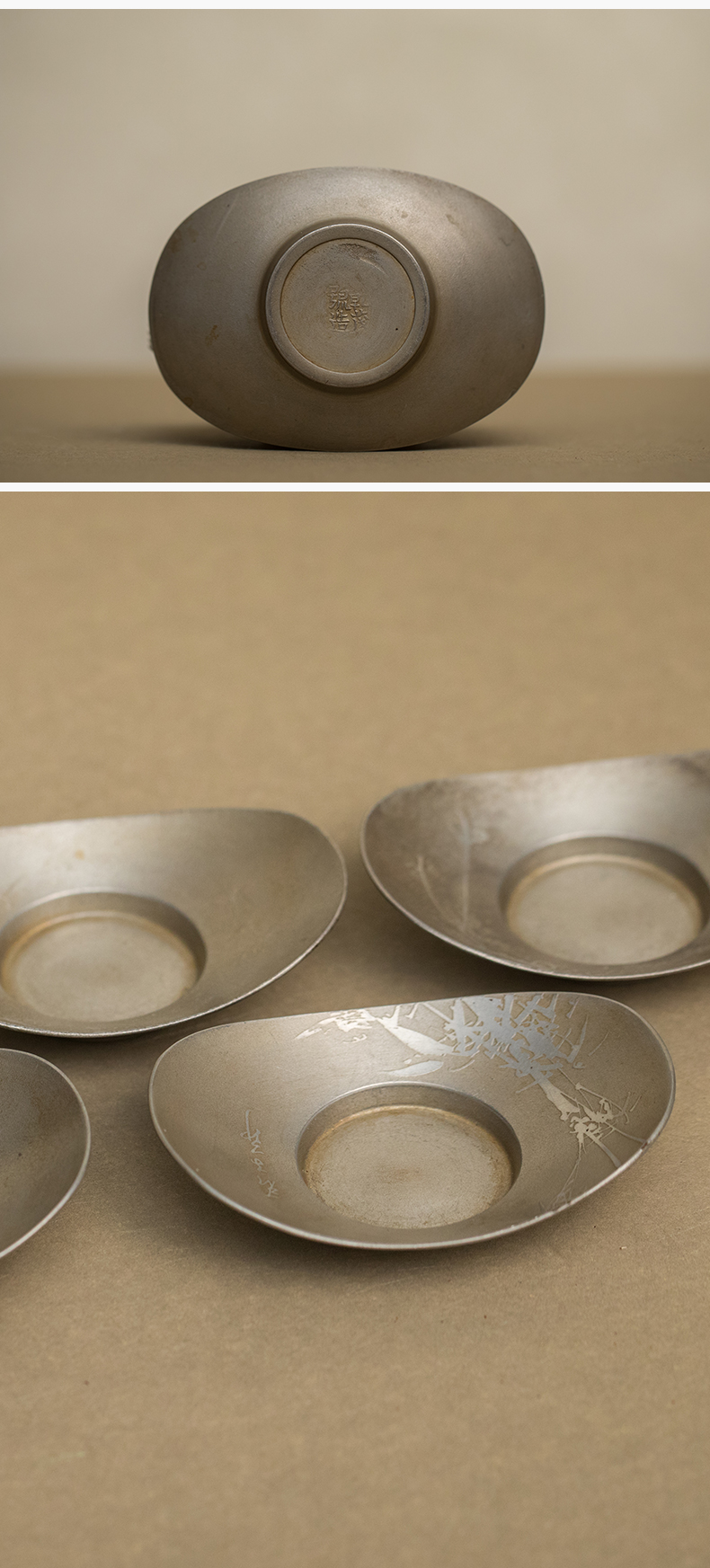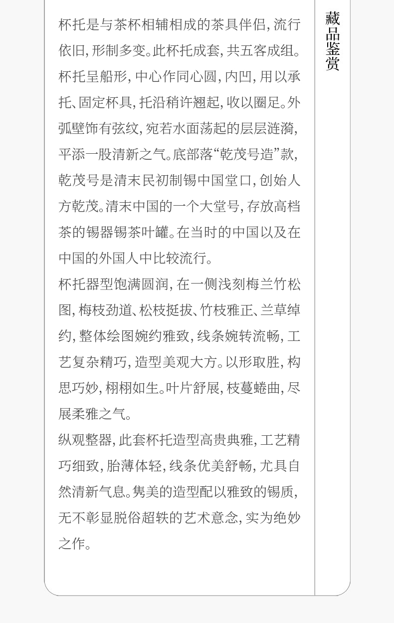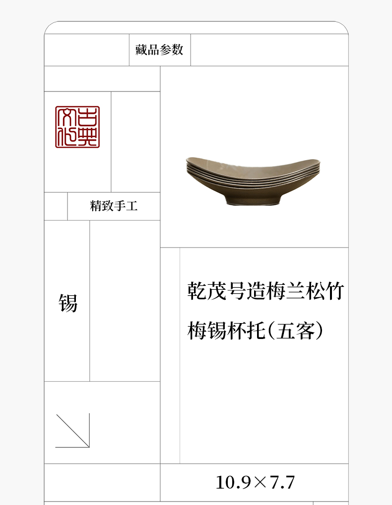 乾茂号造梅兰松竹梅锡杯托(五客)