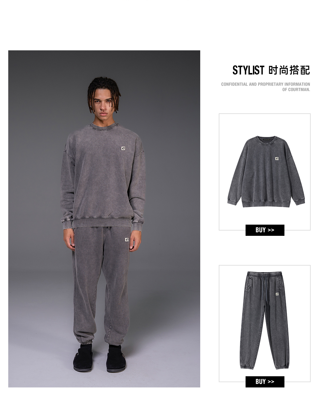 COURTMAN野球帝重磅水洗束脚长裤秋季新款美式复古简约百搭裤子