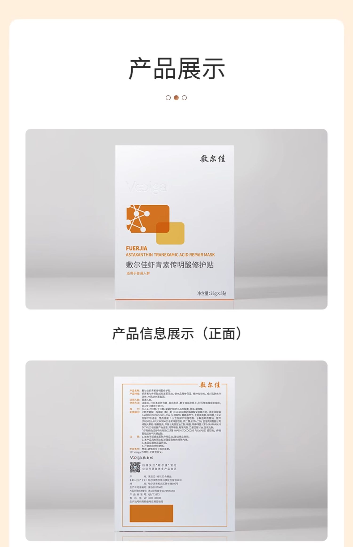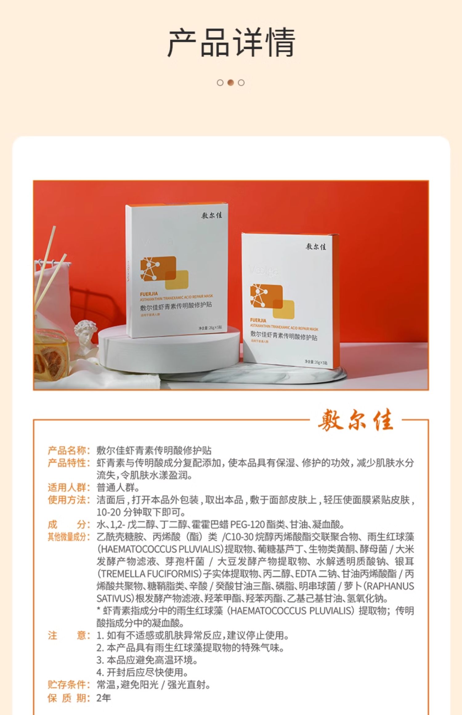 敷尔佳 虾青素传明酸修护贴(灯泡膜) 26g*5