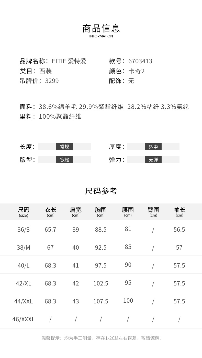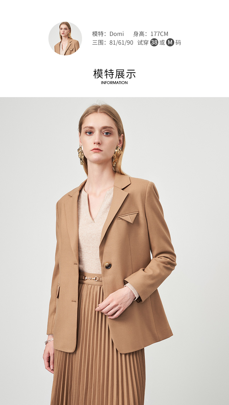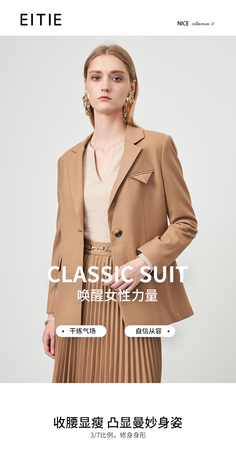 EITIE爱特爱秋冬季新款气质通勤职业显瘦单排扣西装外套6703413