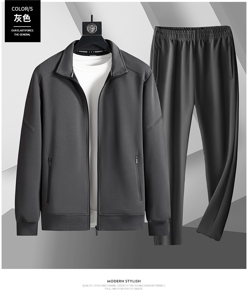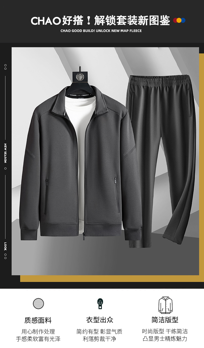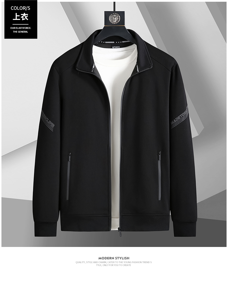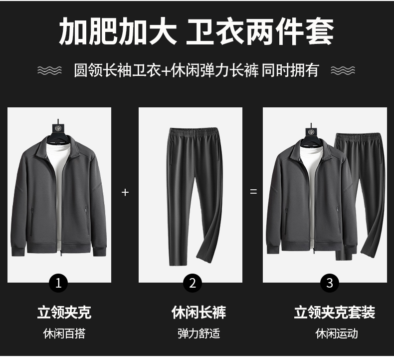 【圈】【新款DK】大依优型大码套装立领外套运动服加肥加大两件套套装休闲大号运动男上衣