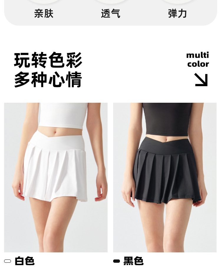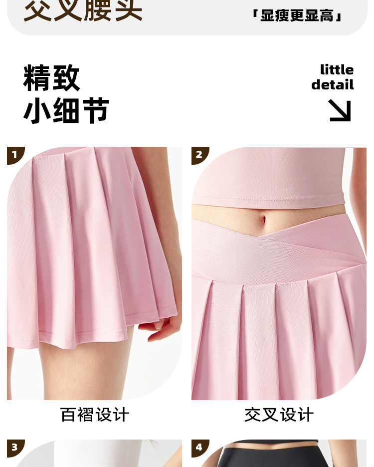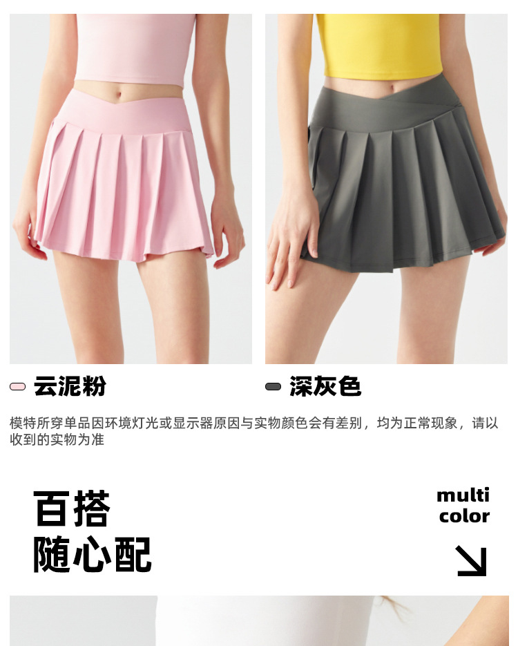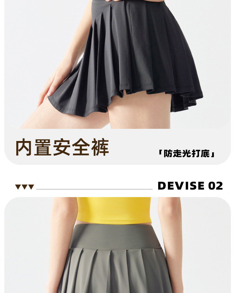 跃牌【海听系列】假两件百褶瑜伽裙女防走光羽毛球网球健身运动短裙XC12