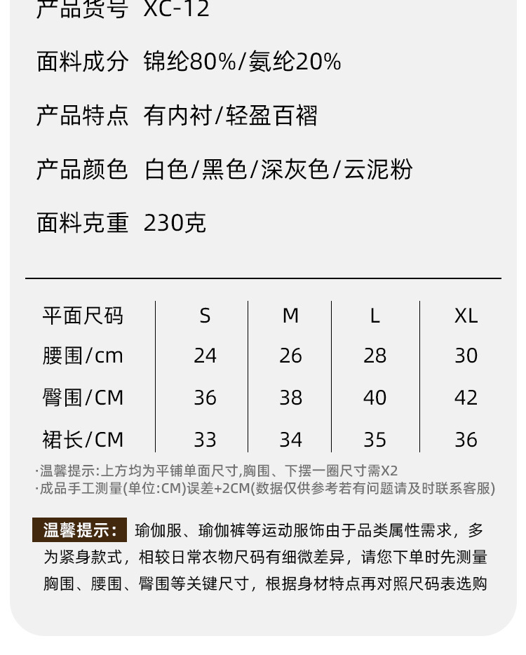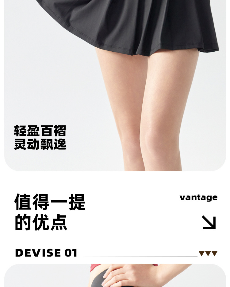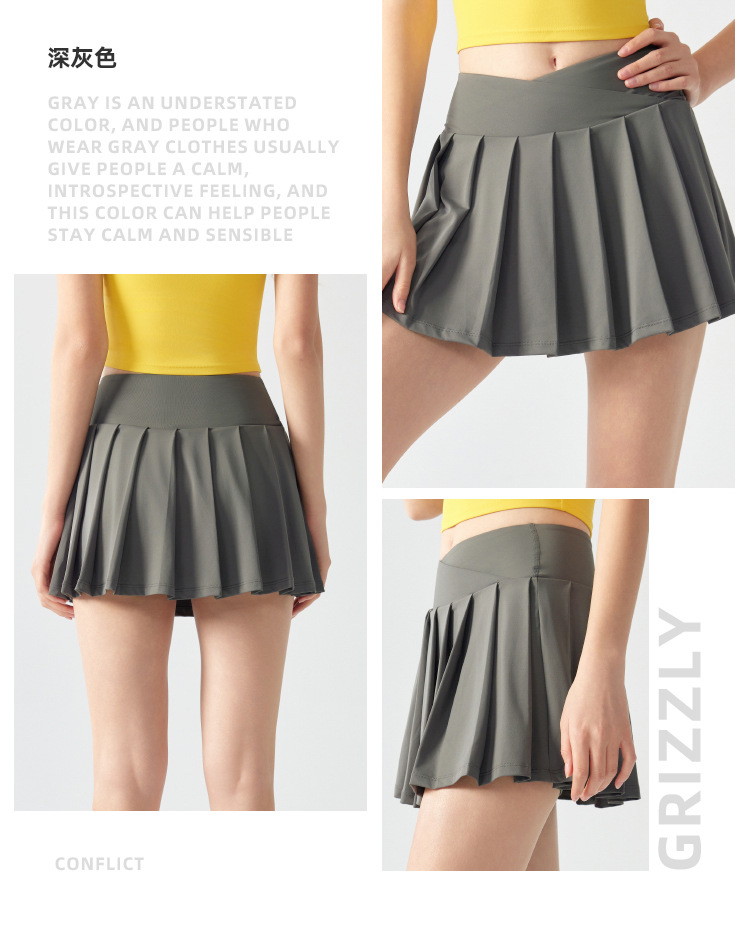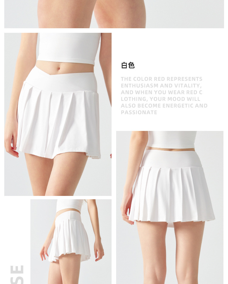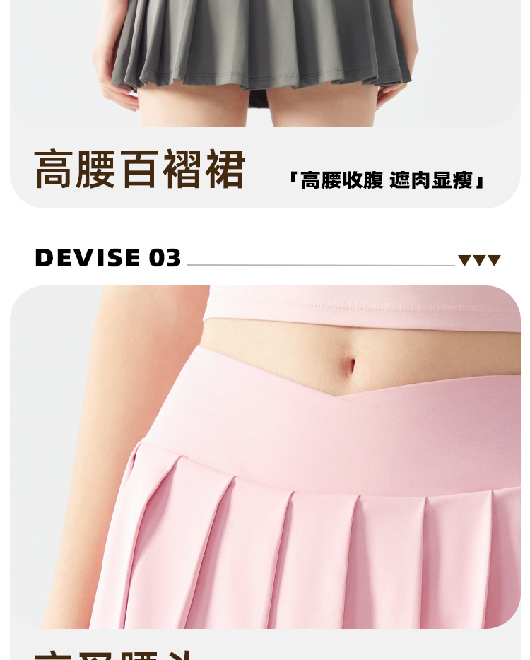 跃牌【海听系列】假两件百褶瑜伽裙女防走光羽毛球网球健身运动短裙XC12