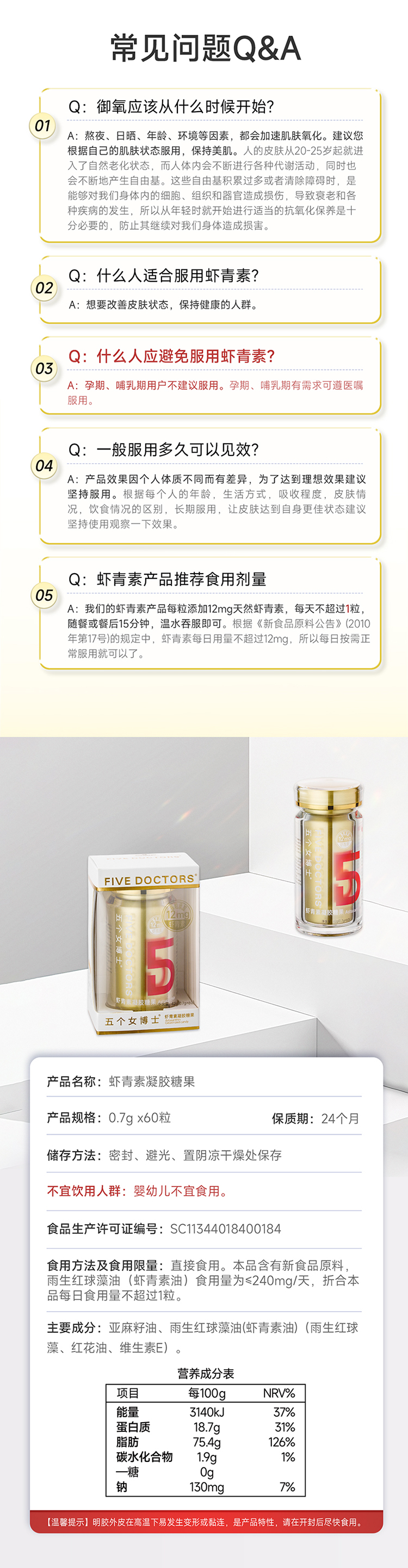 五个女博士 虾青素凝胶糖果0.7g*60粒