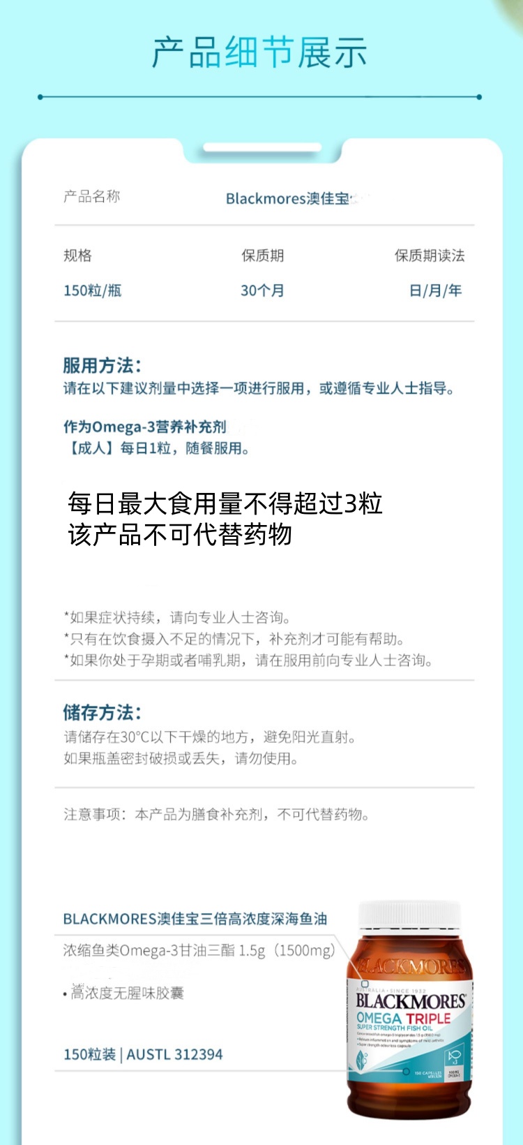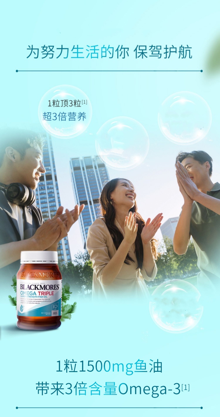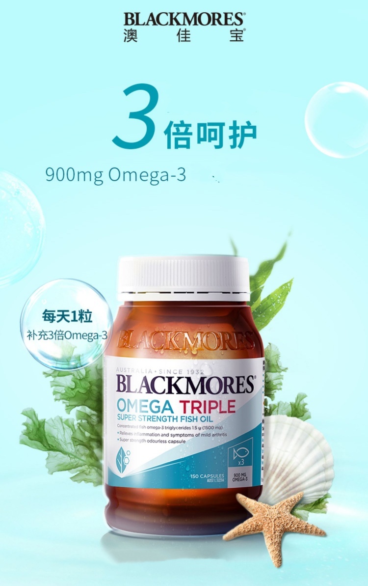 【跨境】澳佳宝Blackmores深海鱼油胶囊150粒/瓶 进阶版3*