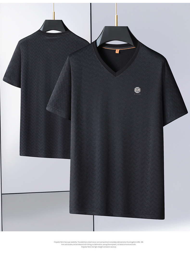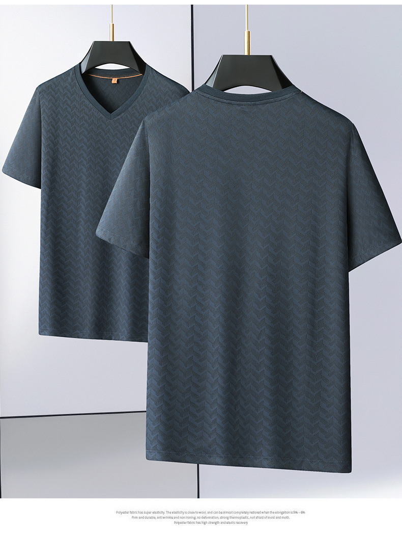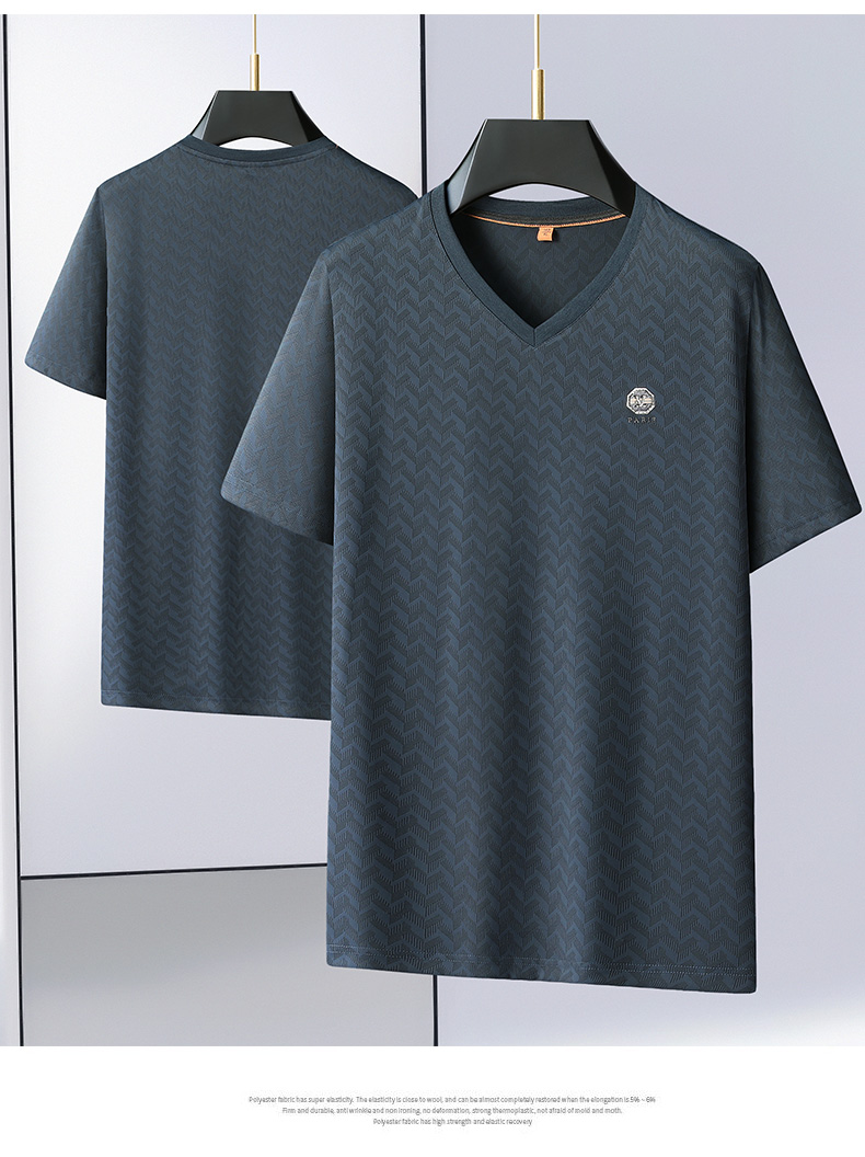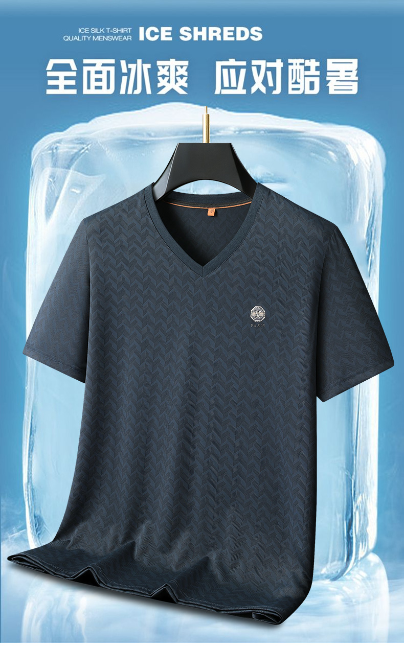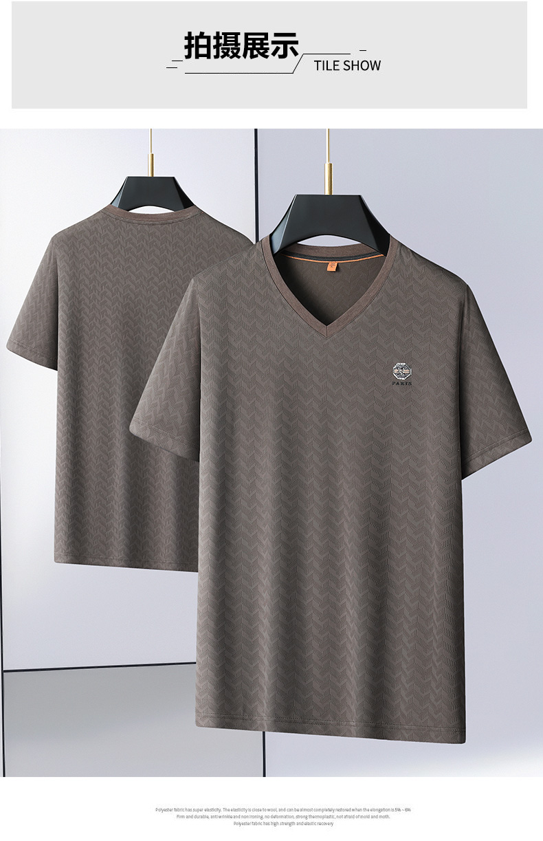 【V领】【冰丝高弹】【新款DWP】大依优型大码条纹短袖T恤加肥加大男士大号弹力透气舒适夏季半袖