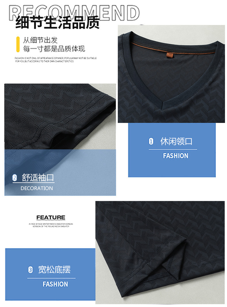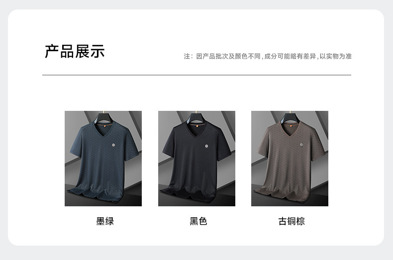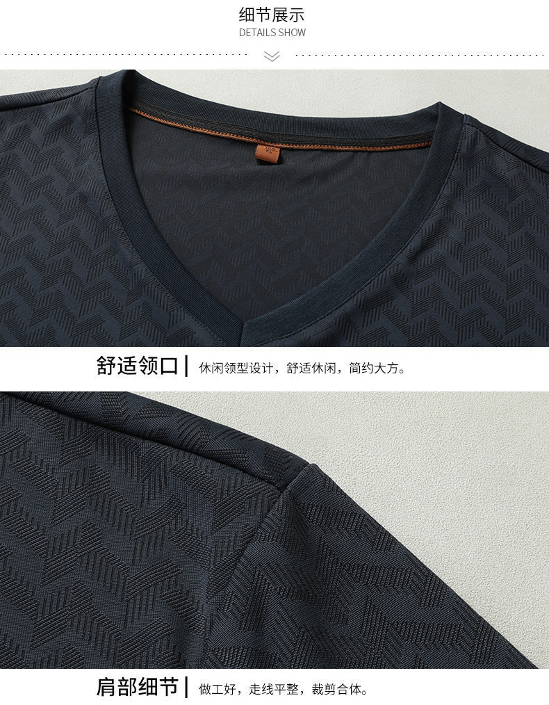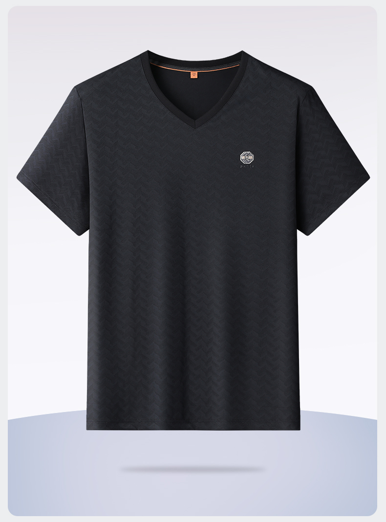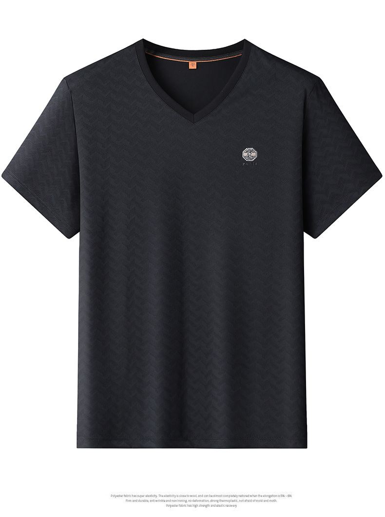 【V领】【冰丝高弹】【新款DWP】大依优型大码条纹短袖T恤加肥加大男士大号弹力透气舒适夏季半袖
