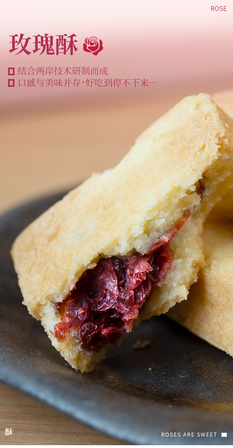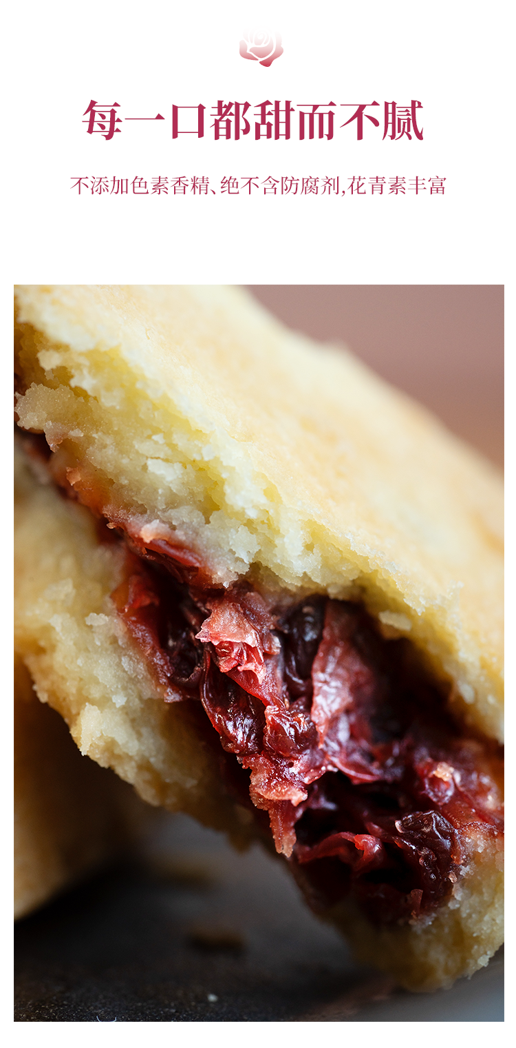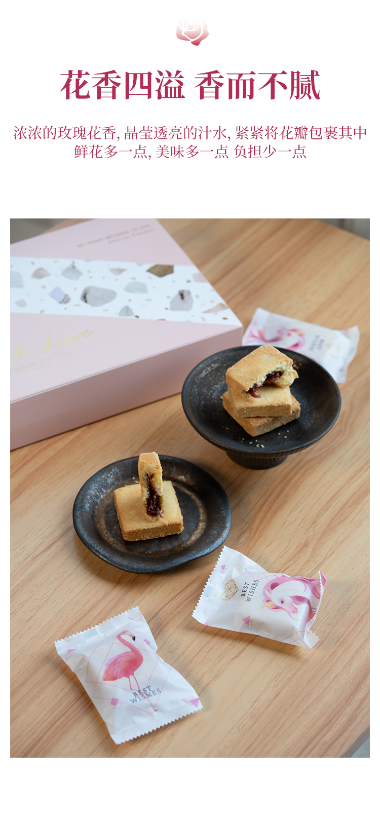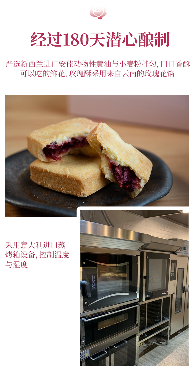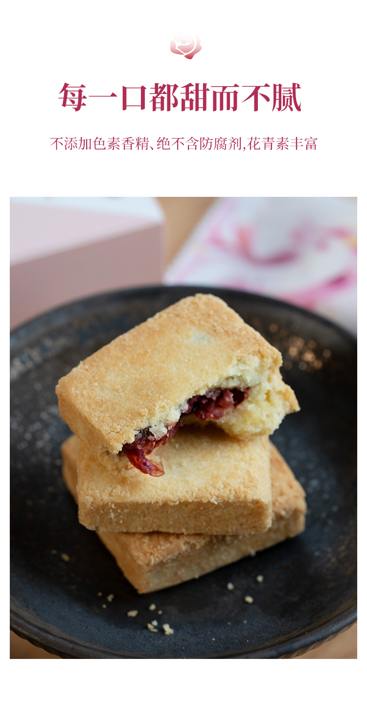 【配料】小麦粉、 糖粉、 新西兰奶粉、纯动物性黄油、玫瑰花馅、鸡蛋