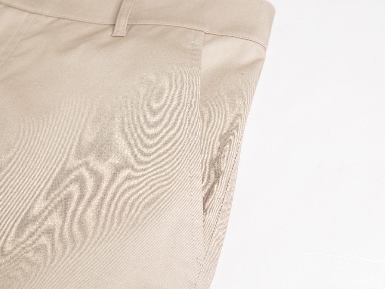 斜纹织法的纯棉面料,既有工装裤的耐磨和挺括,又不像一般的工装裤那样硬邦邦