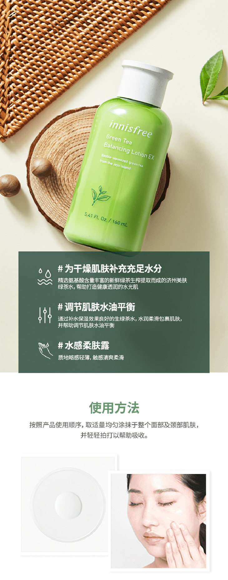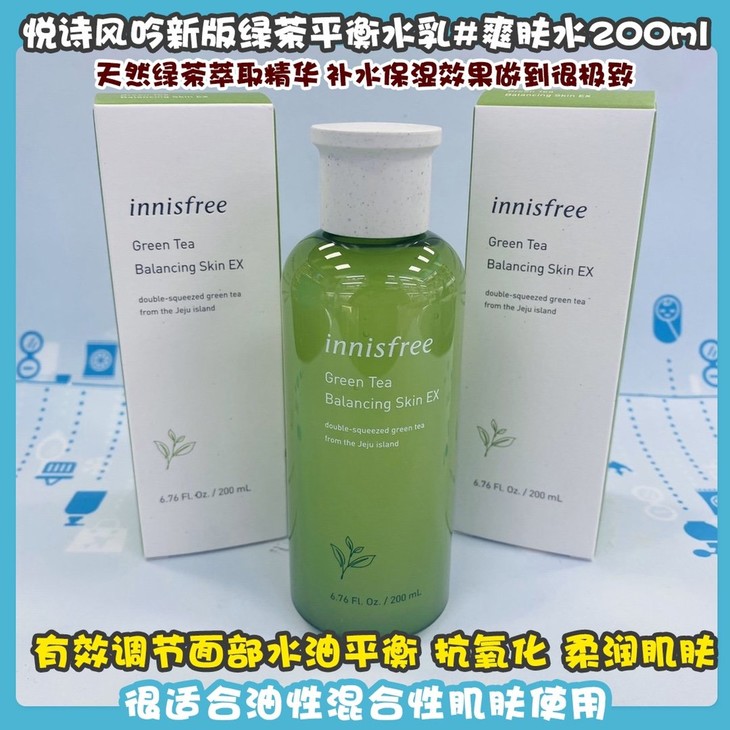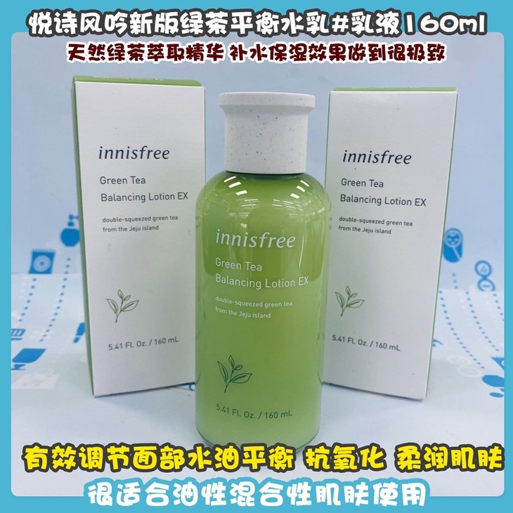悦诗风吟新版绿茶平衡水乳#爽肤水200ml/#乳液160ml 👍天然绿茶萃取精华🌿,补水保湿效果做到很极致💦!有效调节面部水油平衡,抗氧化,柔润肌肤😁,增强皮肤新陈代谢,同时对镇定、防粉刺、软化肌肤具有一定作用✅,从基础上改善肤质~涂抹的时候能感受到水分在皮肤上绽开💆,提升内在水分锁住能量,使皮肤由内而外充满水分!悦诗风吟家的水乳清爽滋润不粘腻🍃,很适合油性混合性肌肤使用。