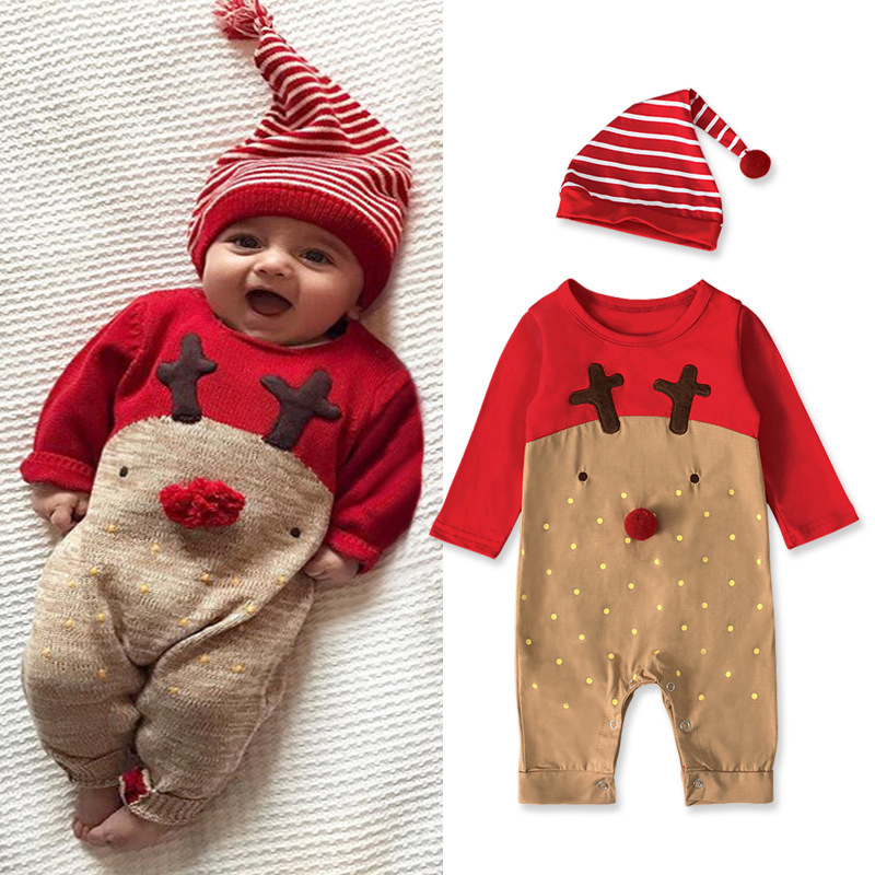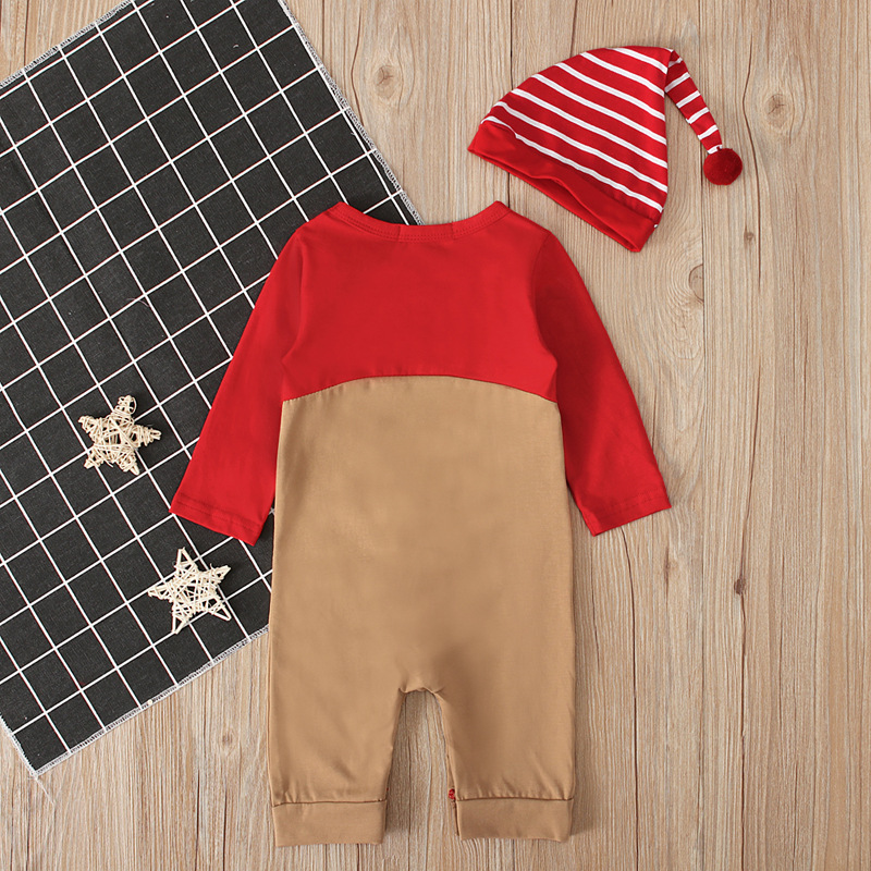 【圣诞小鹿套装!简约大方】男女儿童春秋冬款圣诞小鹿长袖哈衣条纹帽子,宝宝爬爬服连身衣套装,。温柔呵护,保暖舒适,轻松穿脱,让孩子尽情奔跑lm