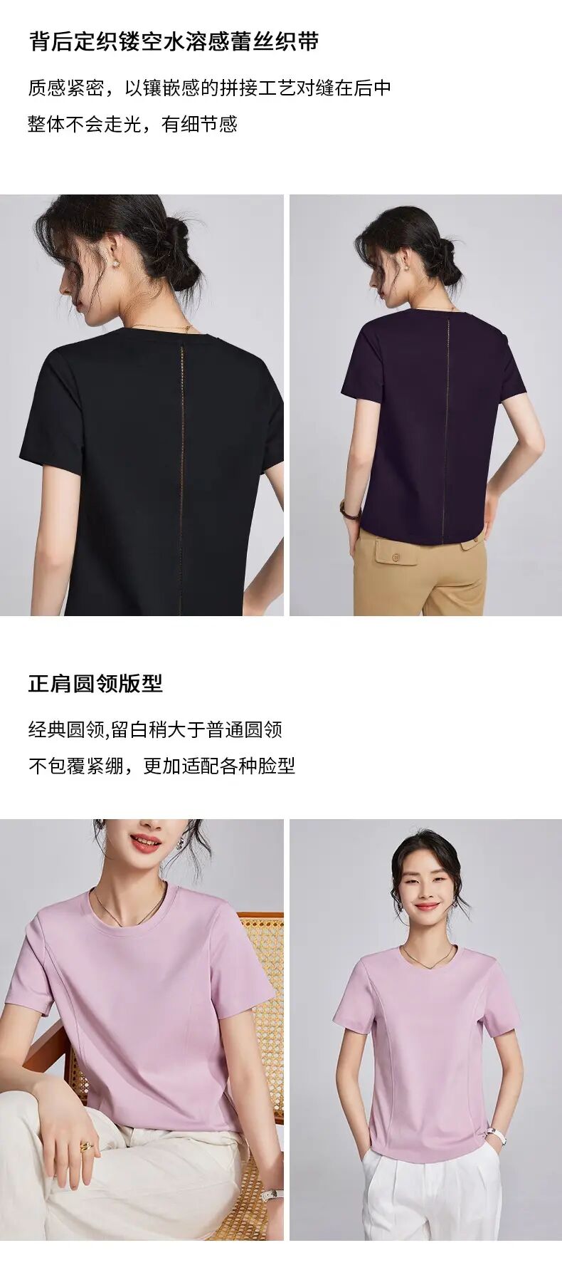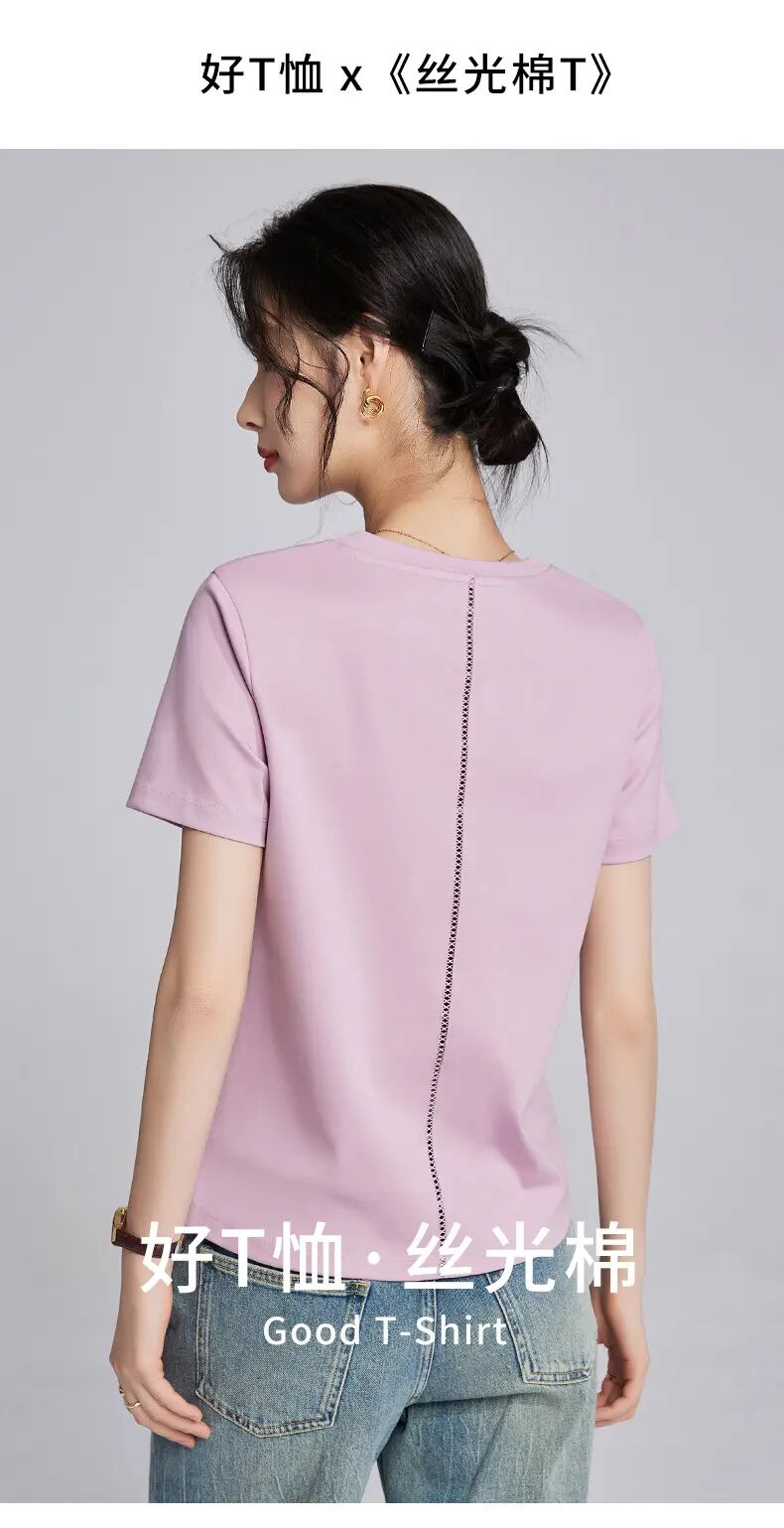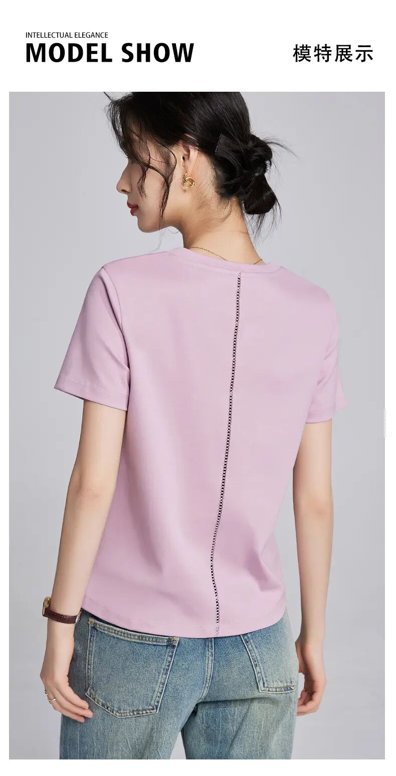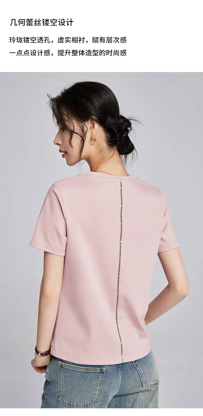 「自」全新升级【铂金会员109/天猫139/差价30】(00419)洛诗琳2025夏季后背镂空蕾丝织带丝光棉正肩凉感T恤女