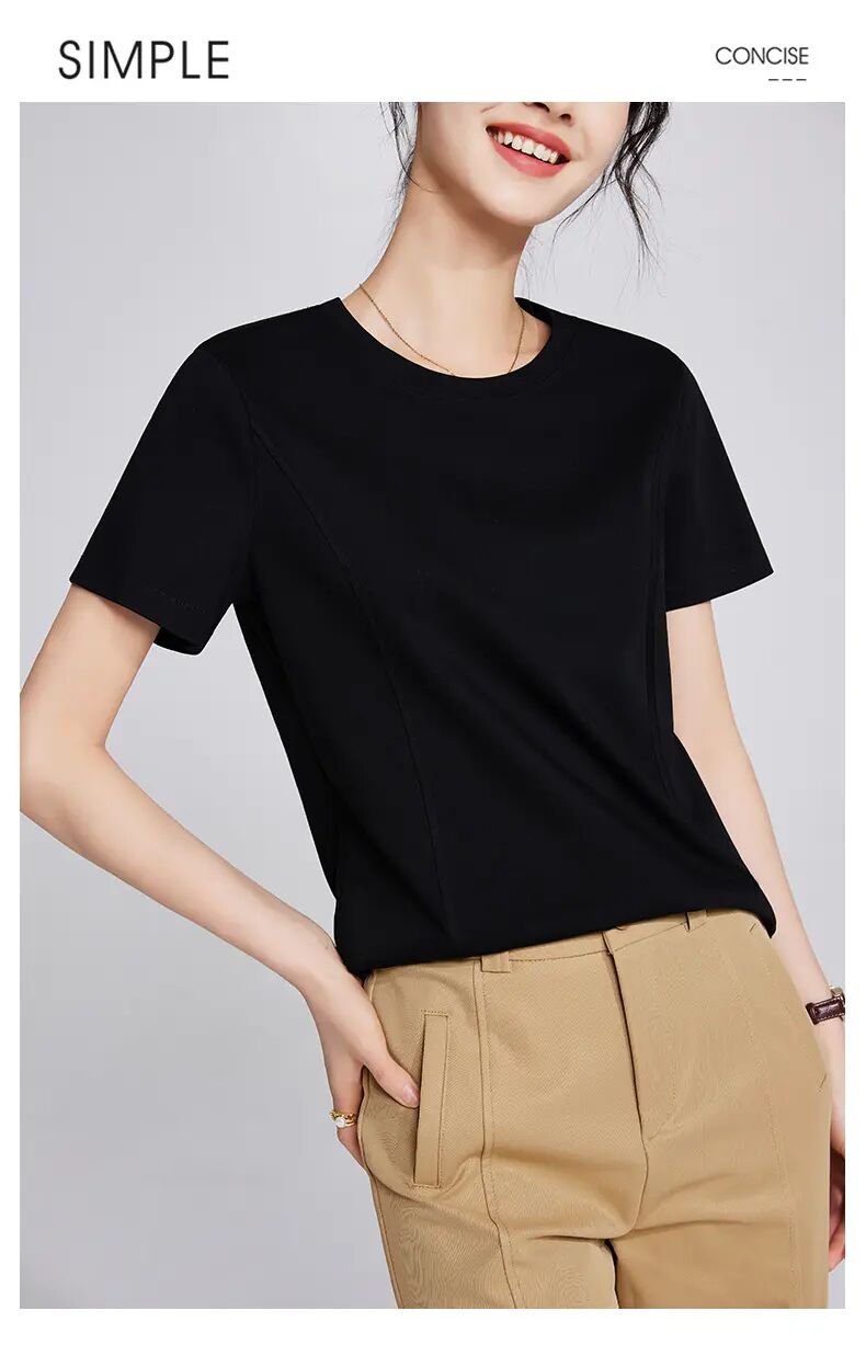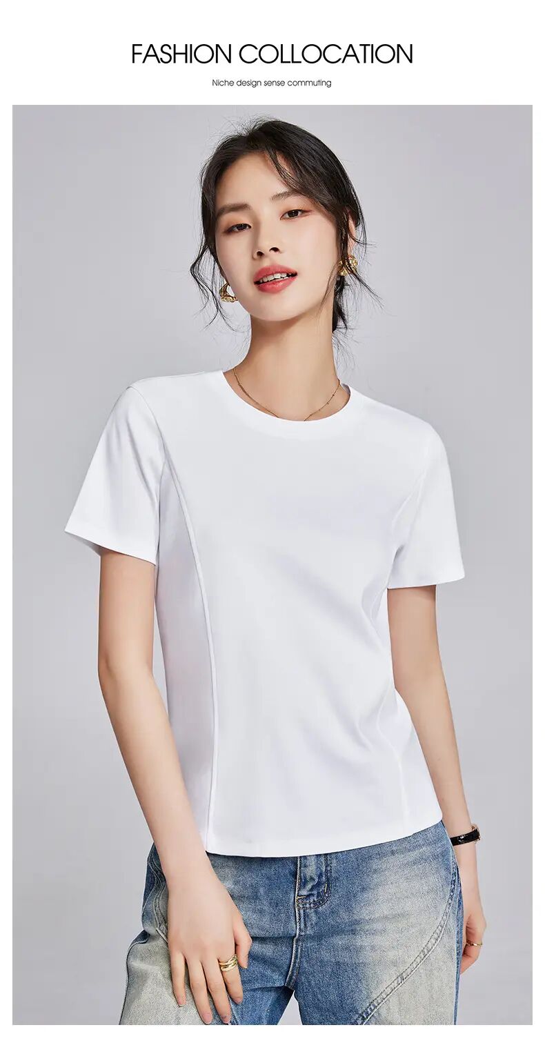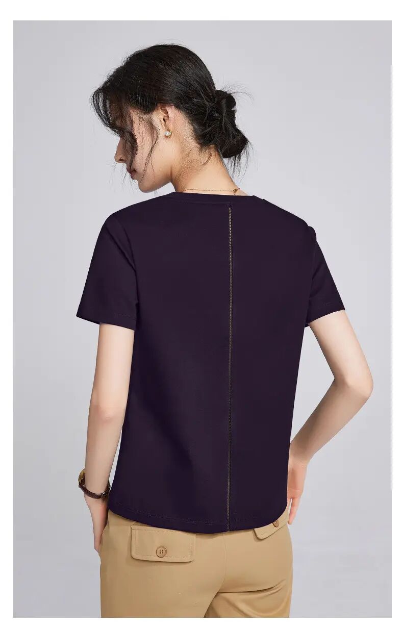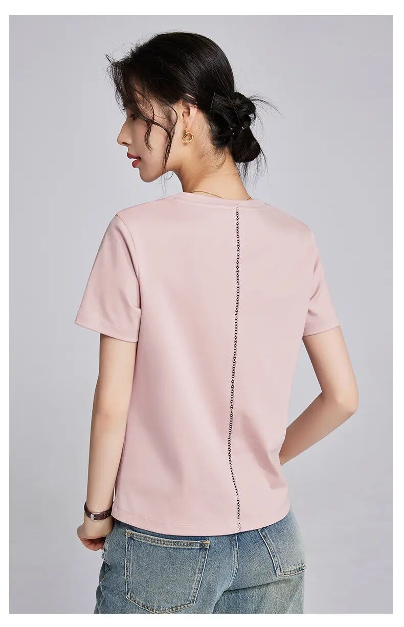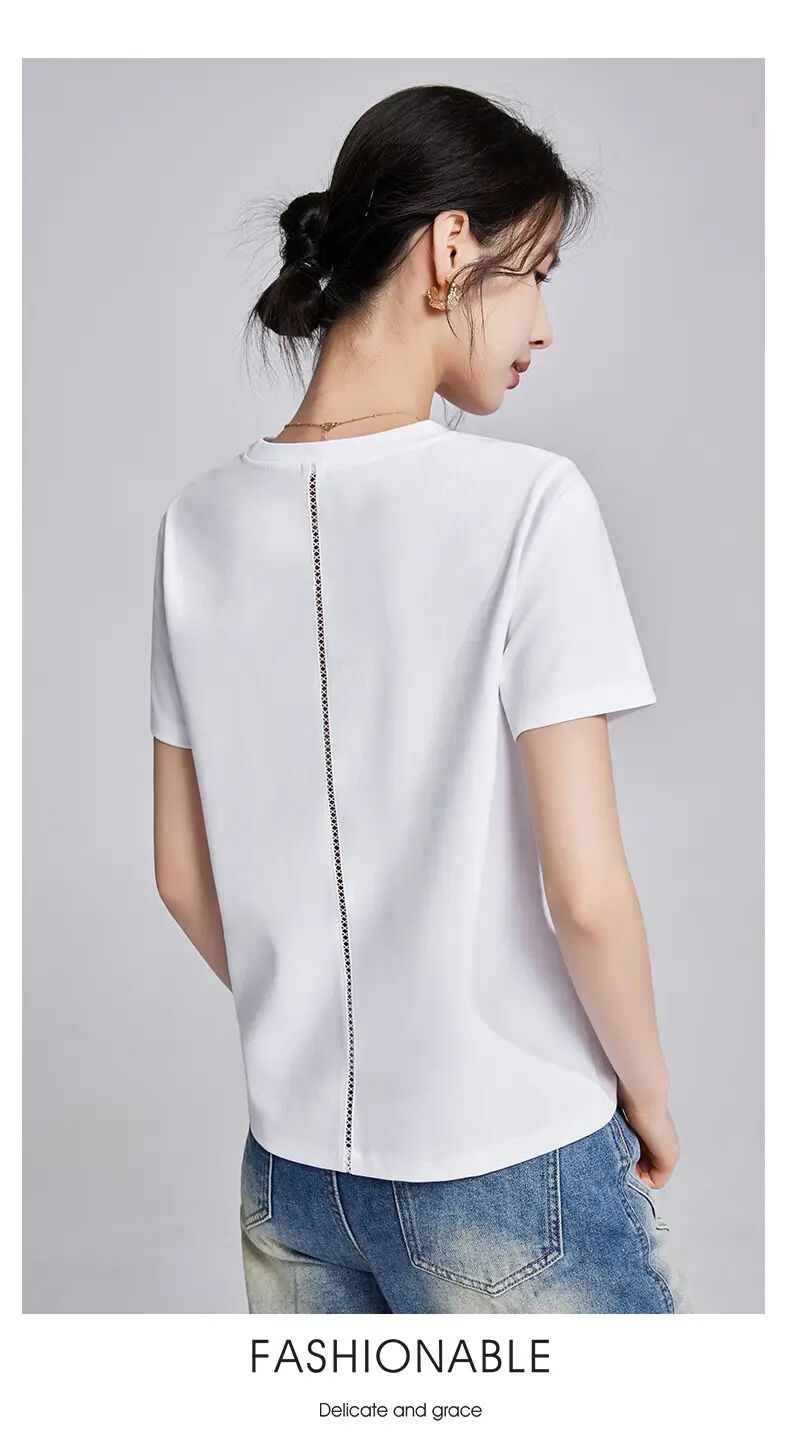 「自」全新升级【铂金会员109/天猫139/差价30】(00419)洛诗琳2025夏季后背镂空蕾丝织带丝光棉正肩凉感T恤女