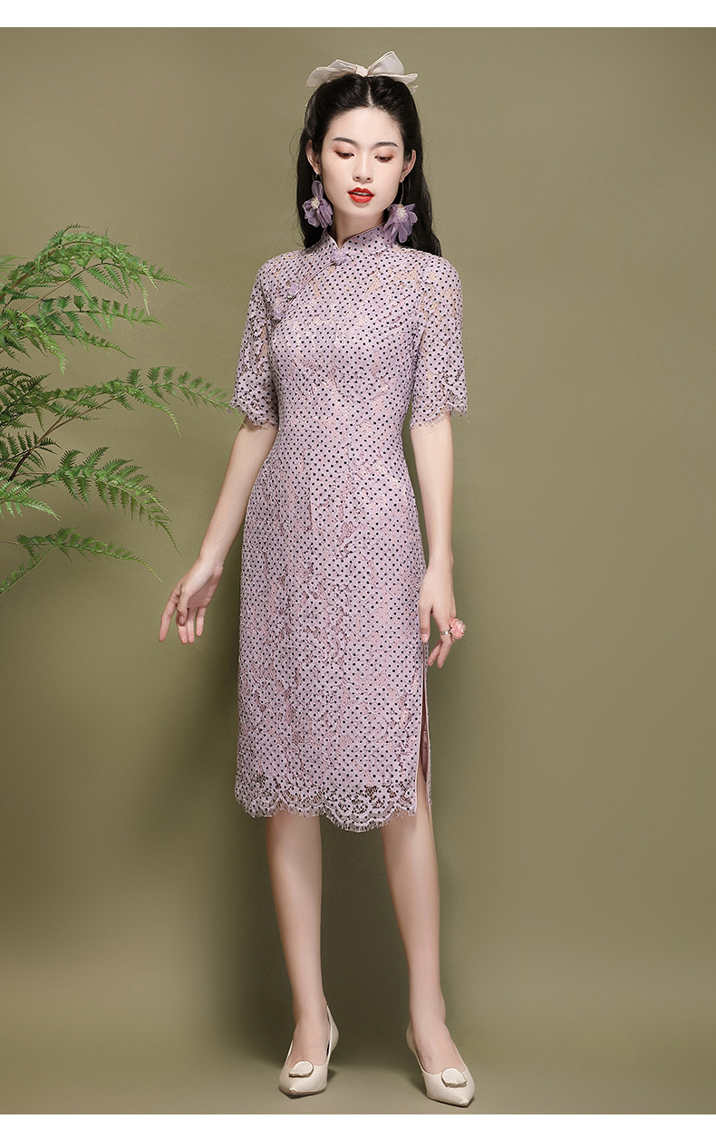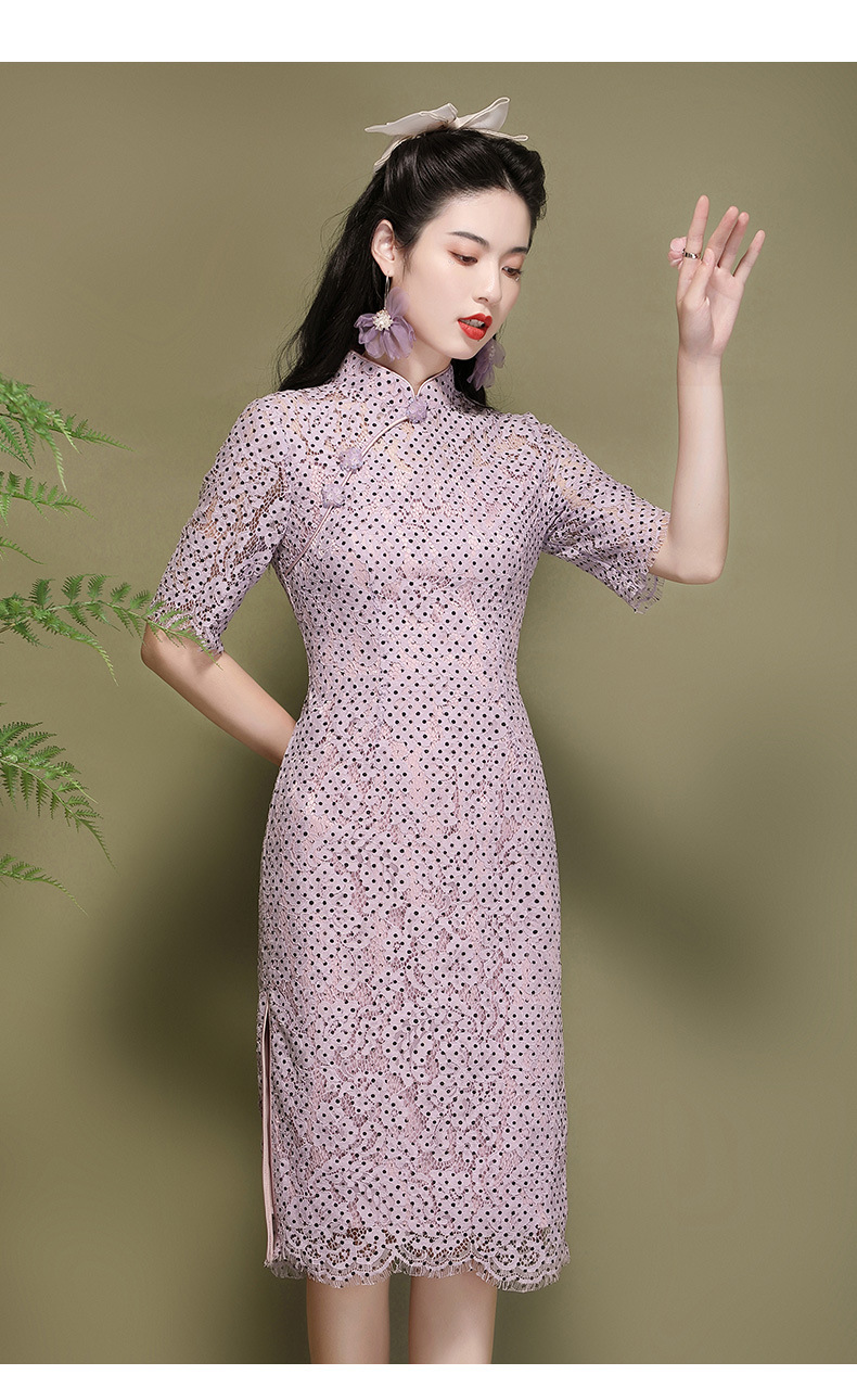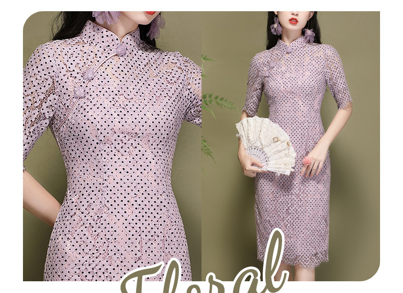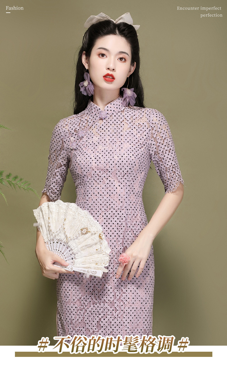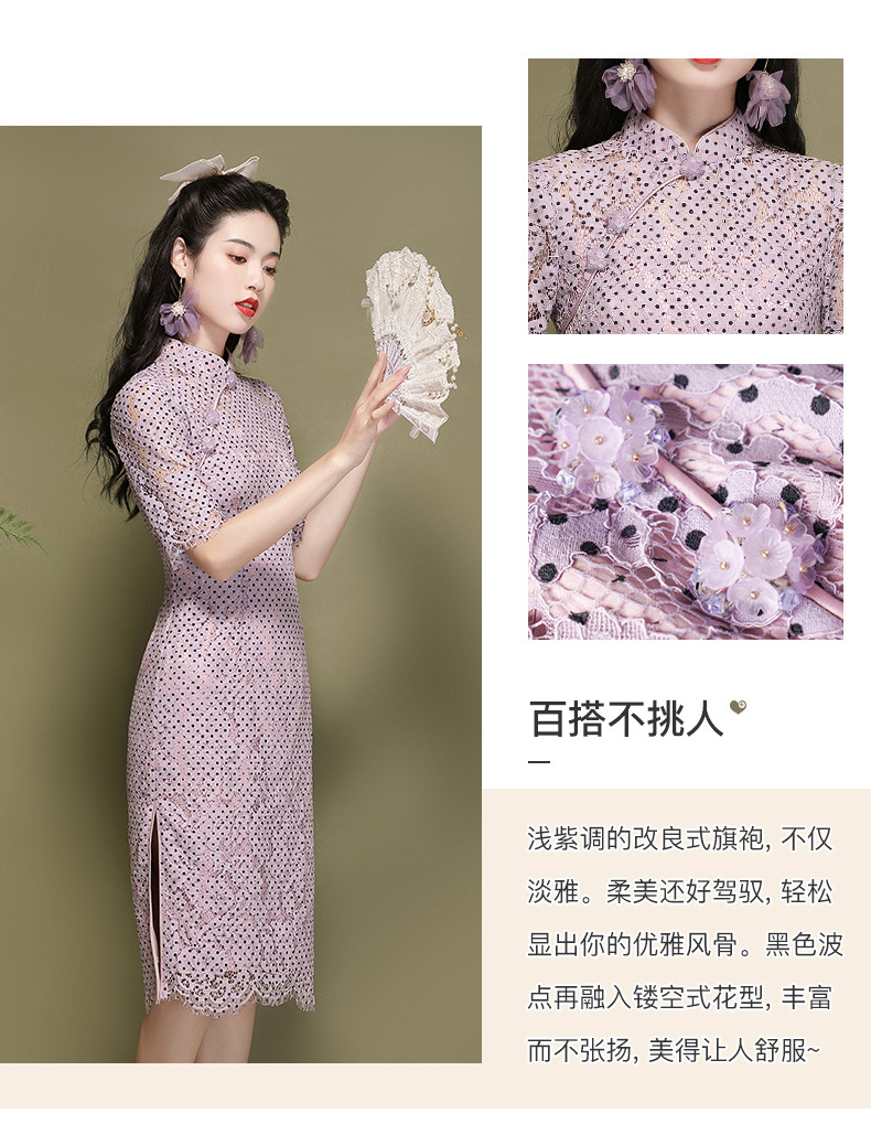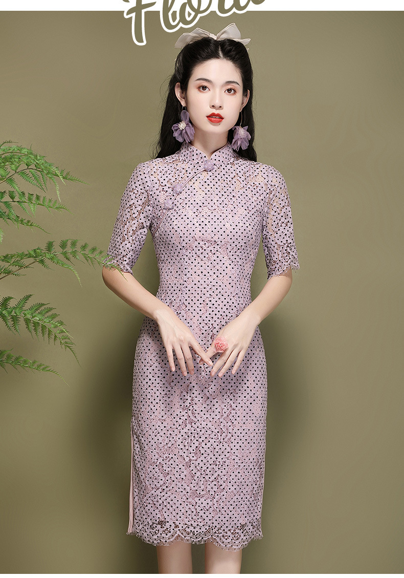 OY-220301国潮夏季新款气质丝绵连衣裙四分袖年轻改良日常旗袍裙220301