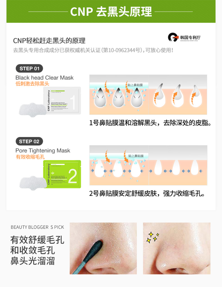 CNP希恩派去黑头紧致毛孔鼻贴膜