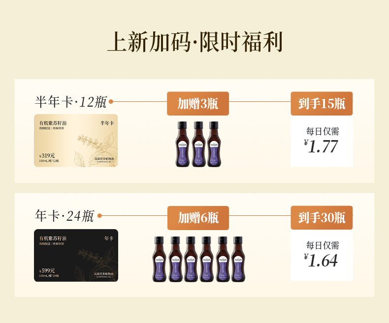 【囤油卡·冷淋】有机紫苏籽油100ml半年卡/年卡-会员专享