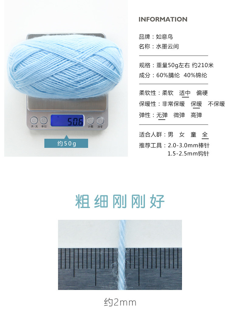 如意鸟 水墨云间宝宝线棒针钩针手工diy毛线