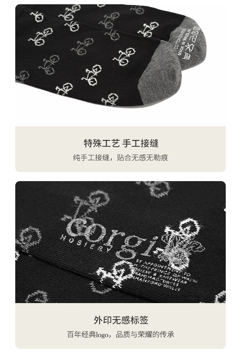 CORGI柯基英国进口男女同款袜子英式复古自行车印花秋夏薄款船袜