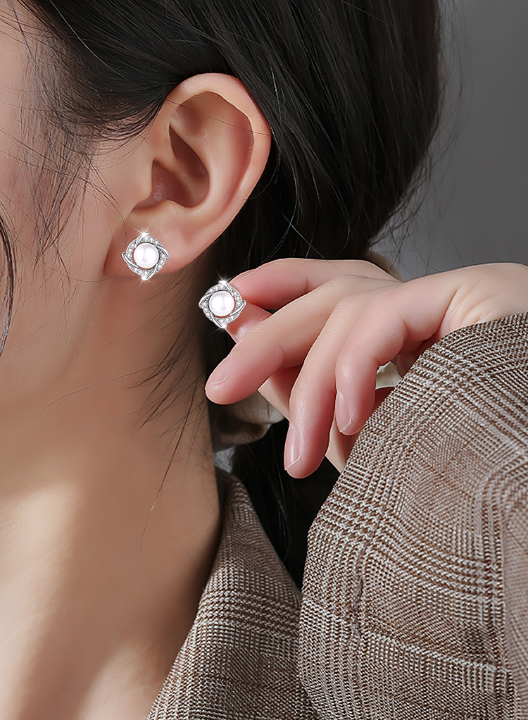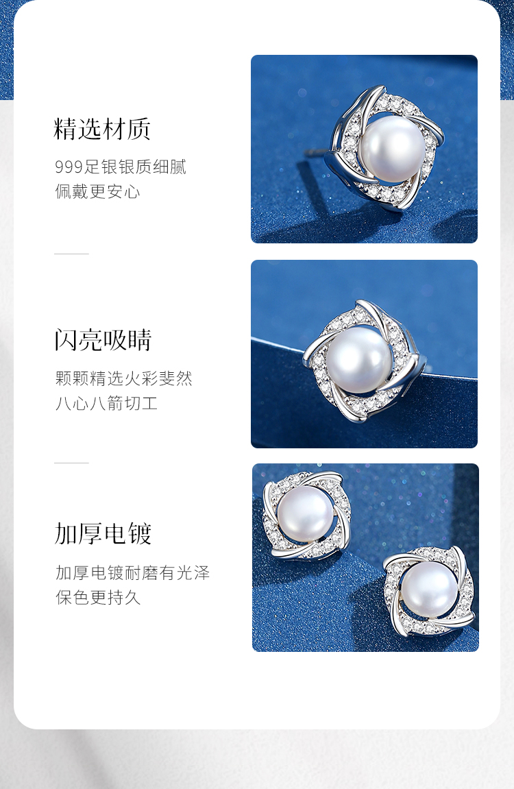 Winy999足银臻爱珍珠耳钉(耳针925银)配证书