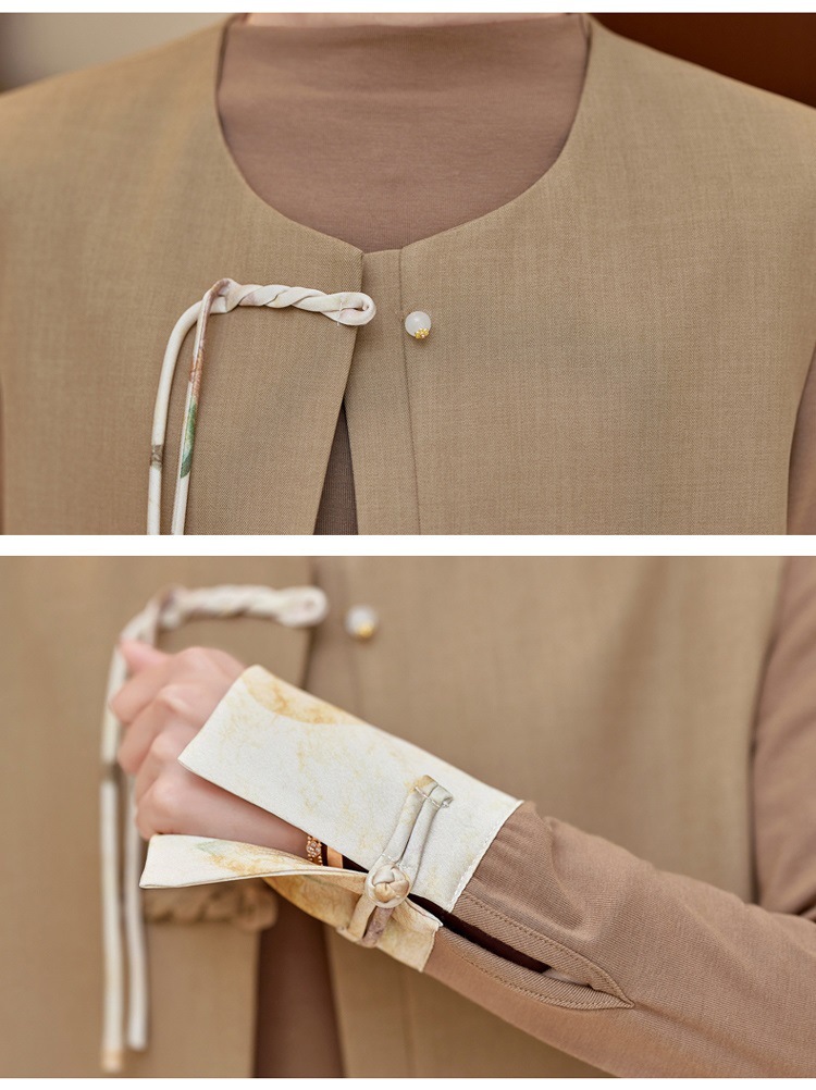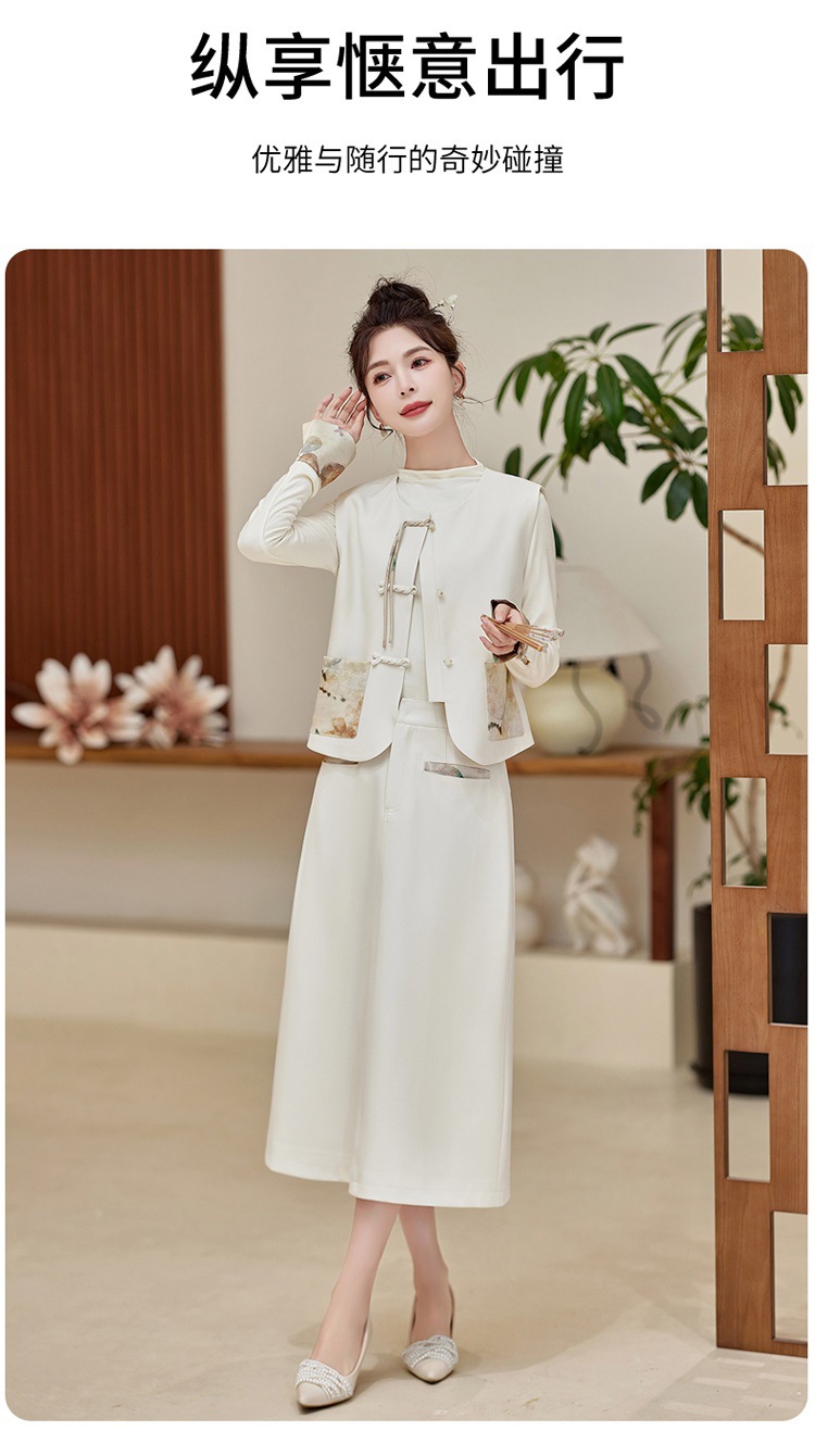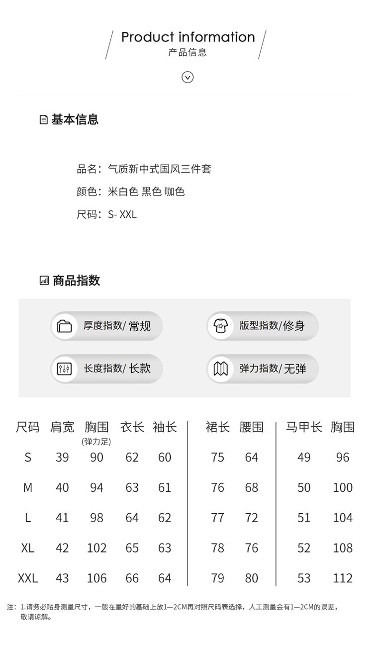 新中式国风春秋复古盘扣马甲半身裙减龄漂亮洋气时尚三件套 BX2508