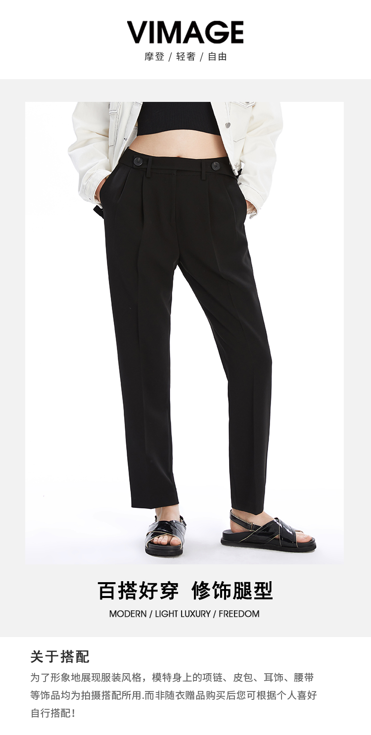 VIMAGE纬漫纪秋款新款休闲裤子百搭简约垂感宽裤子V1605209