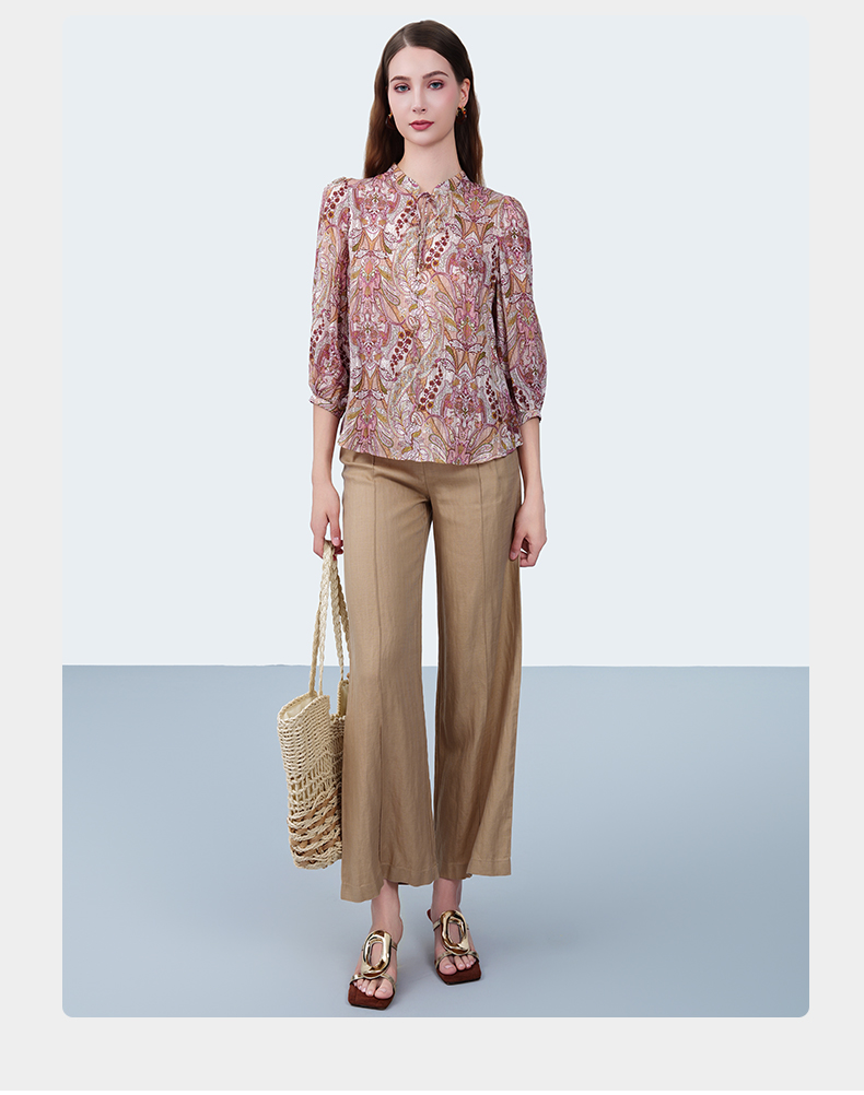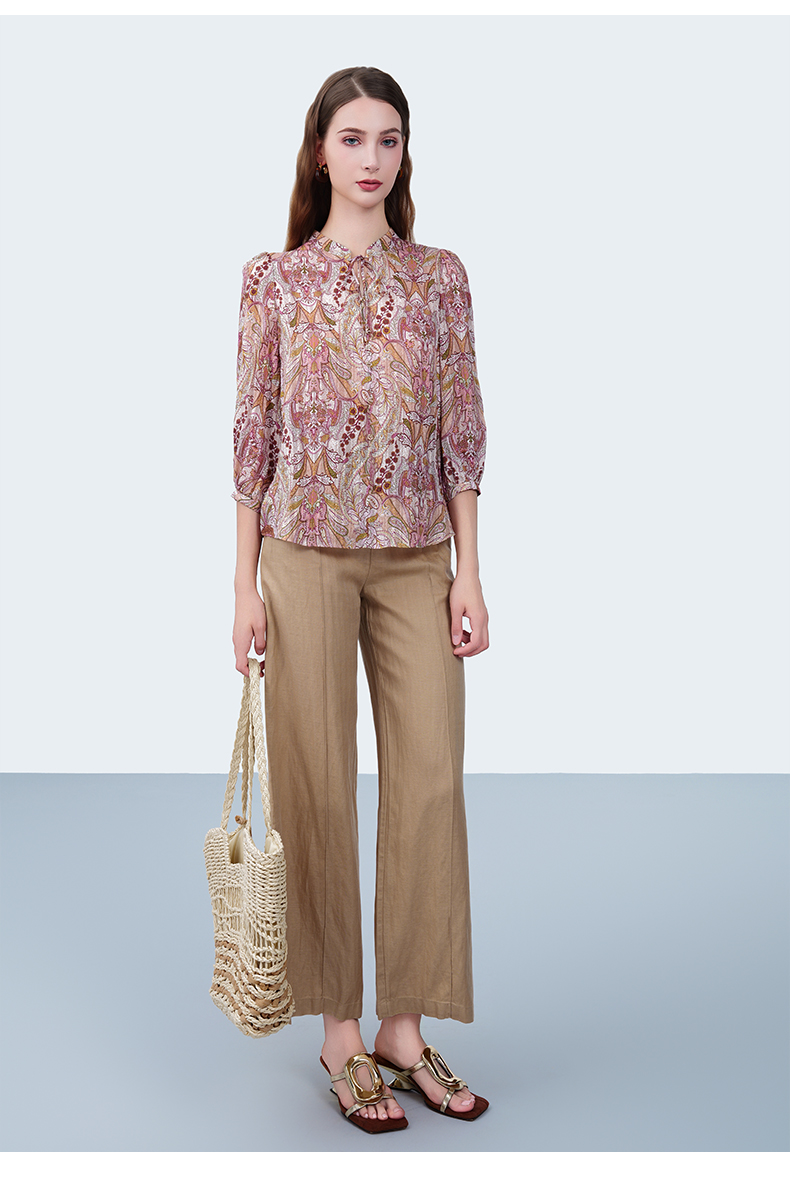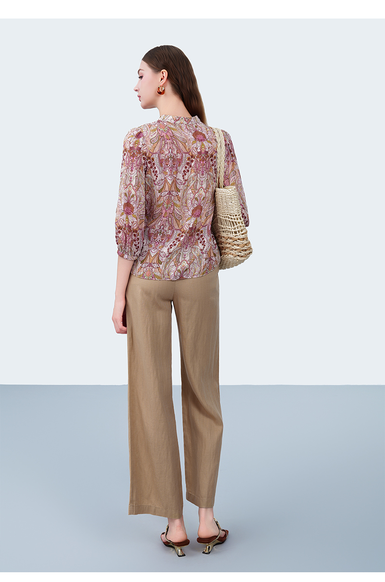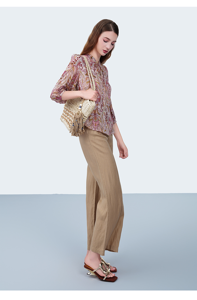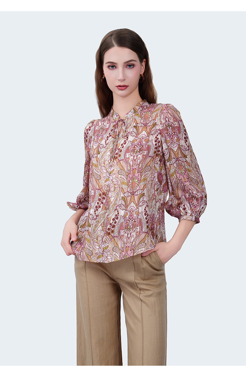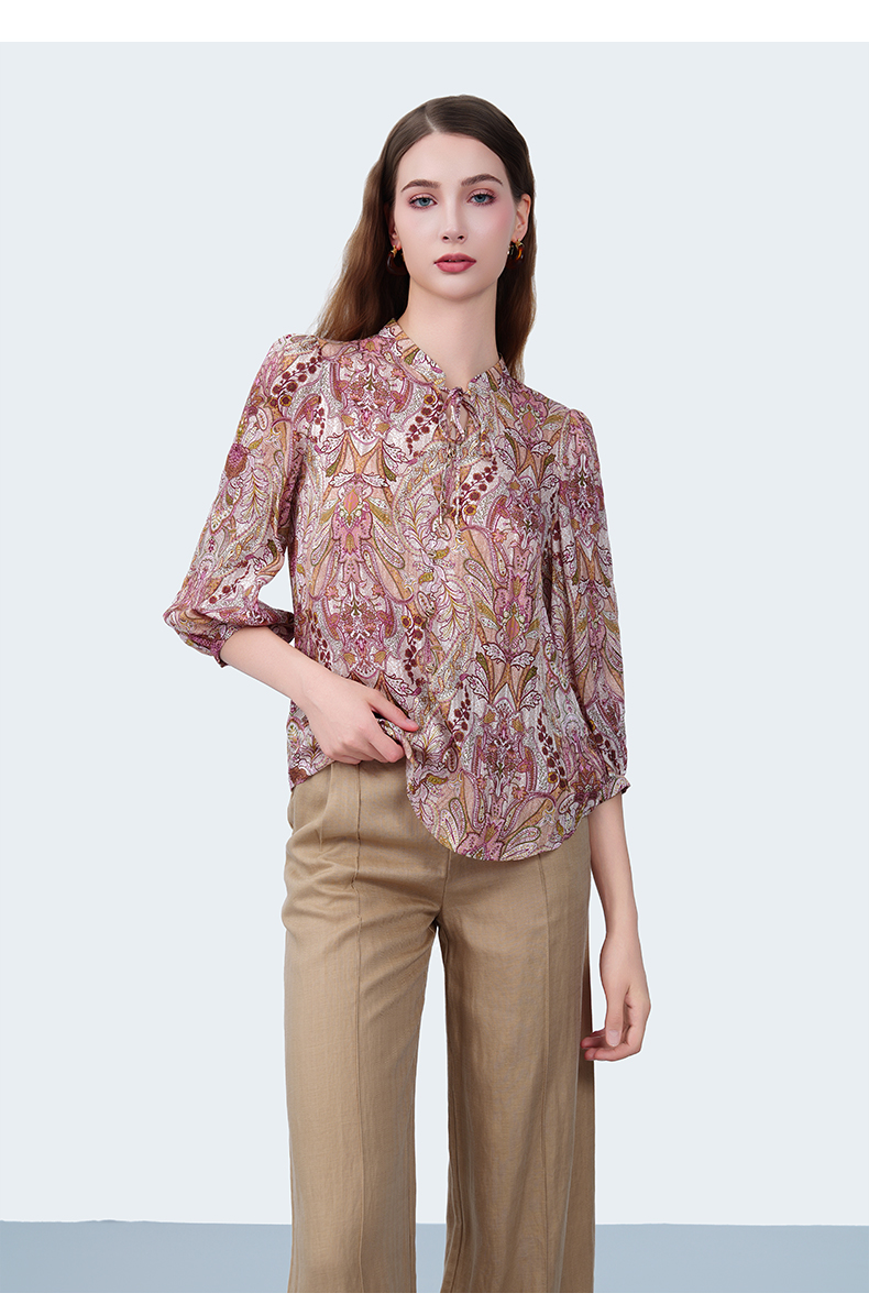 乔万尼新品浪漫氛围感佩斯利纹印花100%真丝上衣衬衫ED2C547