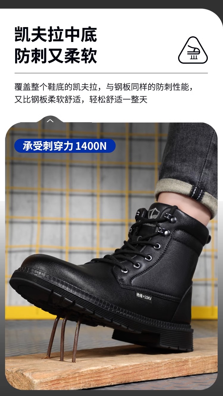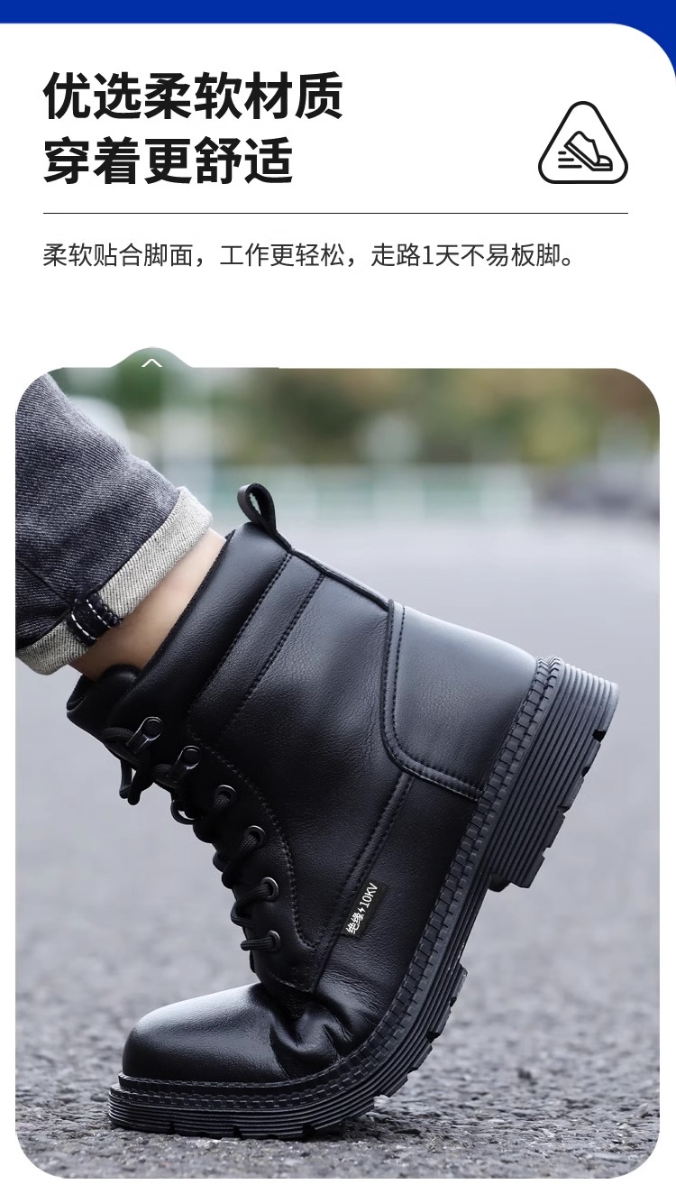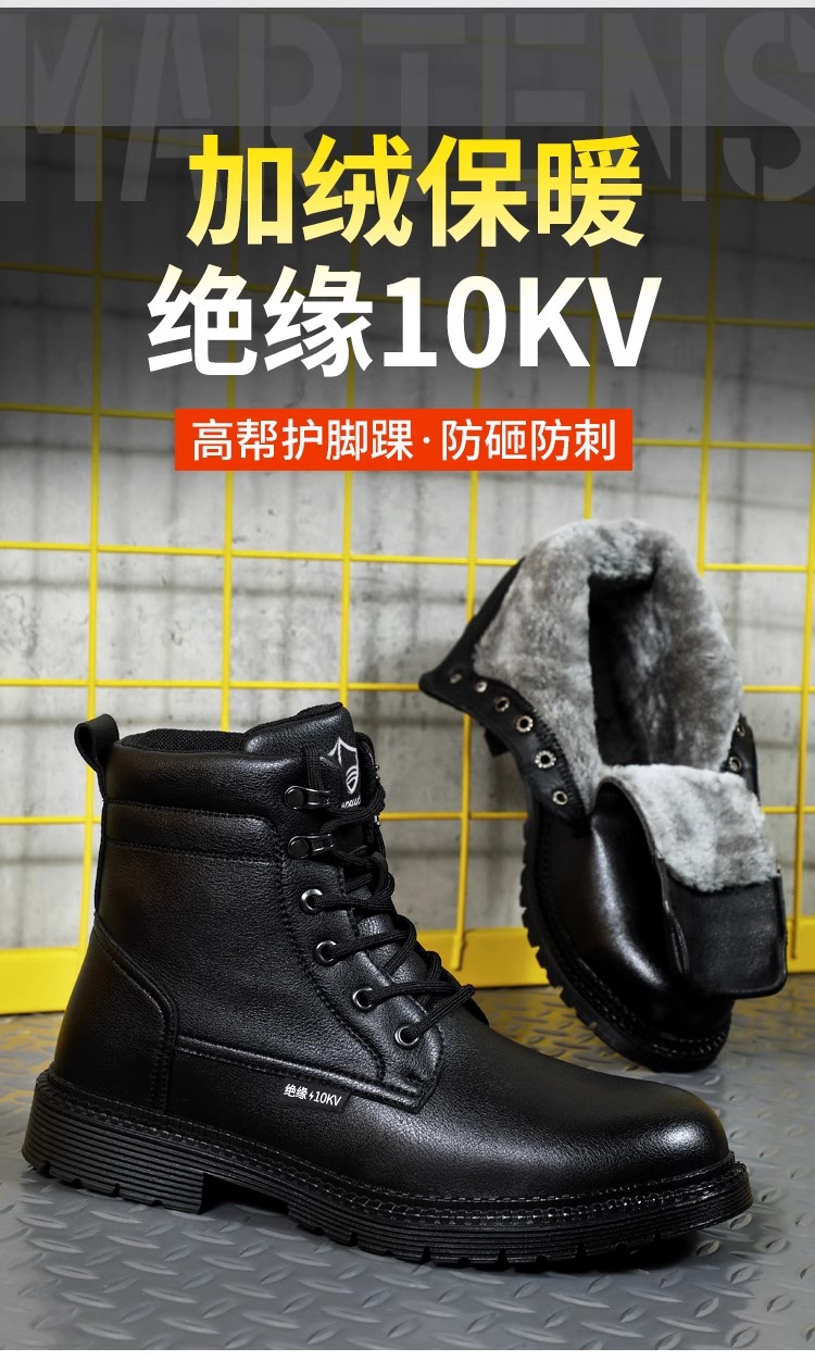 蓝鸥盾绝缘10KV新品秋季高帮加绒劳保鞋男防砸防刺安全鞋钢包头工作鞋橡胶底轻便