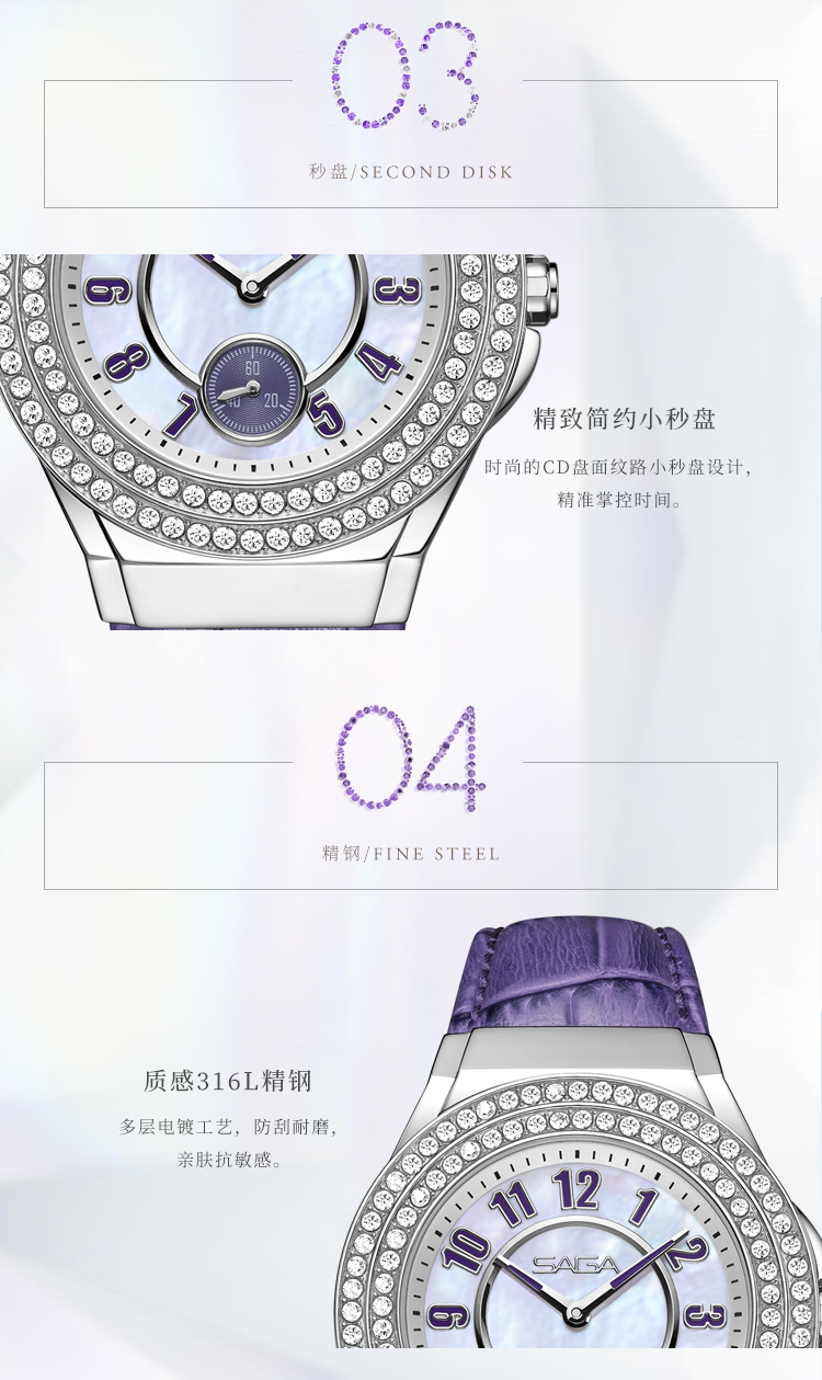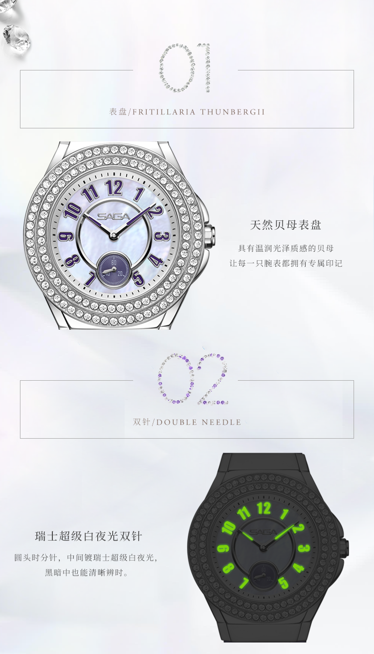 SAGA世家手表 贝母手表女士手表