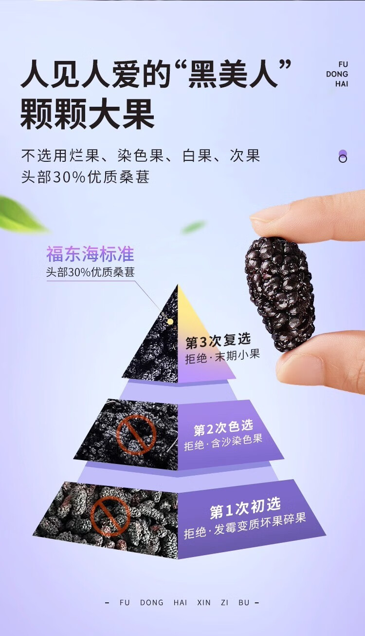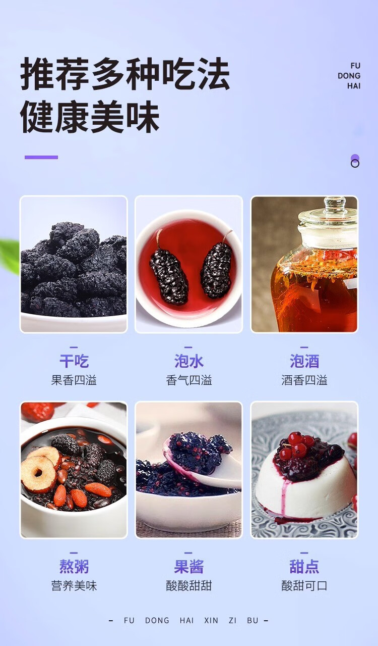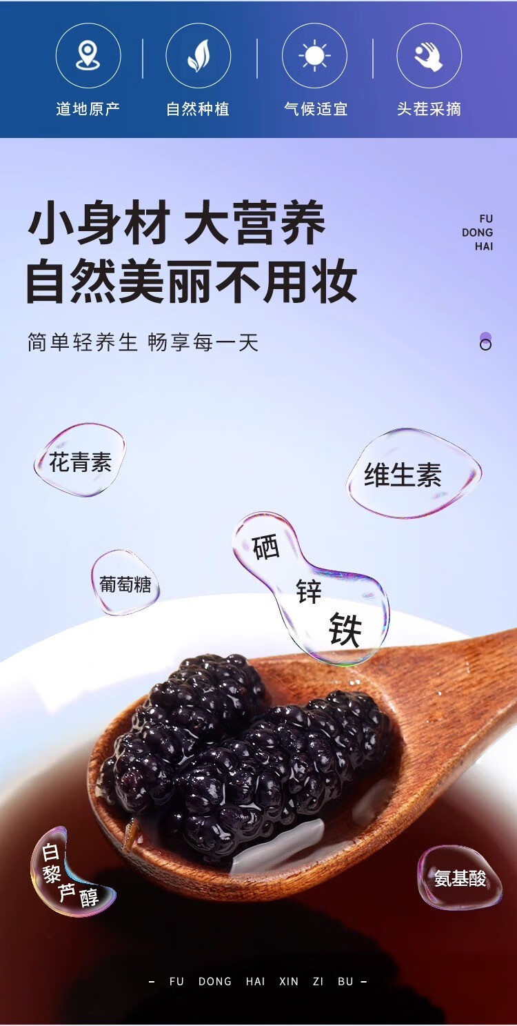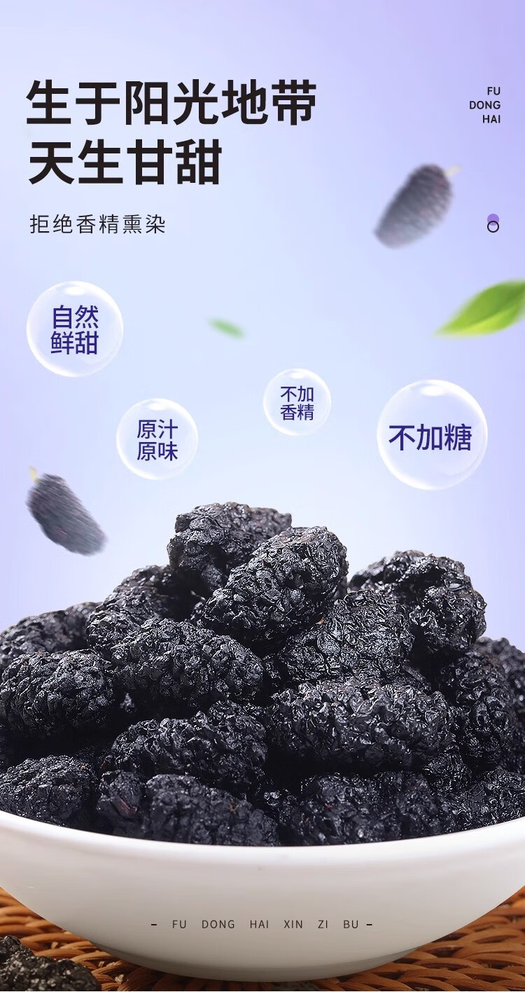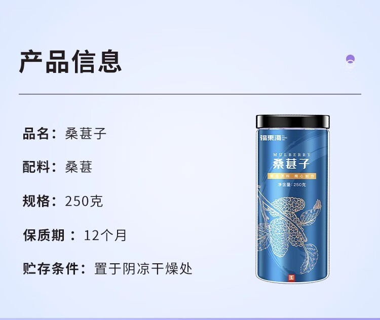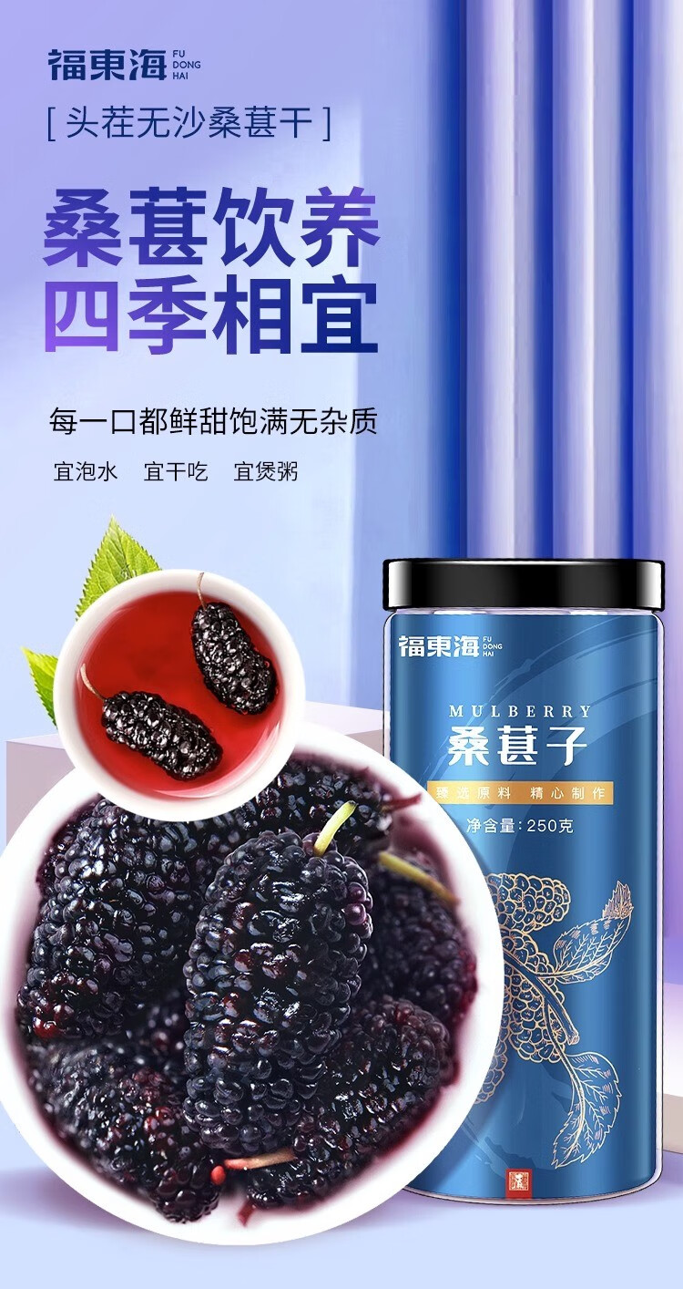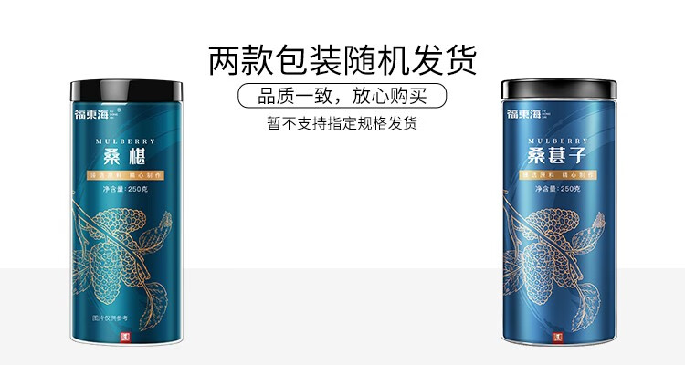 福东海 桑葚干250g 精选桑椹无沙黑桑葚子250克罐装*3罐 5罐