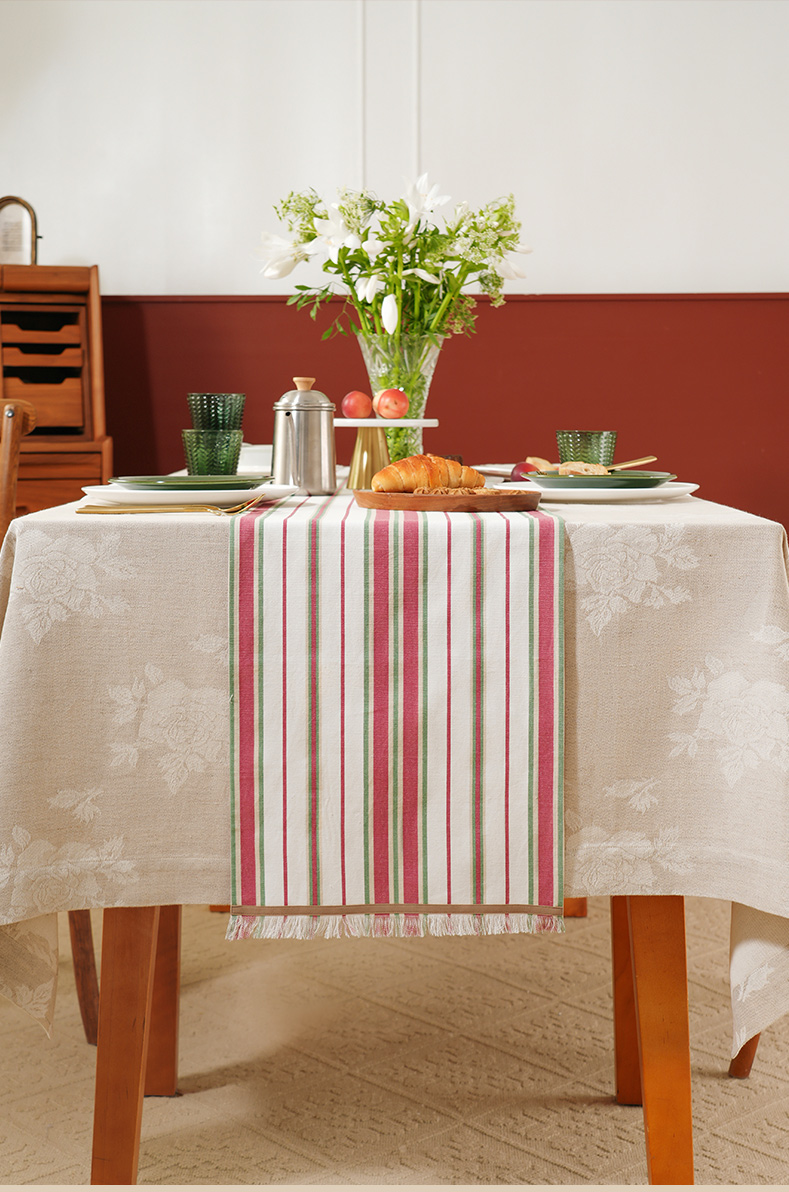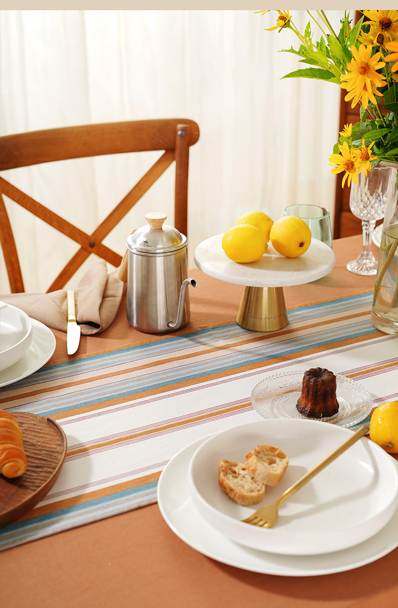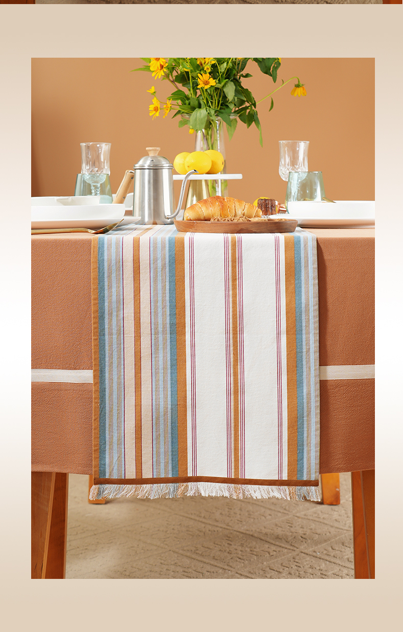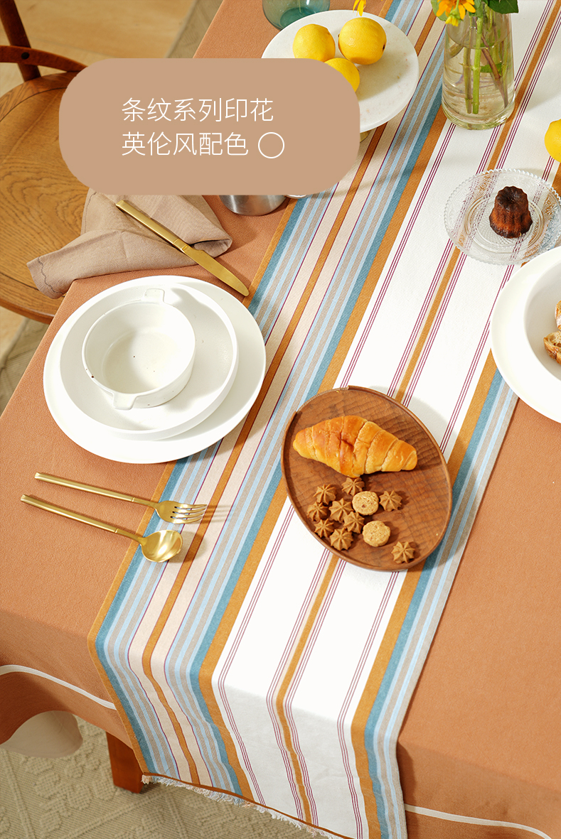 热烈条纹系列桌旗轻奢高端田园复古茶几高级感