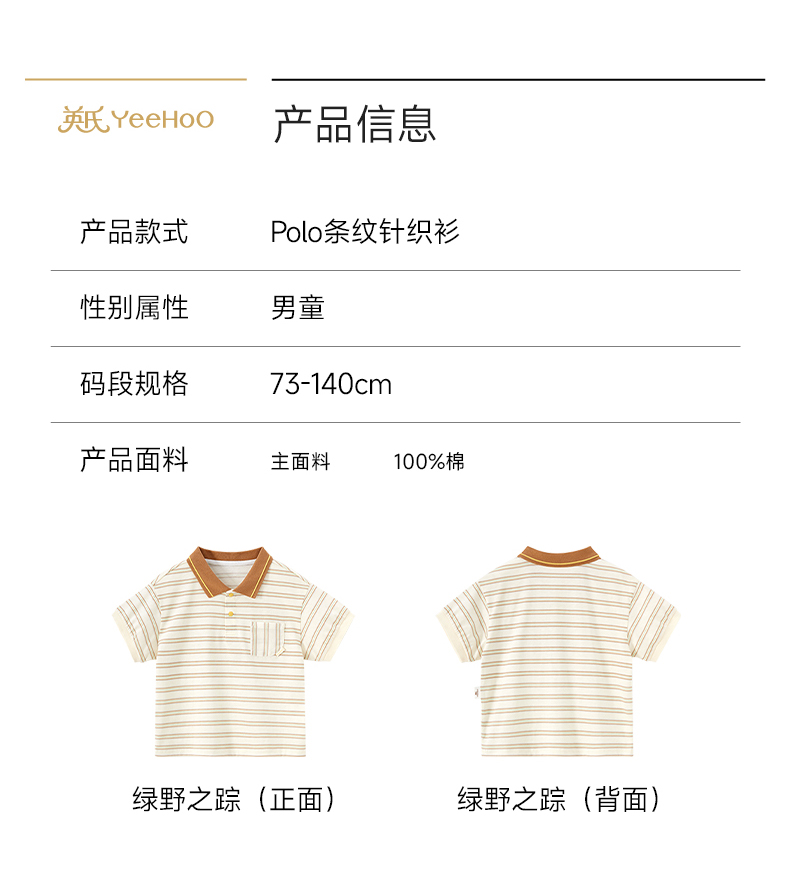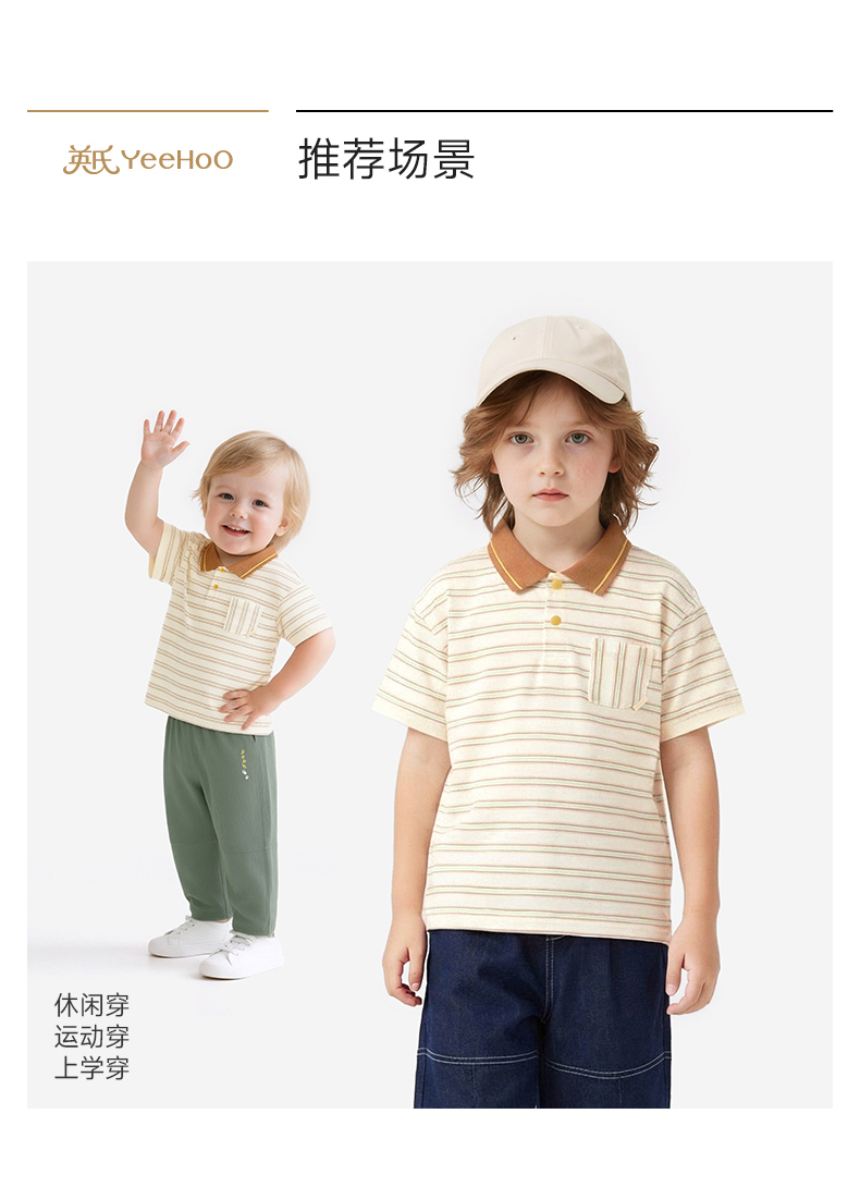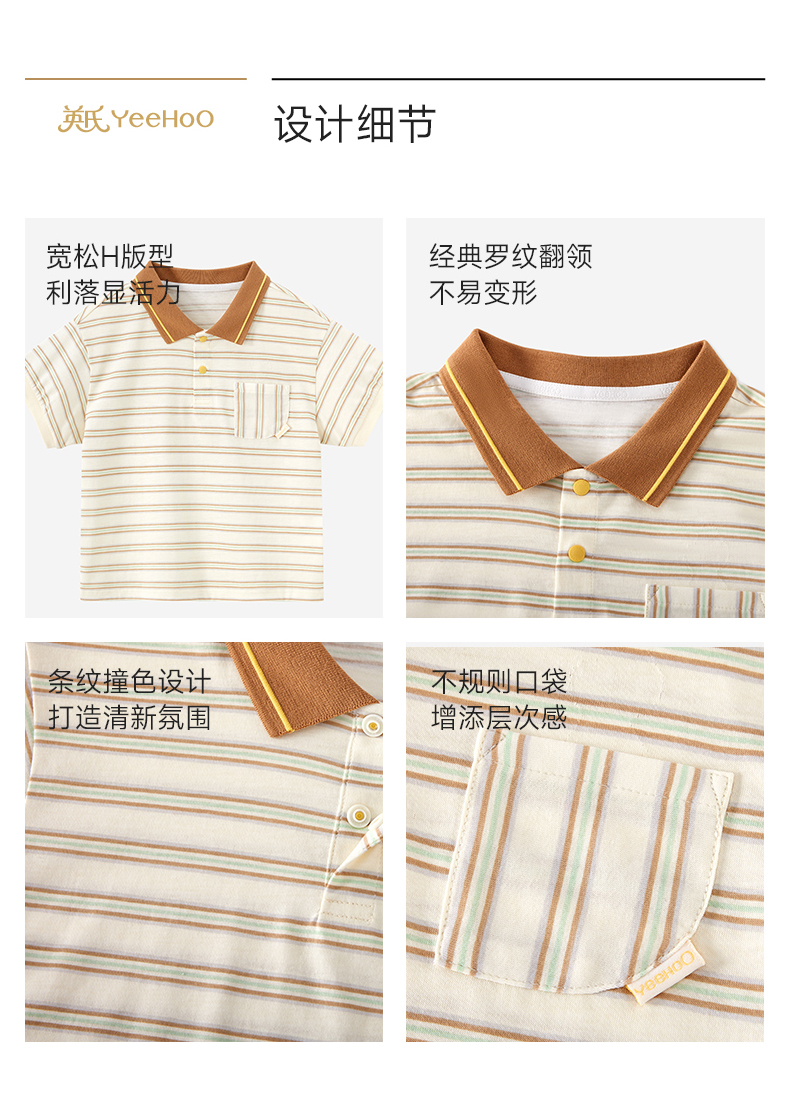 【商场同款】英氏儿童衣服男童短袖翻领T恤夏季百搭条纹polo衫