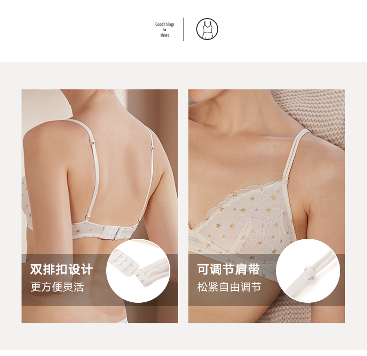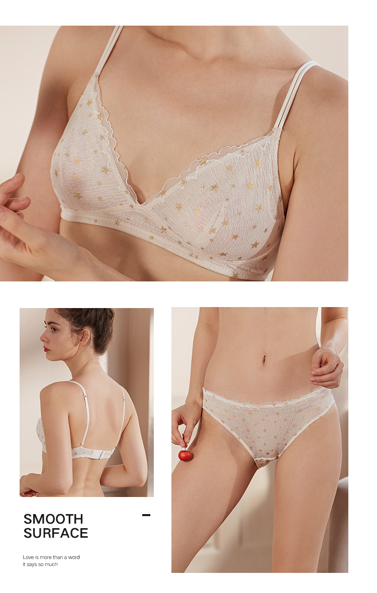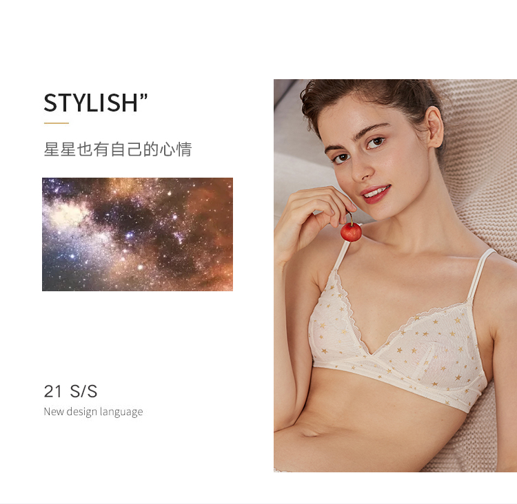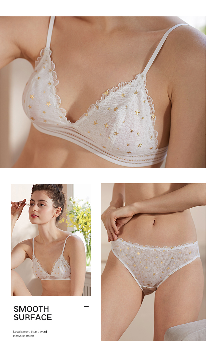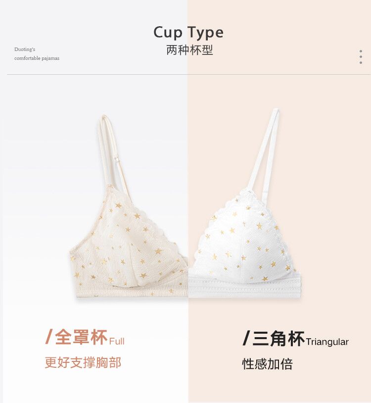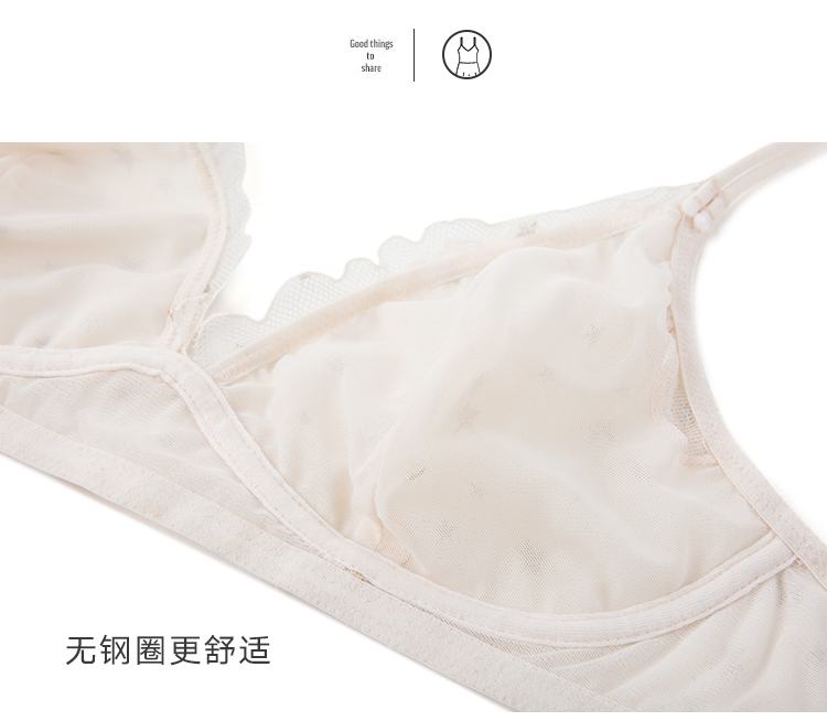 弗利少女法式薄款内衣蕾丝bra 文胸夏季无钢圈三角杯胸罩锡纸烫金