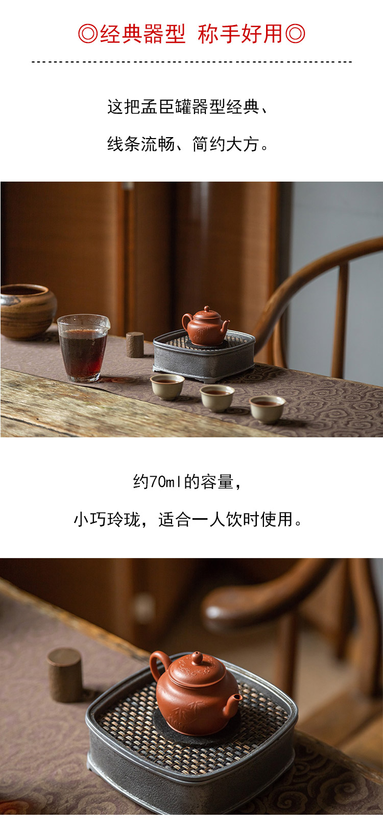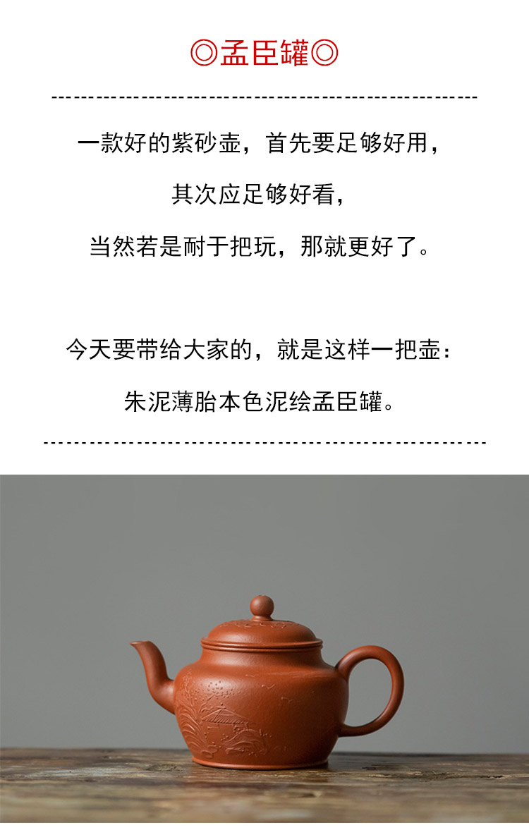 茶香记 紫砂壶 朱泥薄胎本色泥绘 孟臣罐 茶壶 孟臣壶 功夫茶具