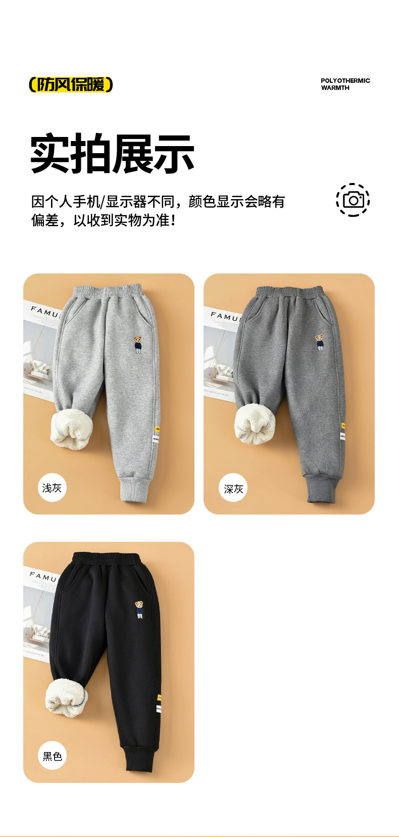 【特厚羊羔绒!儿童运动裤】秋冬装童装男童女童加绒加厚裤子,儿童棉裤羊羔绒外穿一体绒运动裤-QQ