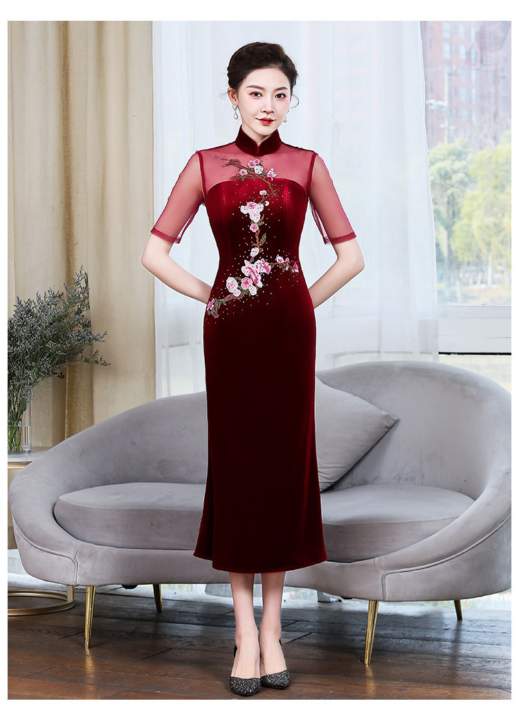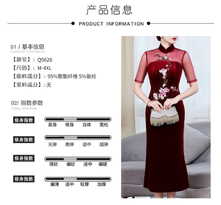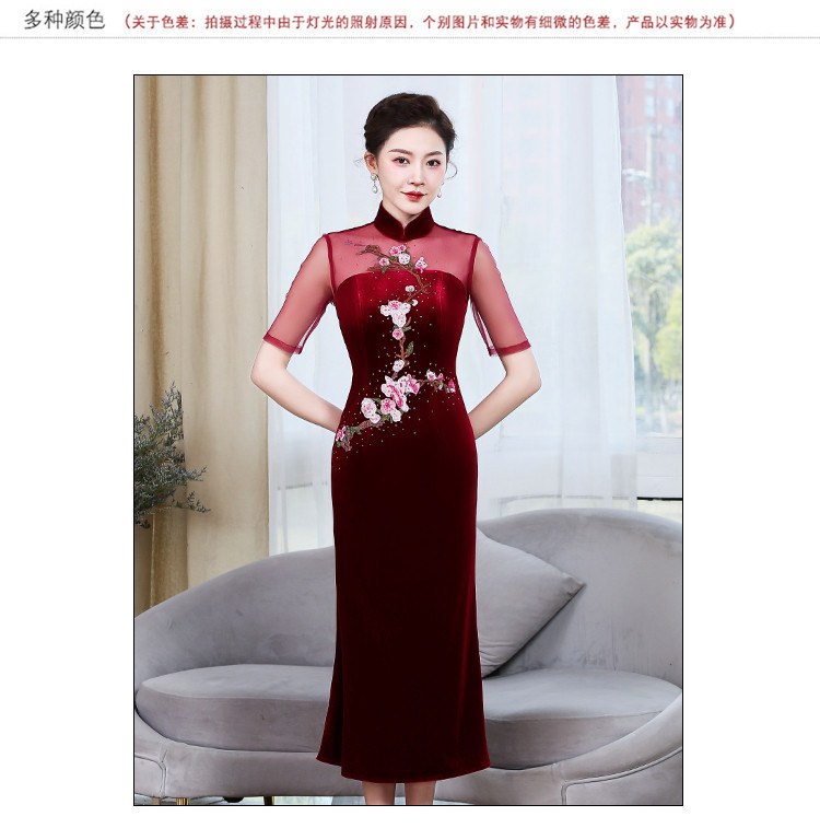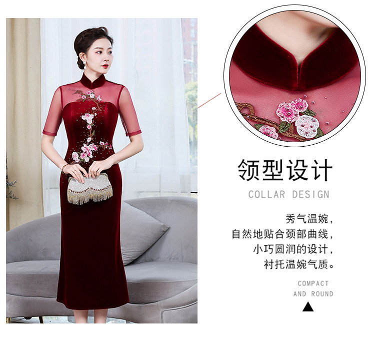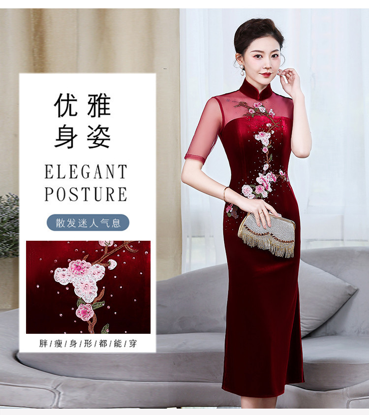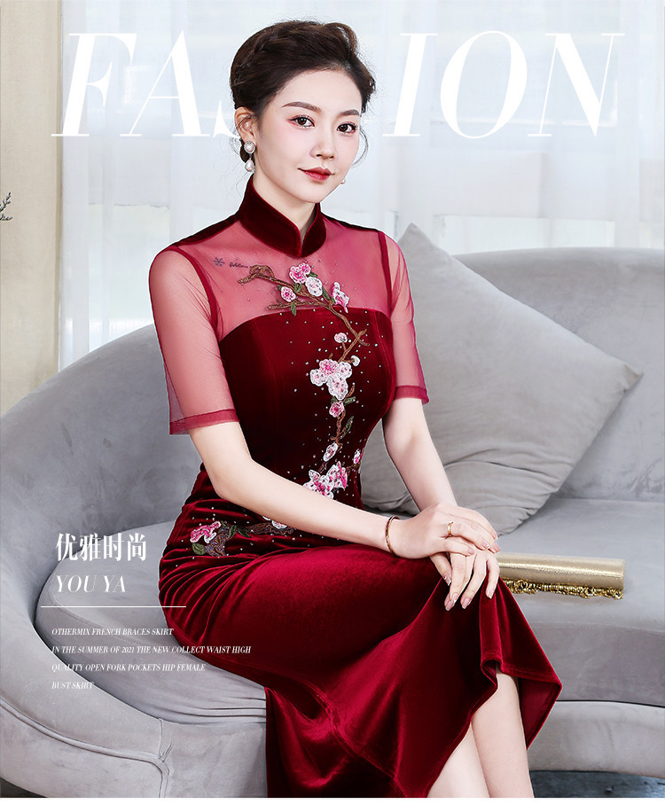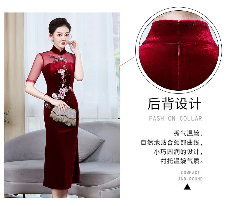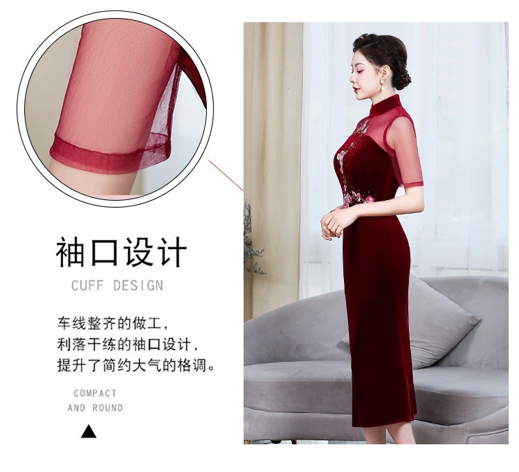 上海旗袍厂ZY-Q5626新款中国风金丝绒改良版旗袍连衣裙春秋优雅显瘦婚宴礼服裙