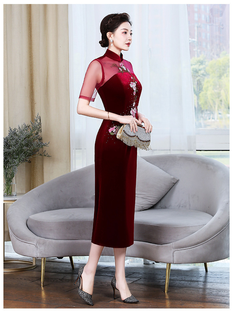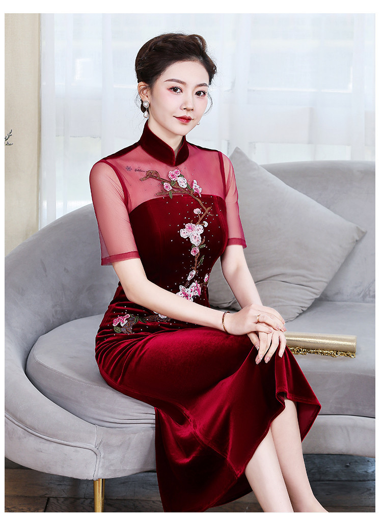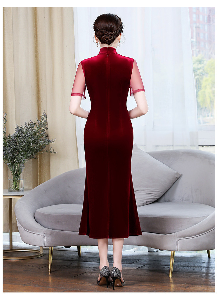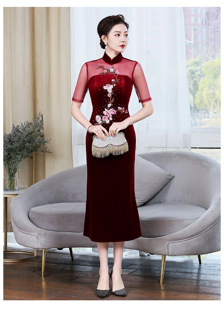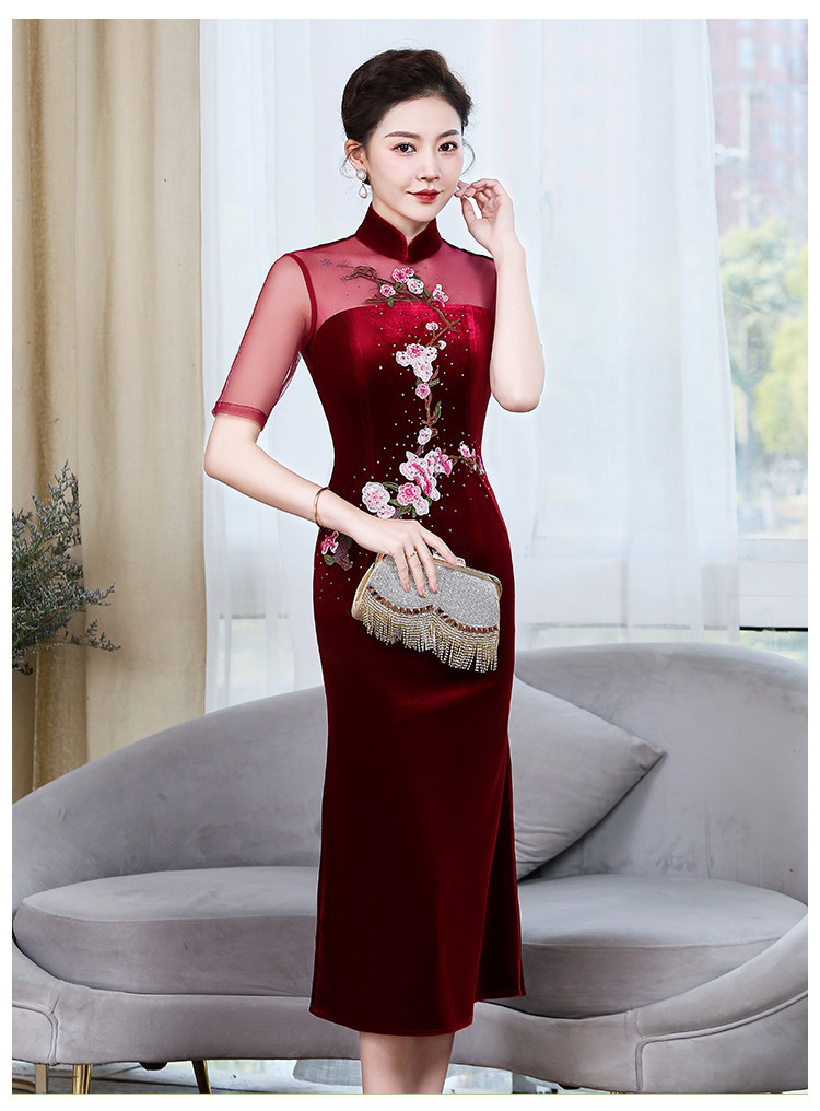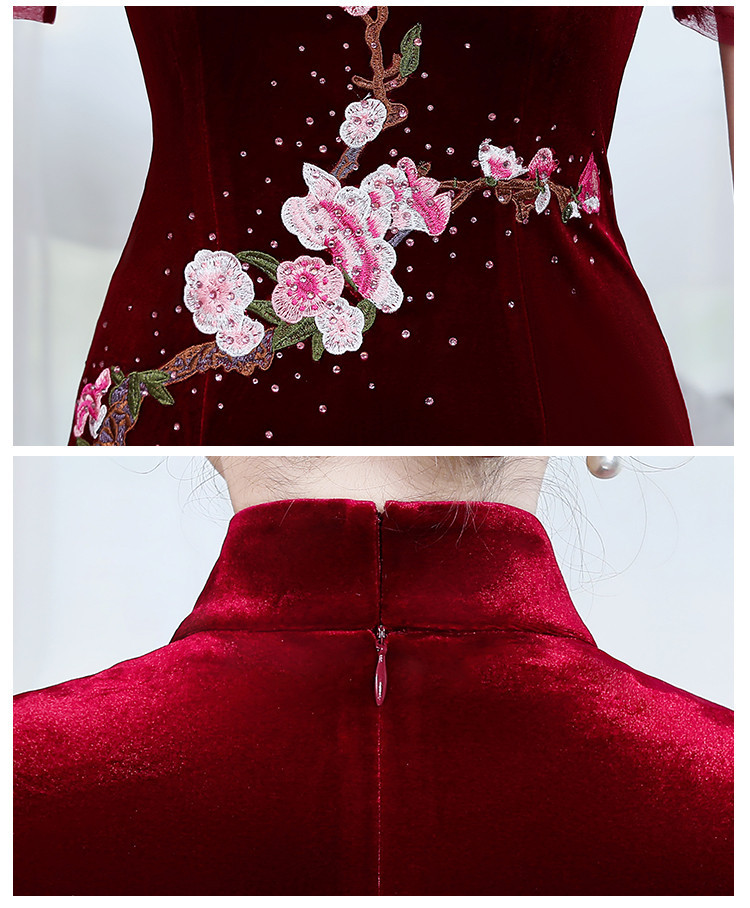 上海旗袍厂ZY-Q5626新款中国风金丝绒改良版旗袍连衣裙春秋优雅显瘦婚宴礼服裙