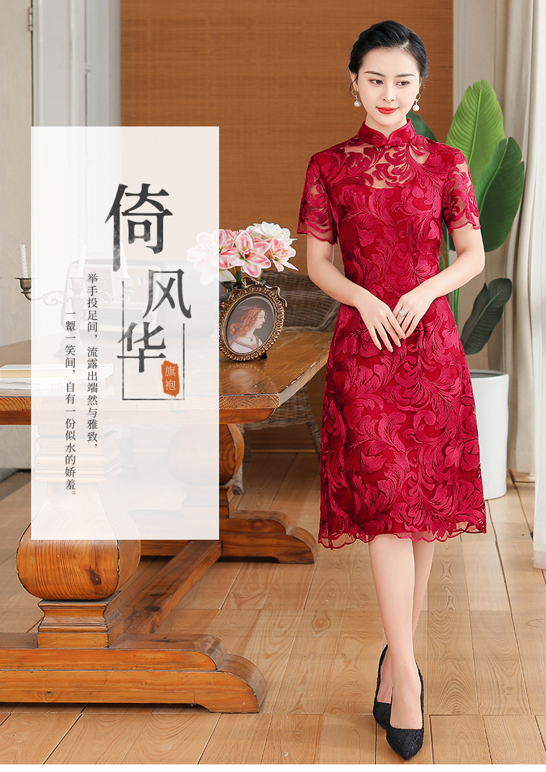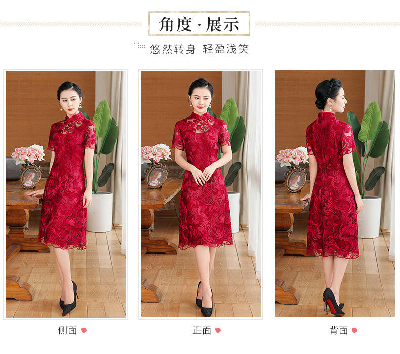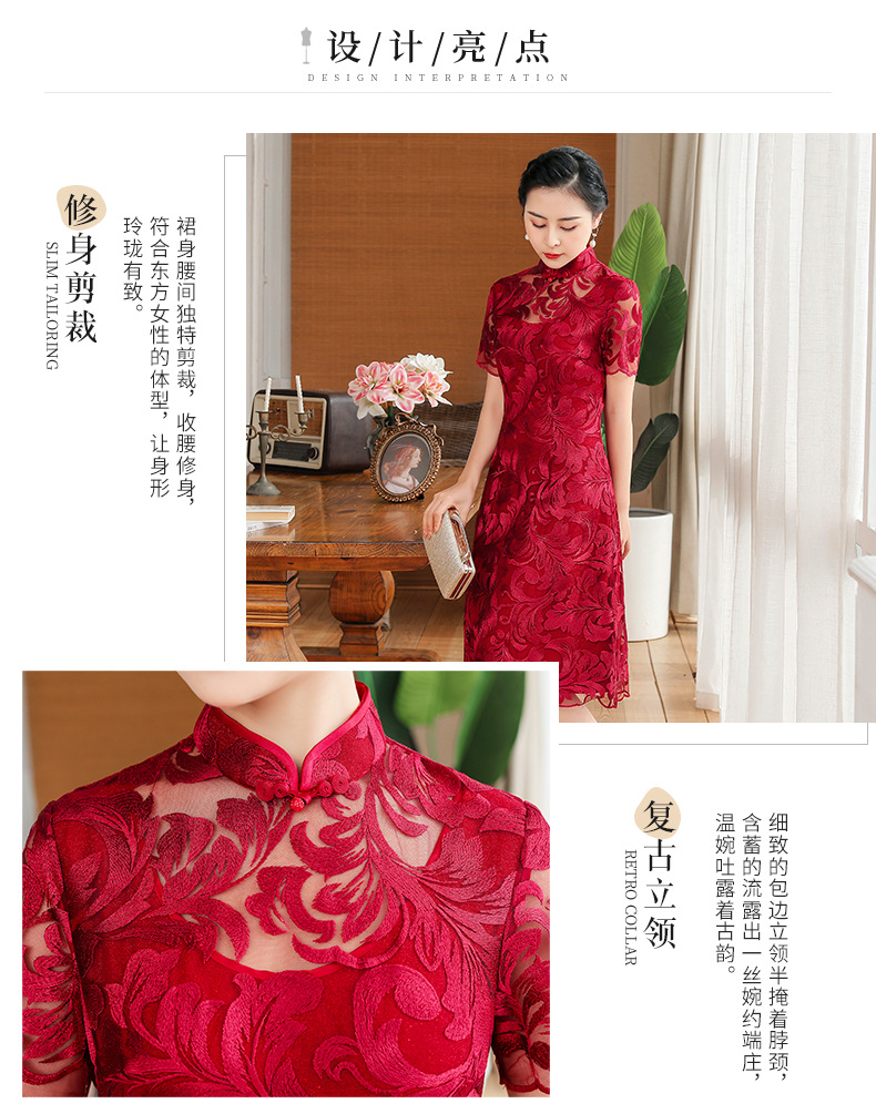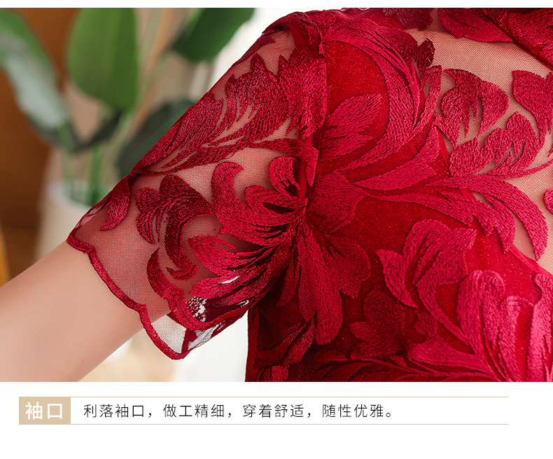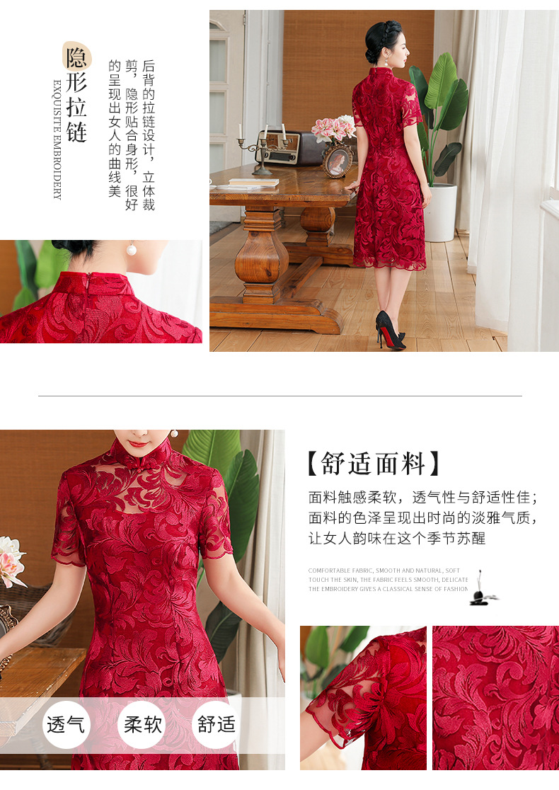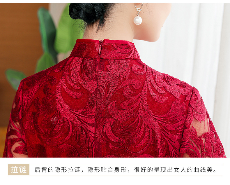上海旗袍厂TZRY-蕾丝短款新款优雅婚礼喜婆婆礼服 时尚大气刺绣蕾丝改良旗袍连衣裙