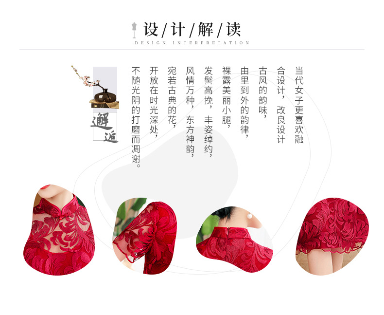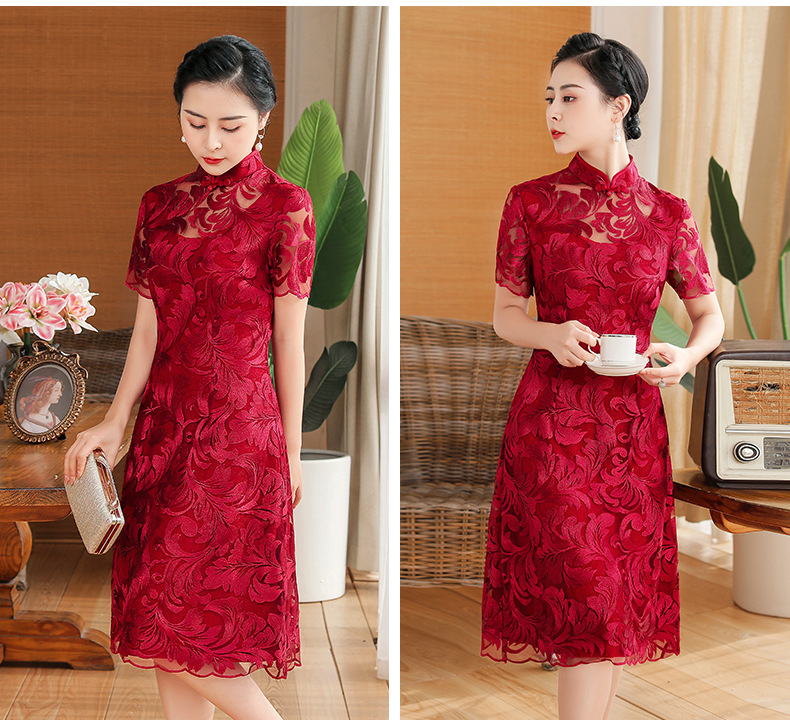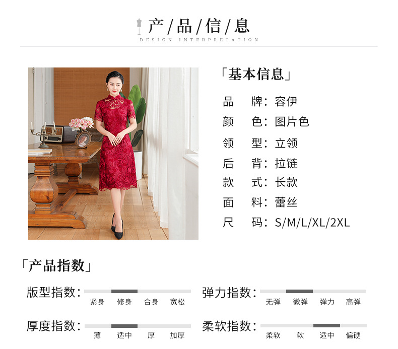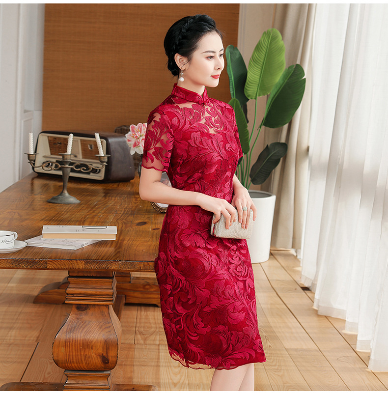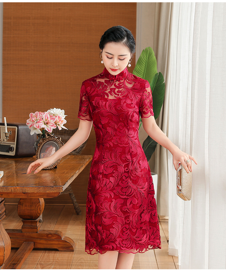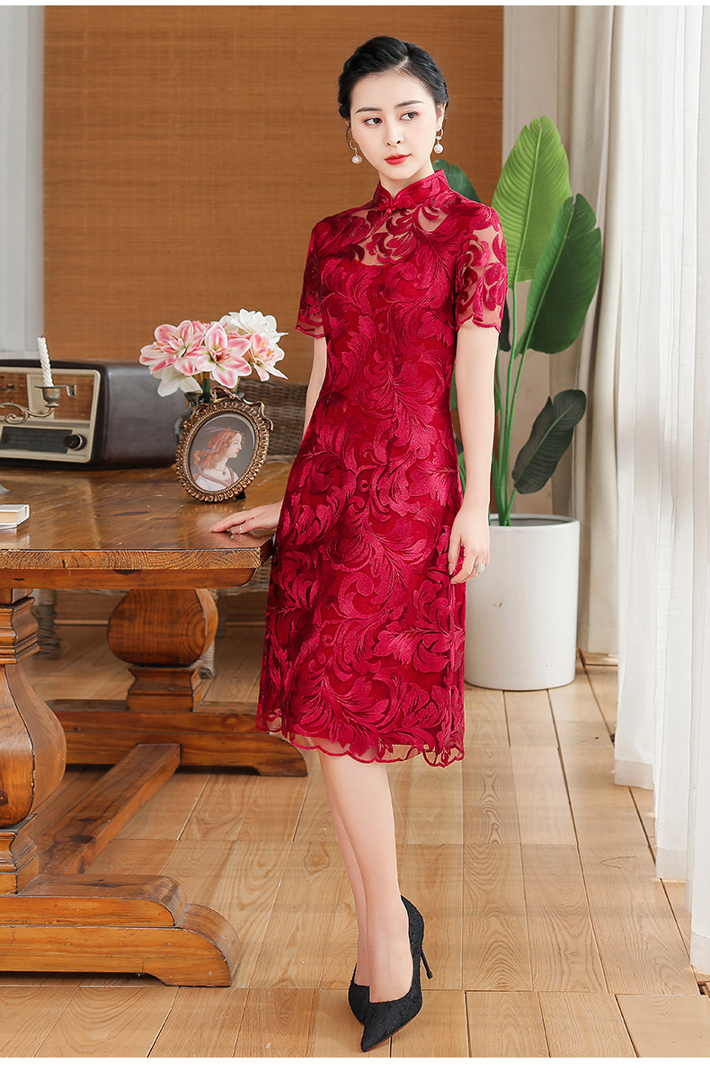 上海旗袍厂TZRY-蕾丝短款新款优雅婚礼喜婆婆礼服 时尚大气刺绣蕾丝改良旗袍连衣裙