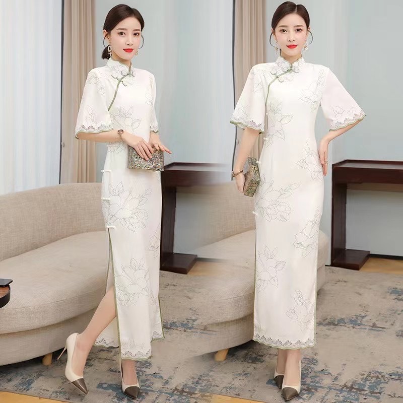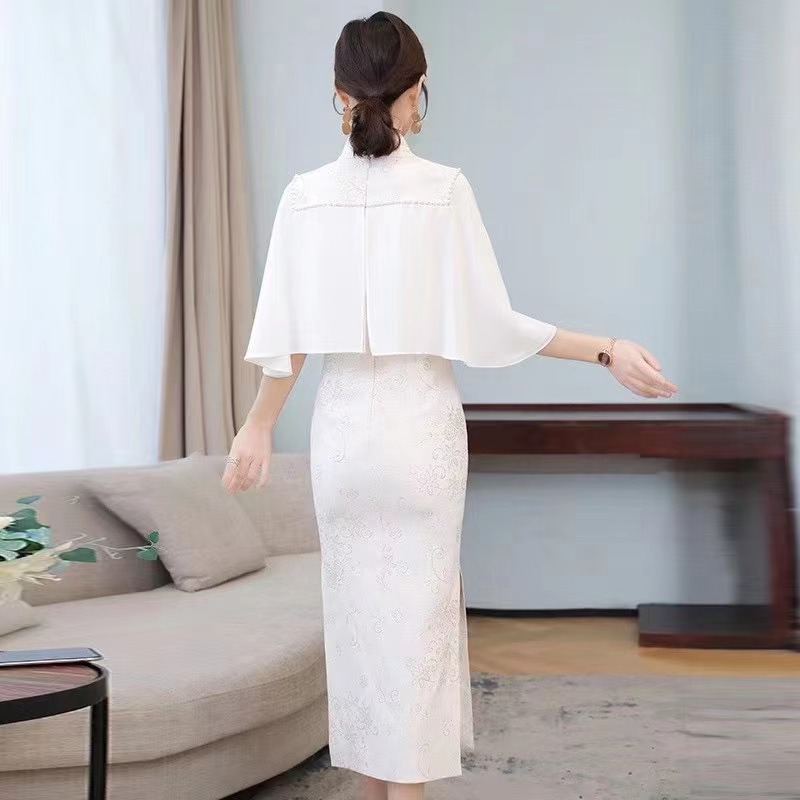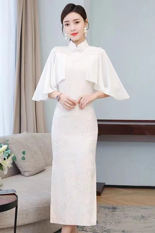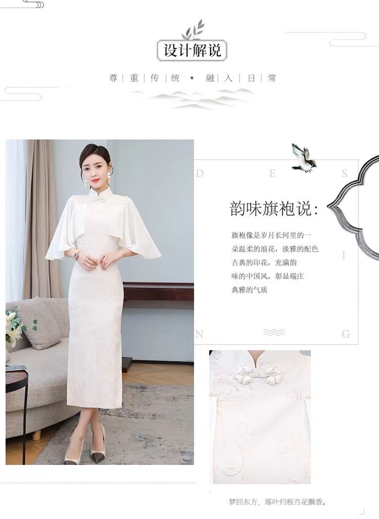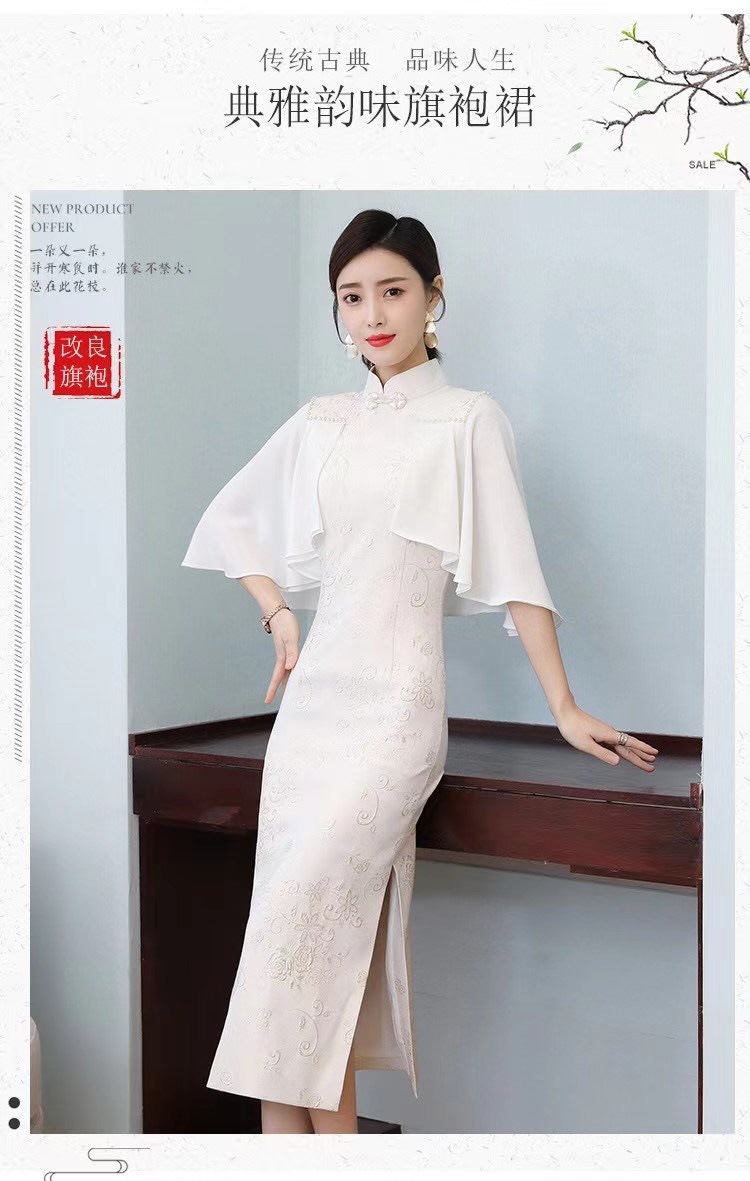 BJ-102新款长款雪纺改良旗袍 日常修身显瘦旗袍连衣裙披肩