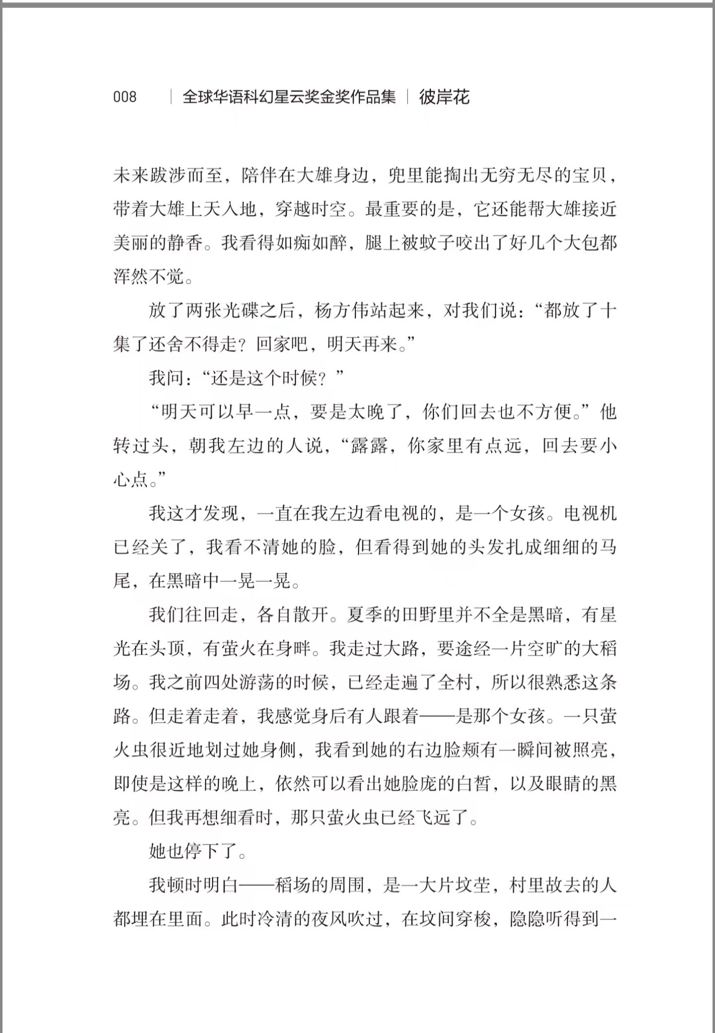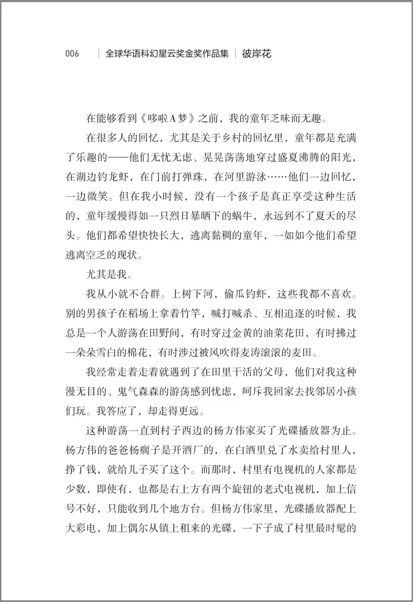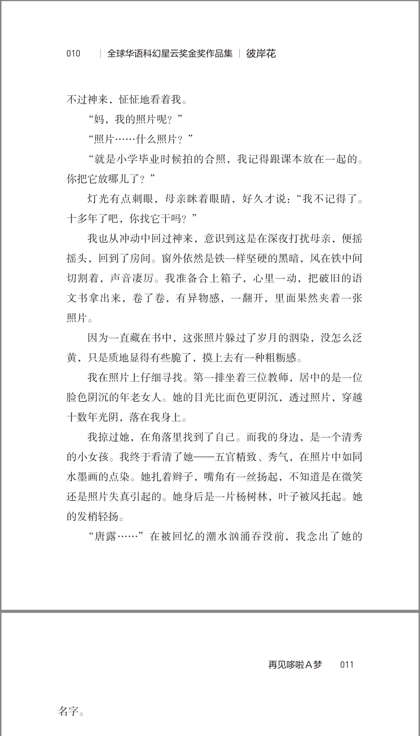 “全球华语科幻星云奖金奖作品集”汇聚了第一至十届(2010-2019)全球华语科幻星云奖的中短篇小说类金奖作品,是21世纪第二个十年里代表华语科幻最高水平的标志性作品集。本书是该作品集中的一册,包括《再见哆啦A梦》《彼岸花》和《嵌合体》3部作品,作者对科学伦理、人工智能、人类起源给出了自己的理解,对友情、爱、陪伴、自由写出了自己的思考,情节生动,文笔细腻,风格独特,充满悬疑,能够激发读者对科技、科幻的好奇和想象力。