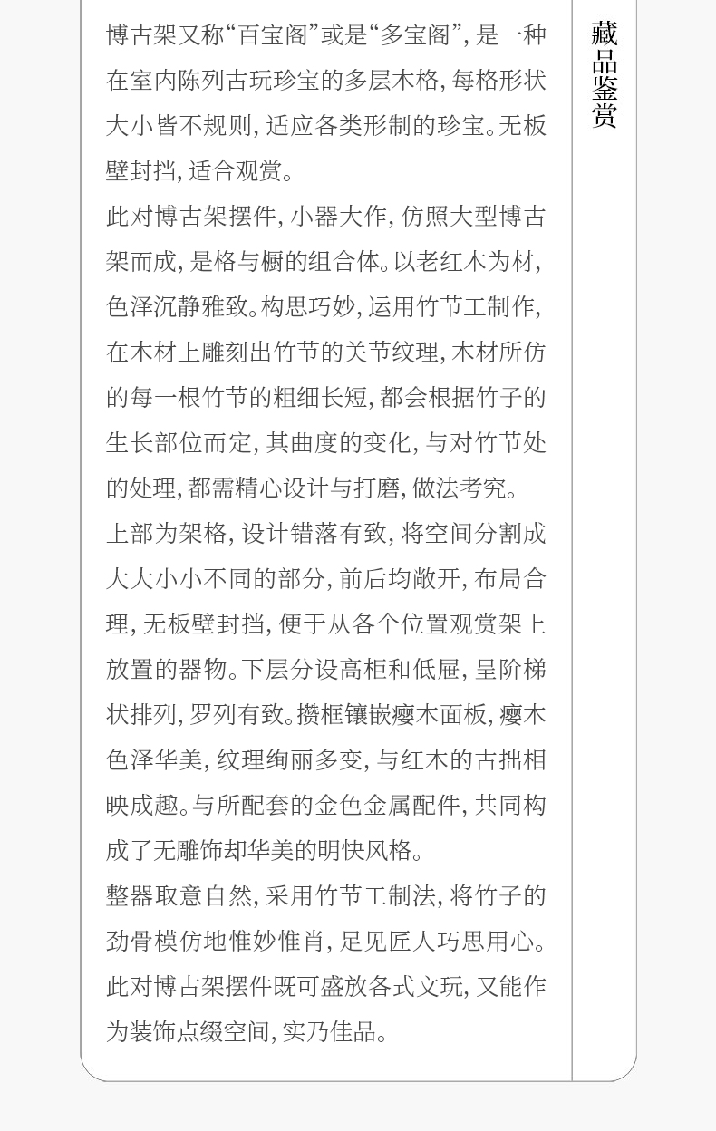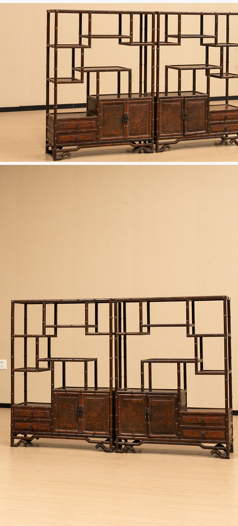 二十世纪 红木镶瘿木竹节工博古架摆件(一对)