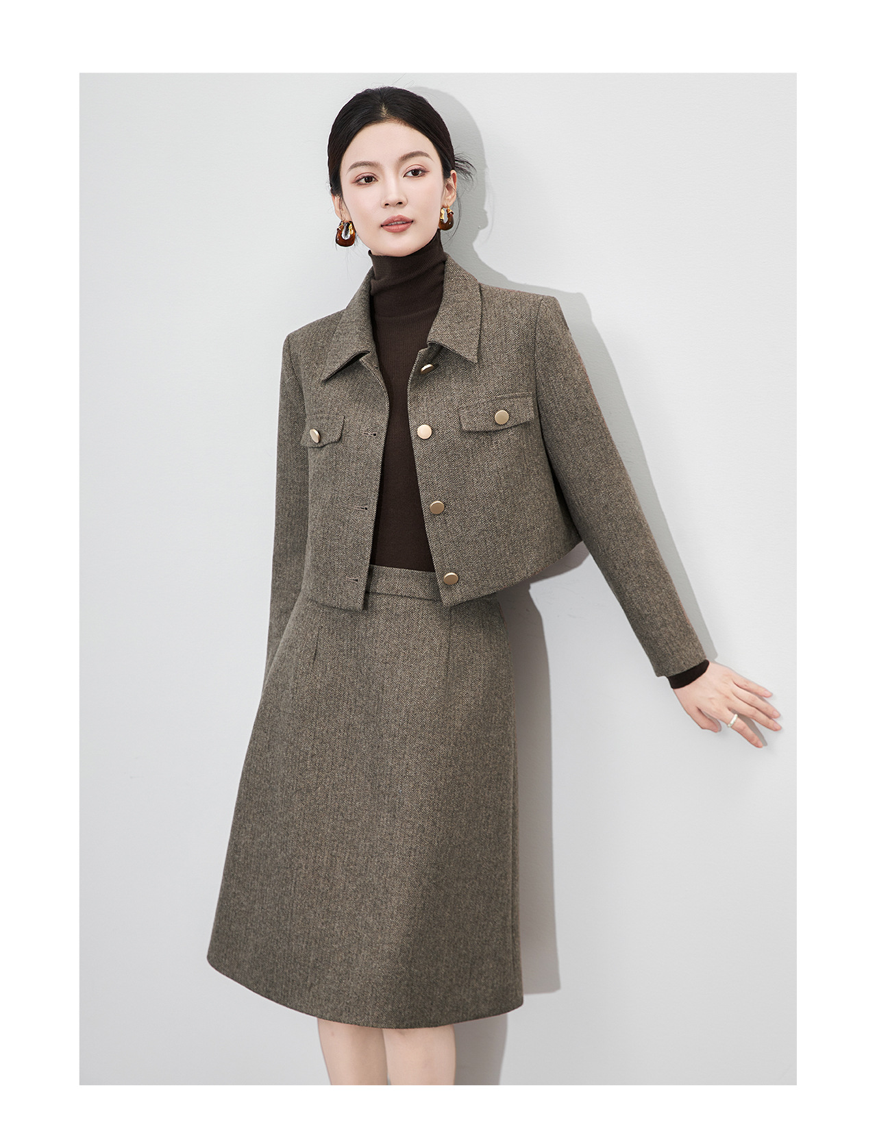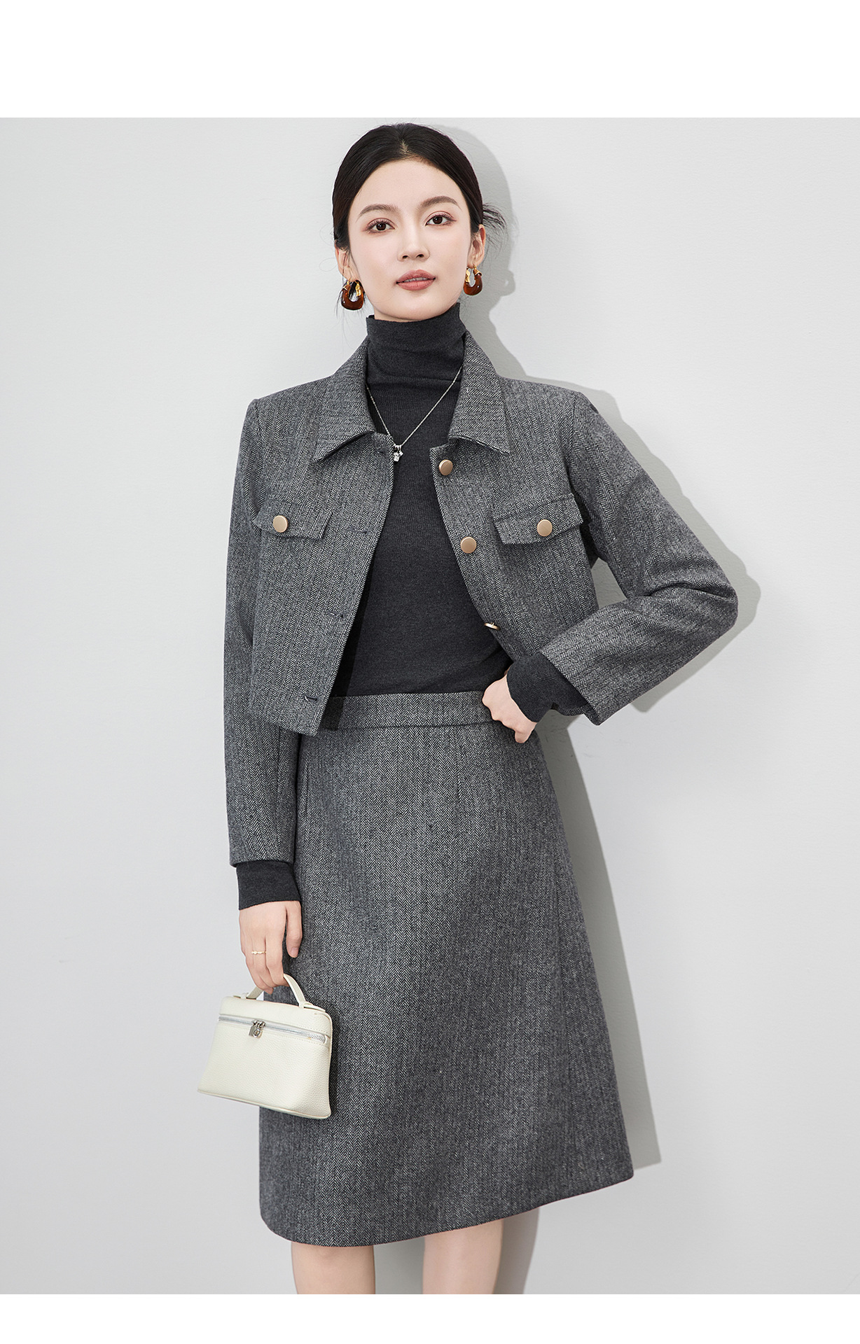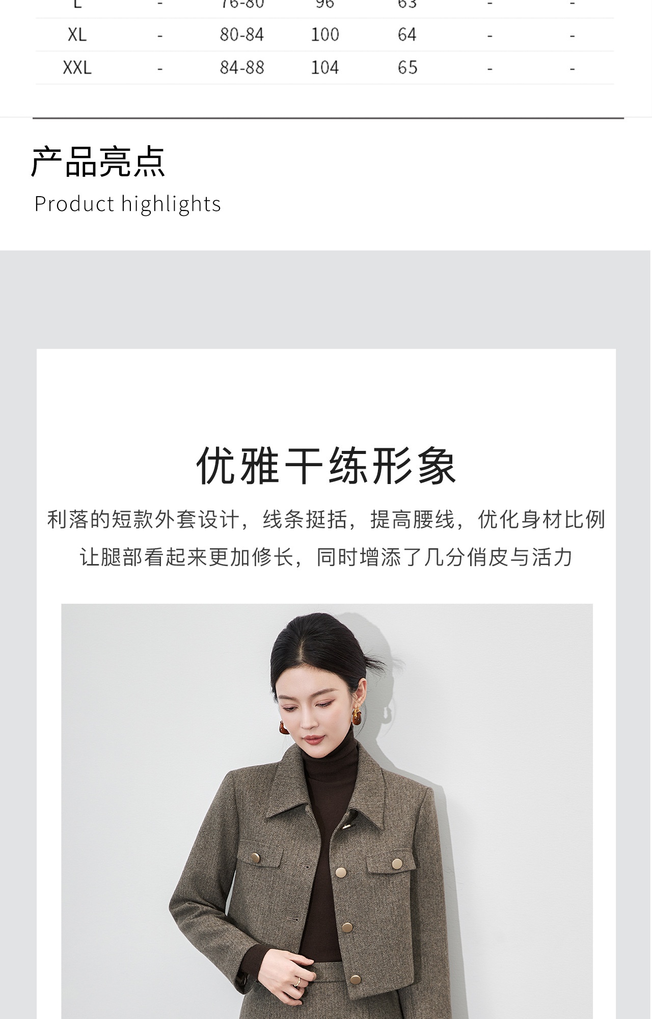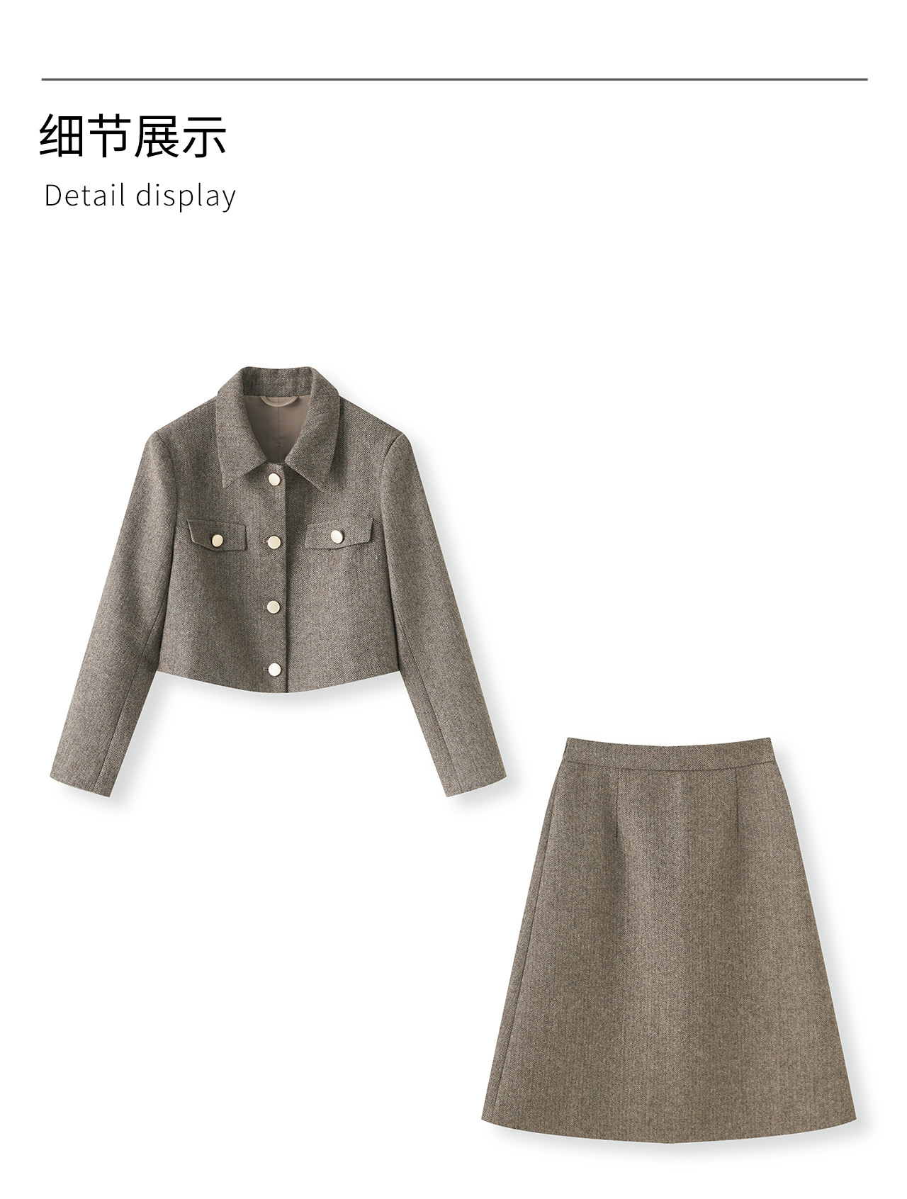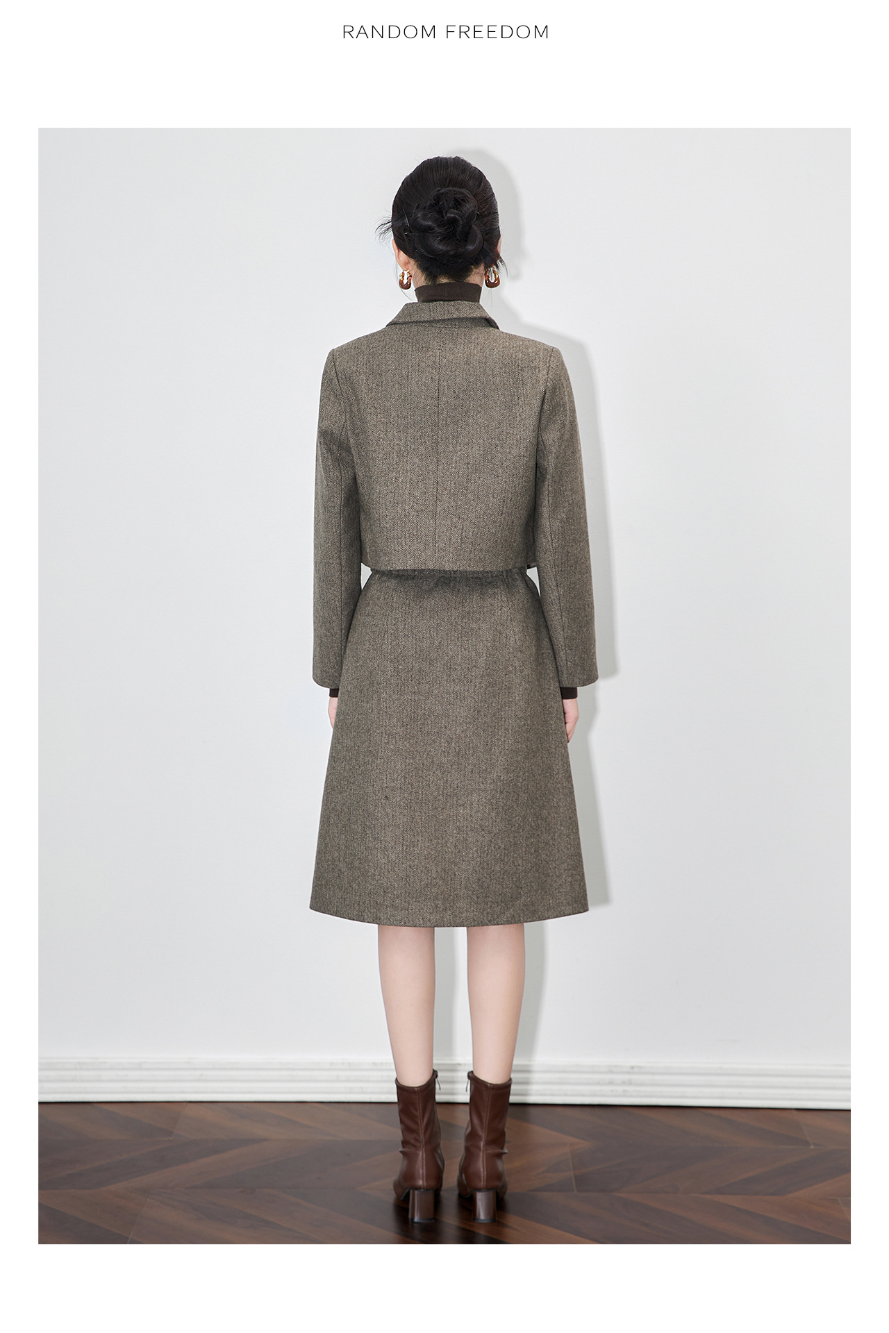 「高货wl」全新升级【铂金会员441/天猫599/差价158】(99910)洛诗琳法式小香风人字纹毛呢短外套高腰A字半身裙两件套
