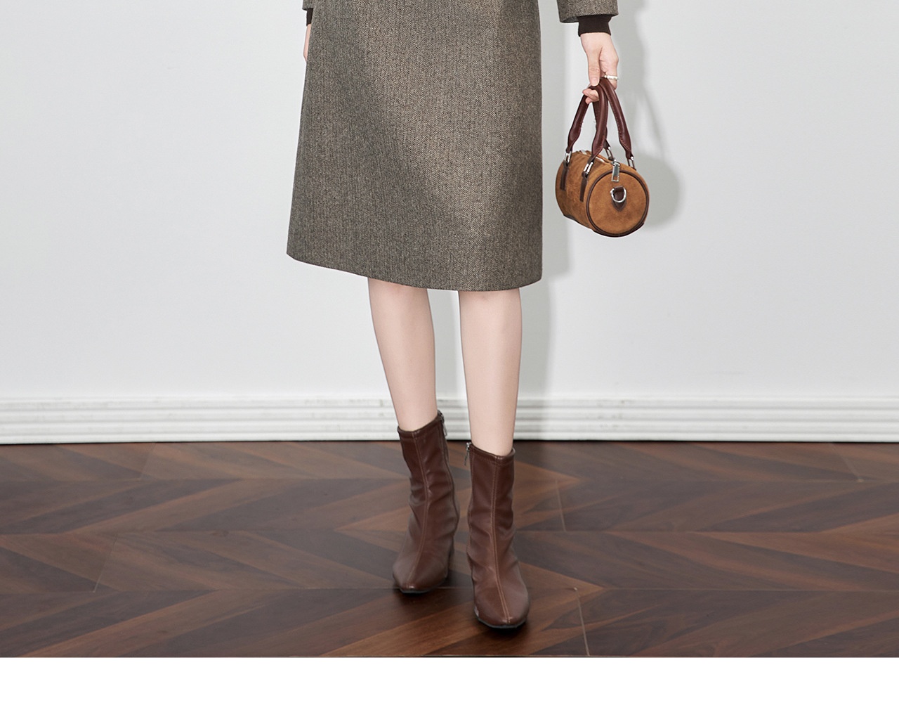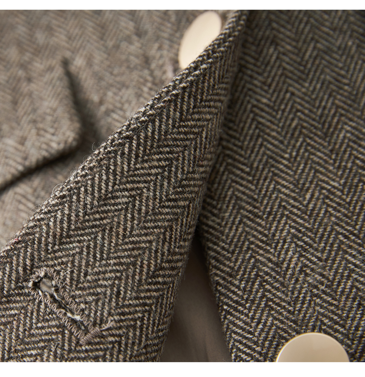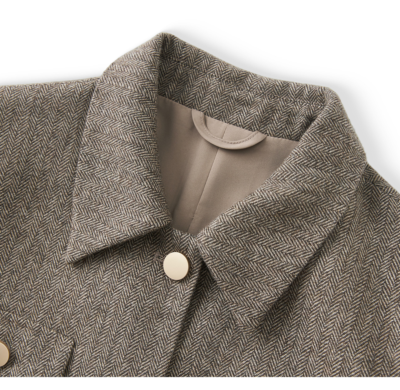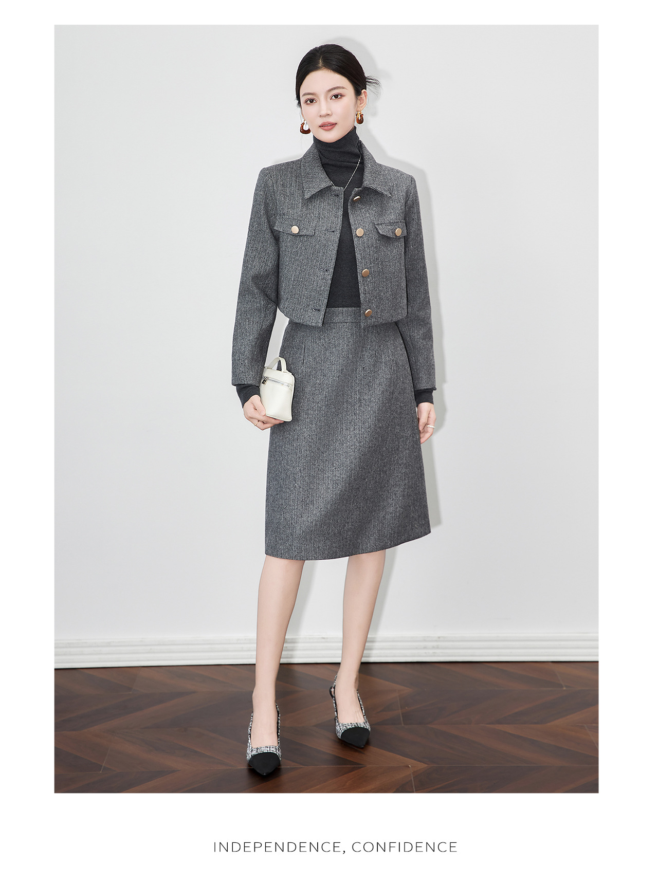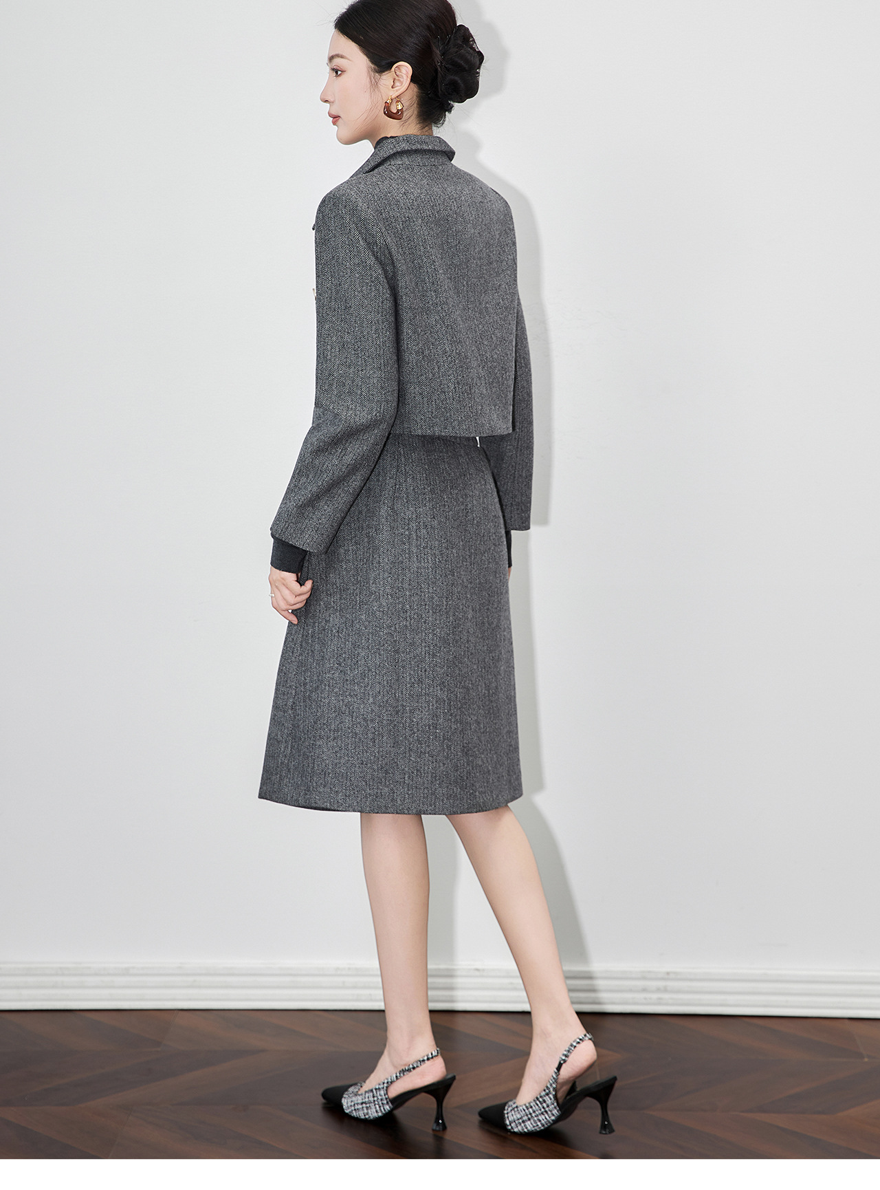 「高货wl」全新升级【铂金会员441/天猫599/差价158】(99910)洛诗琳法式小香风人字纹毛呢短外套高腰A字半身裙两件套