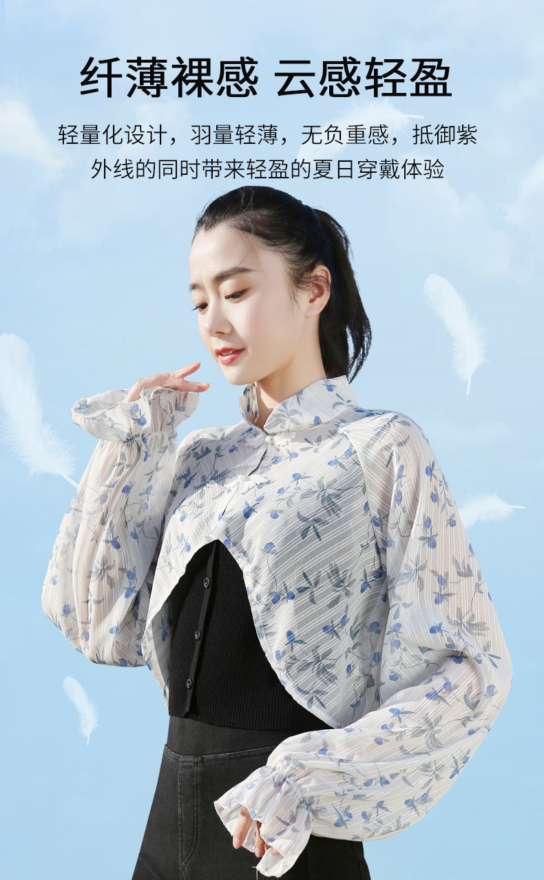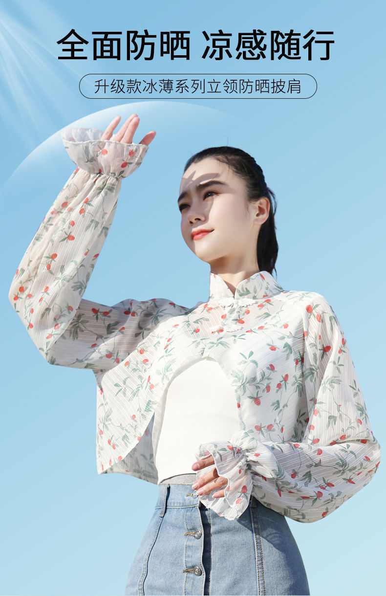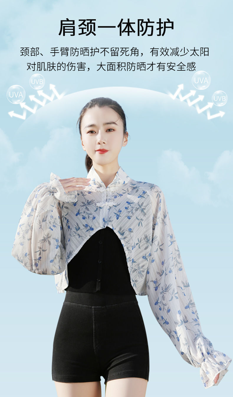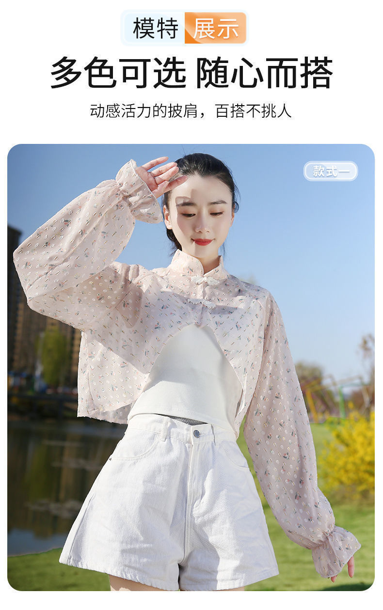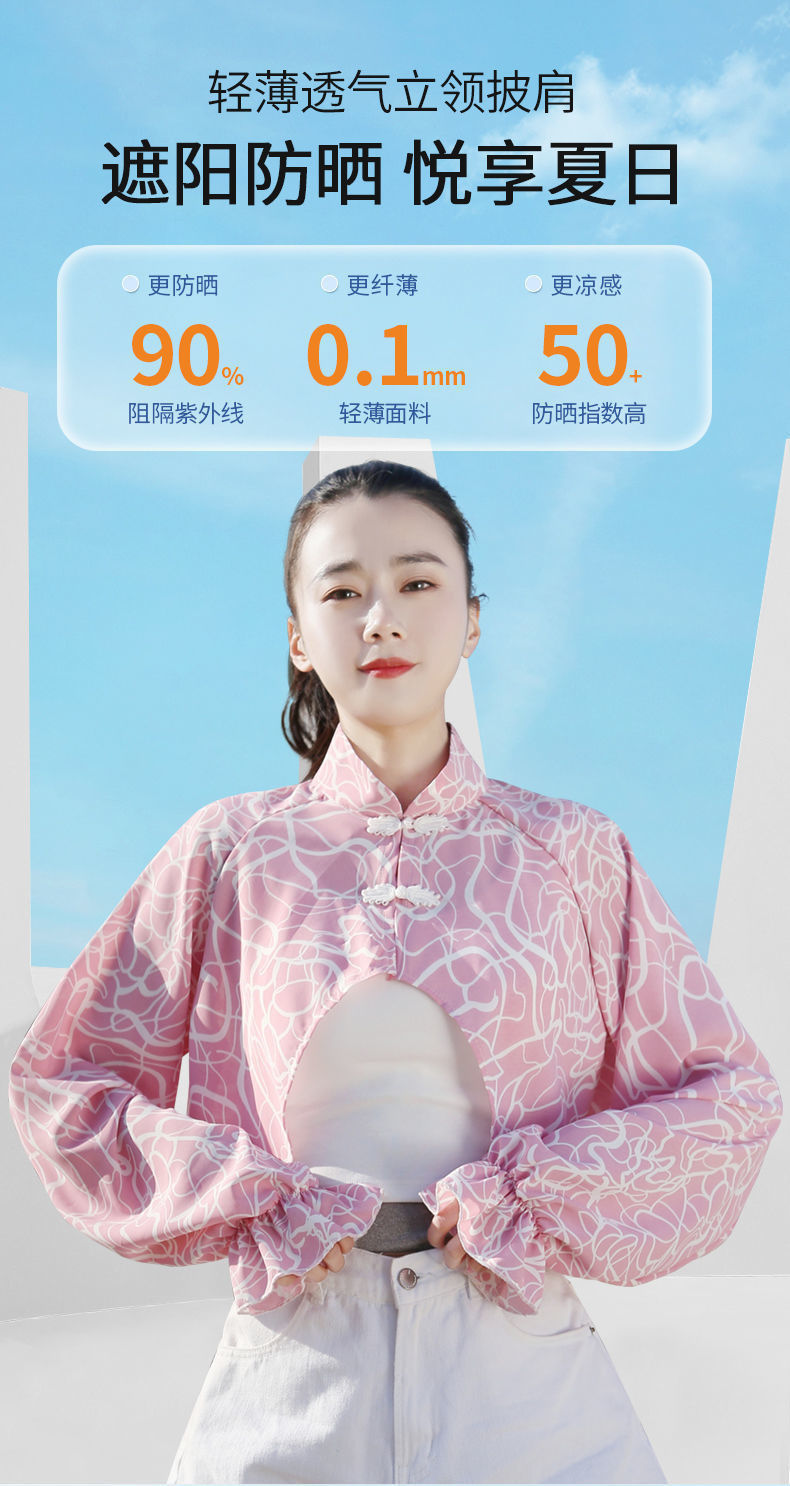 S5810 防晒衣女夏季新款短款长袖遮阳防晒服透气防紫外线薄款开车披肩