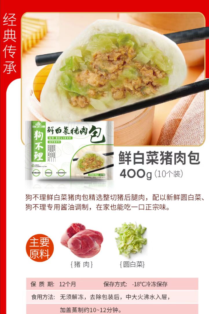YP狗不理包子 8x400g鲜白菜猪肉+2x400g猪肉青葱包