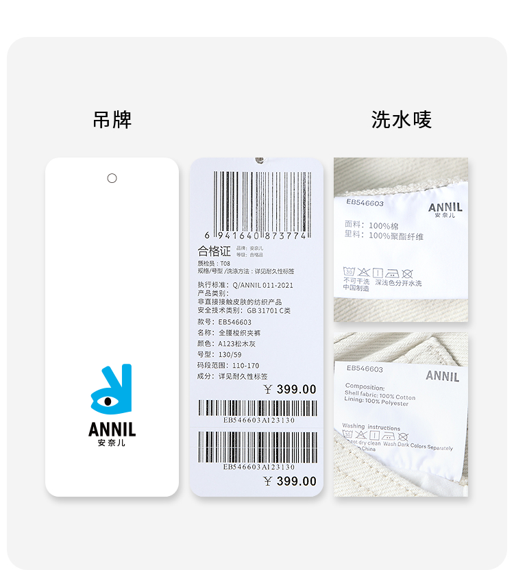 男童全腰梭织夹裤冬季新款安奈儿童装EB546603