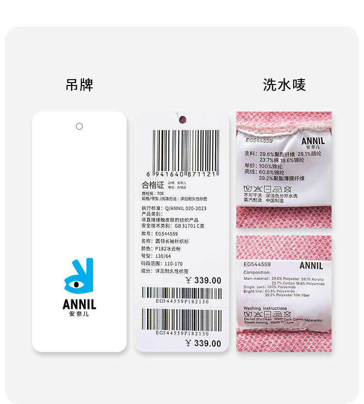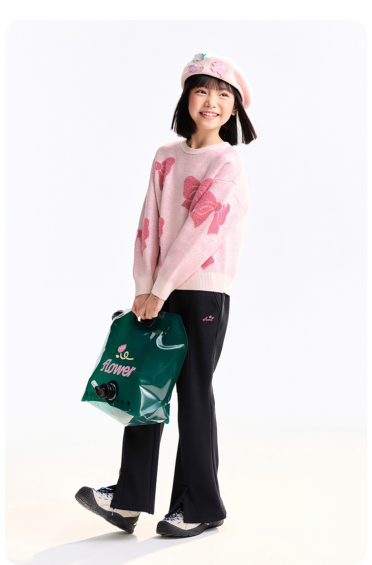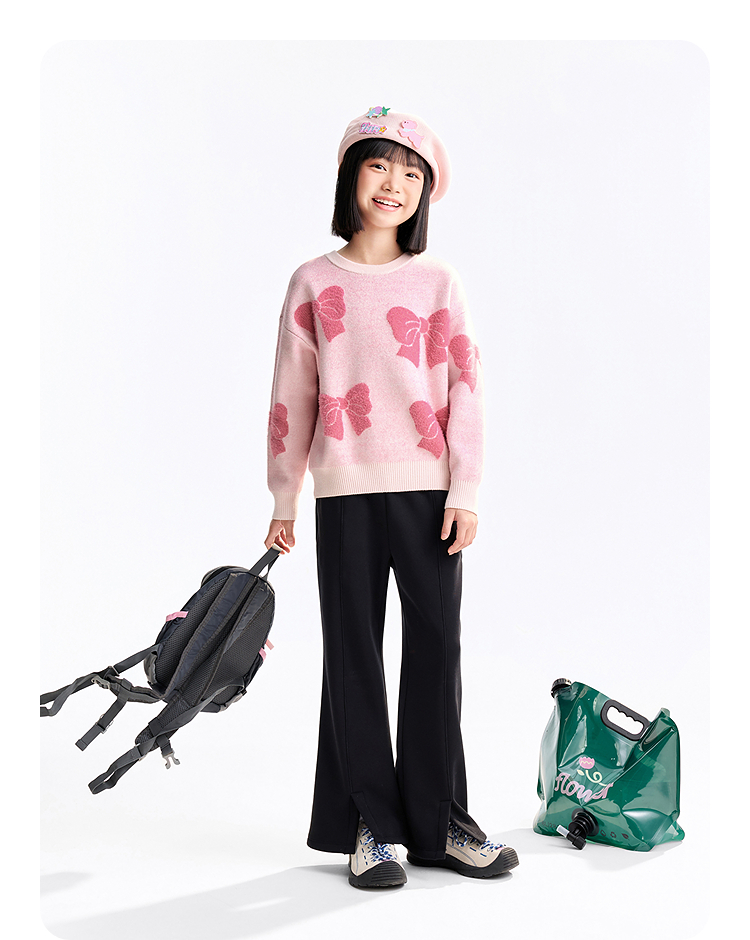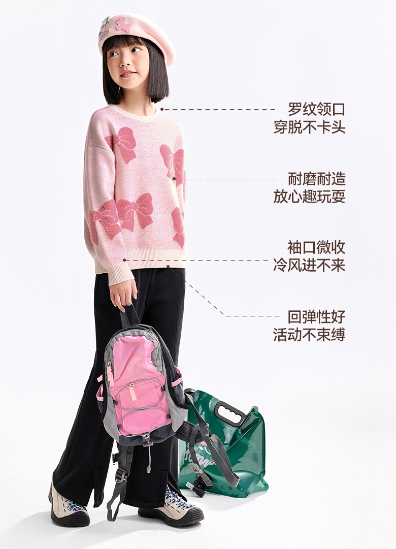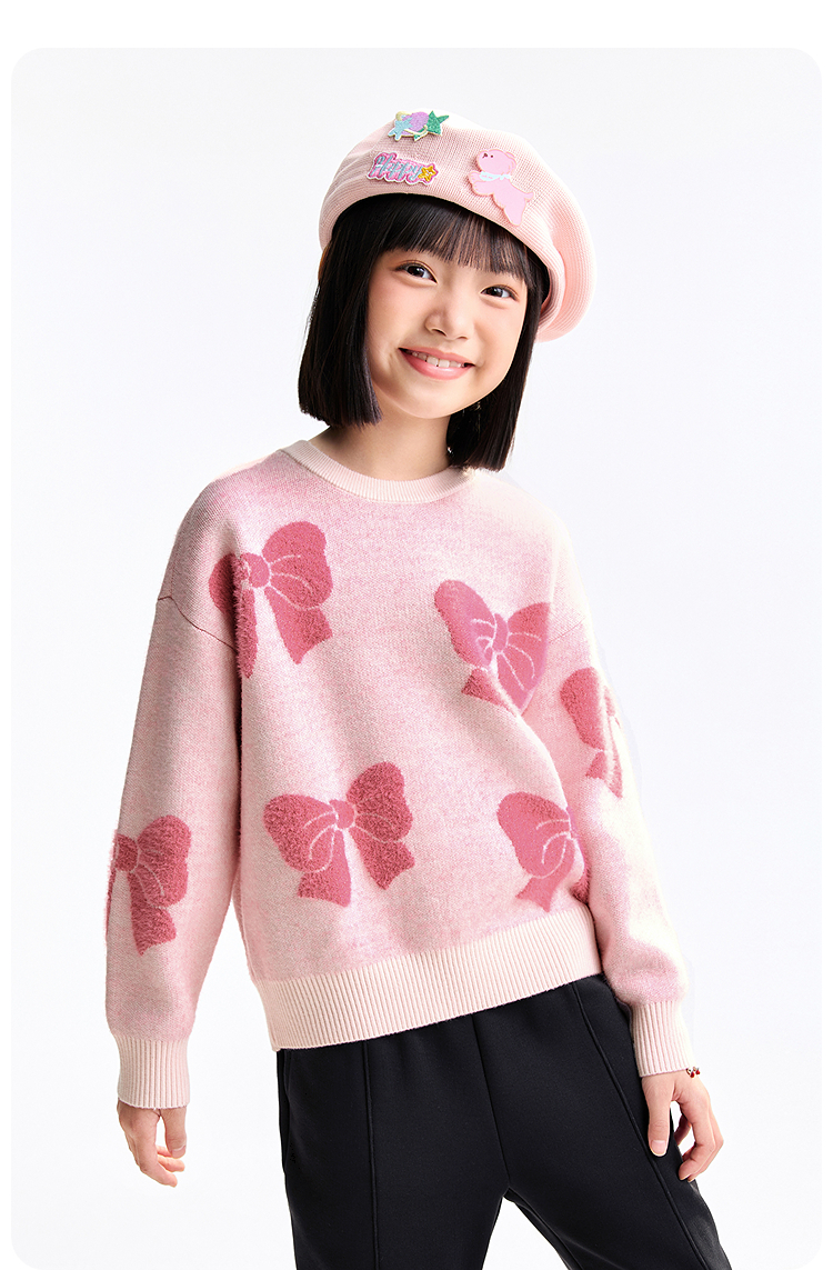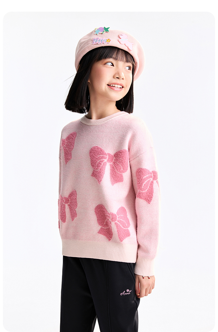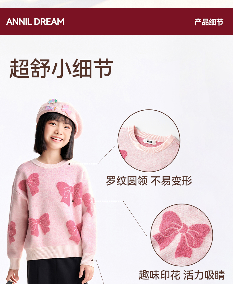 女童圆领长袖针织衫冬季新款安奈儿童装EG544559