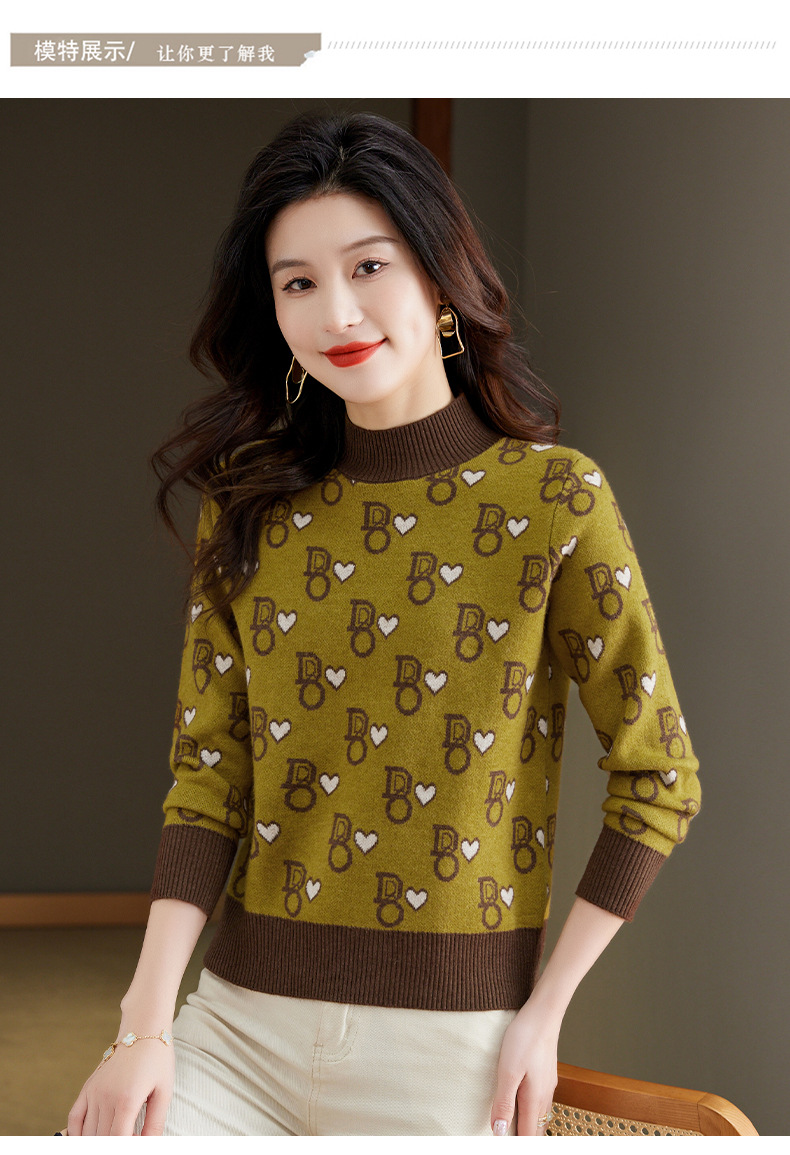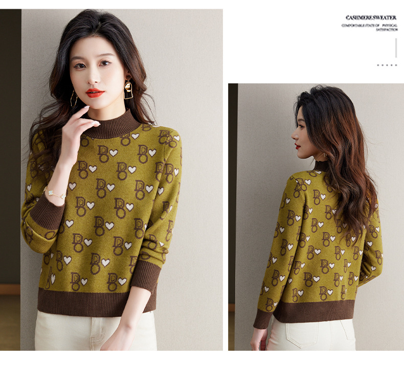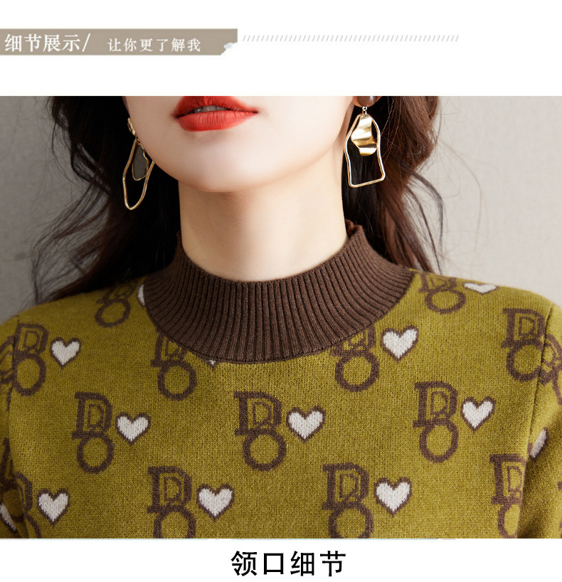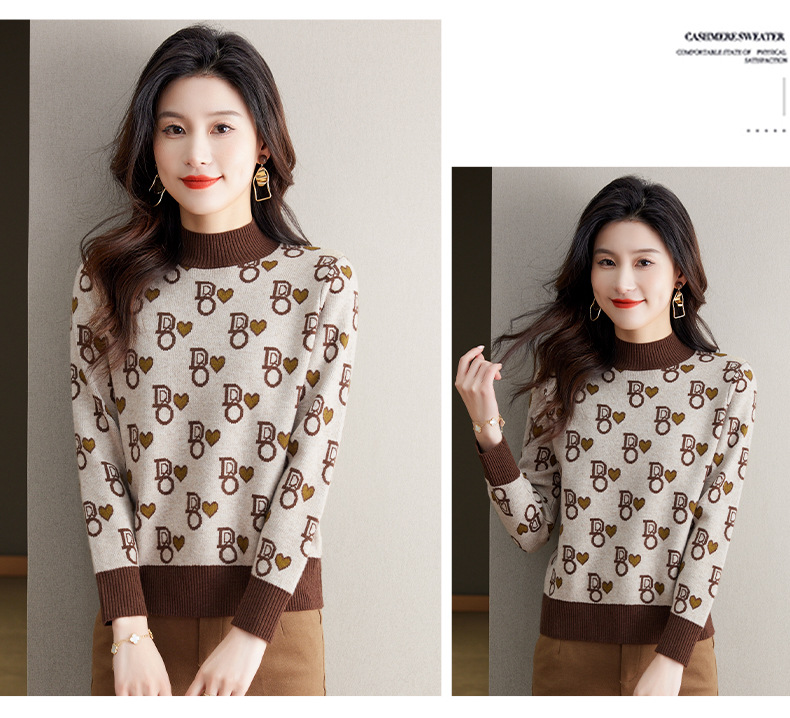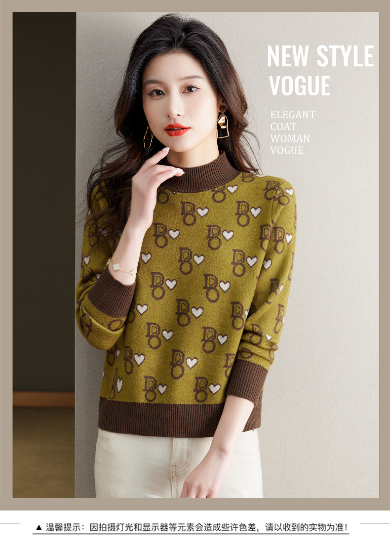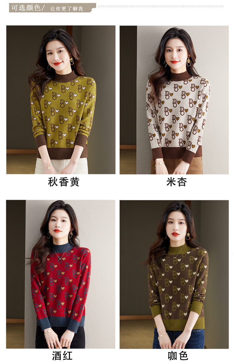 提花加厚毛衣,女短款小个子上衣秋冬新款半高领打底衫洋气内搭CC-BSM-8866