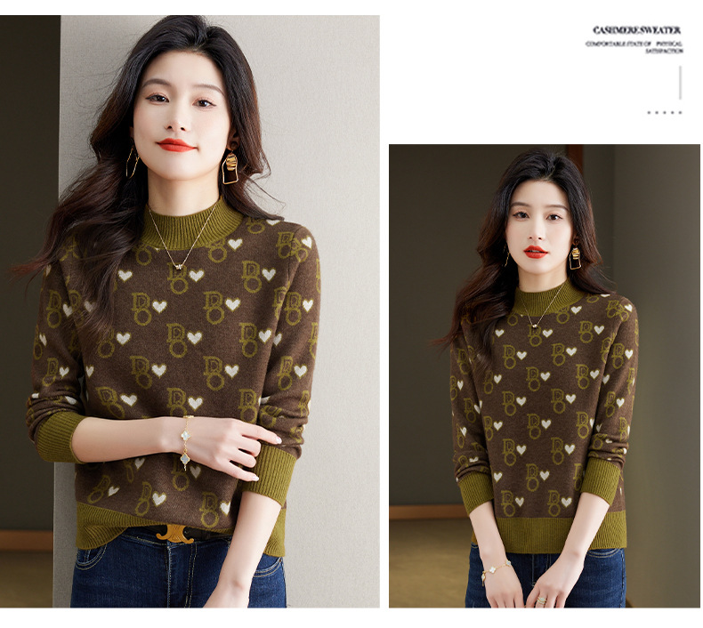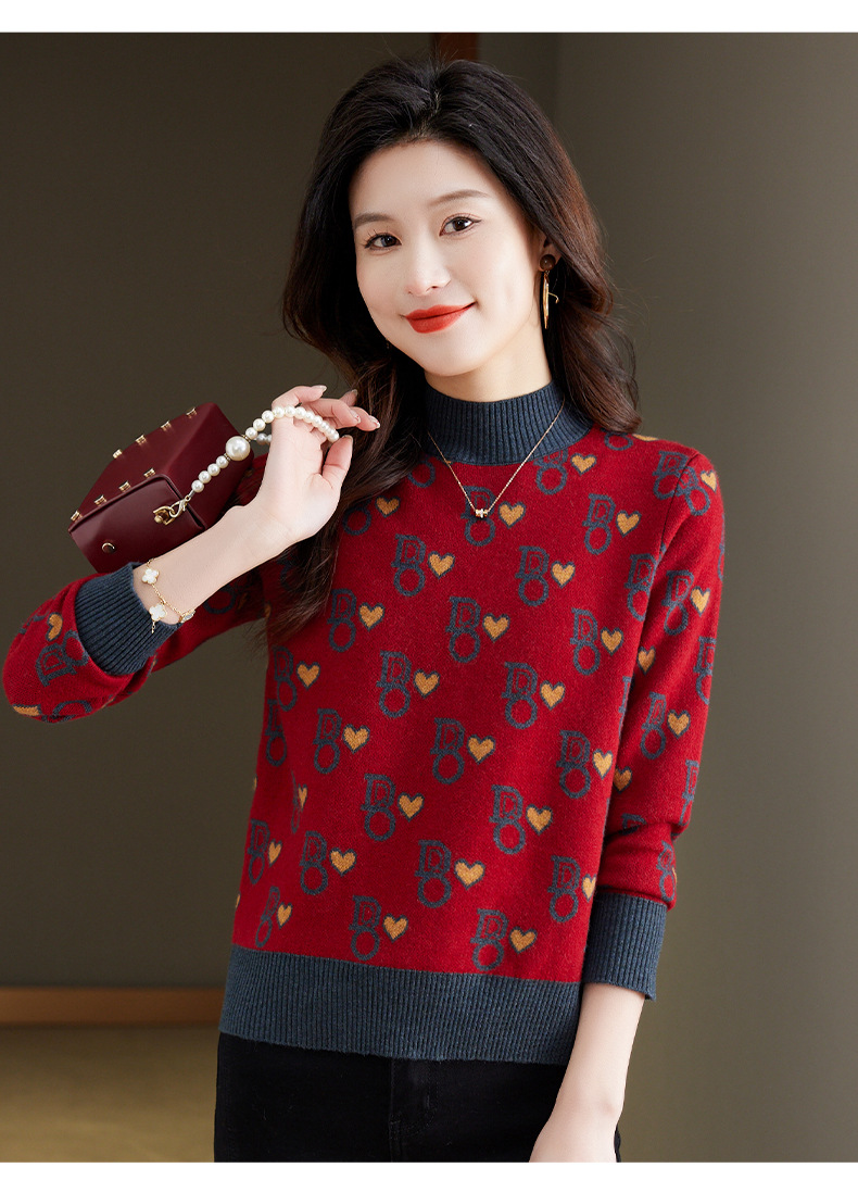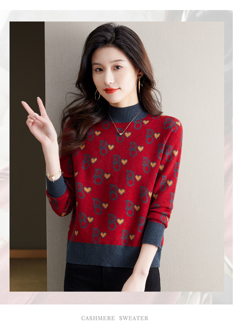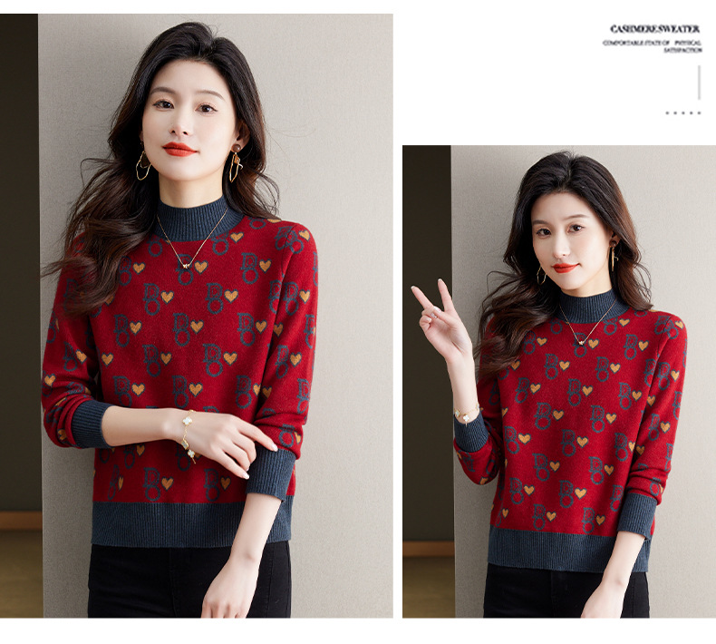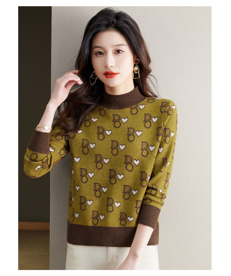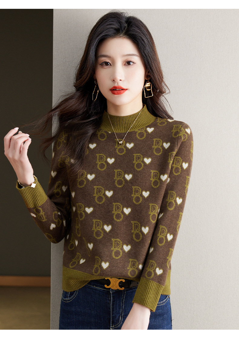 提花加厚毛衣,女短款小个子上衣秋冬新款半高领打底衫洋气内搭CC-BSM-8866