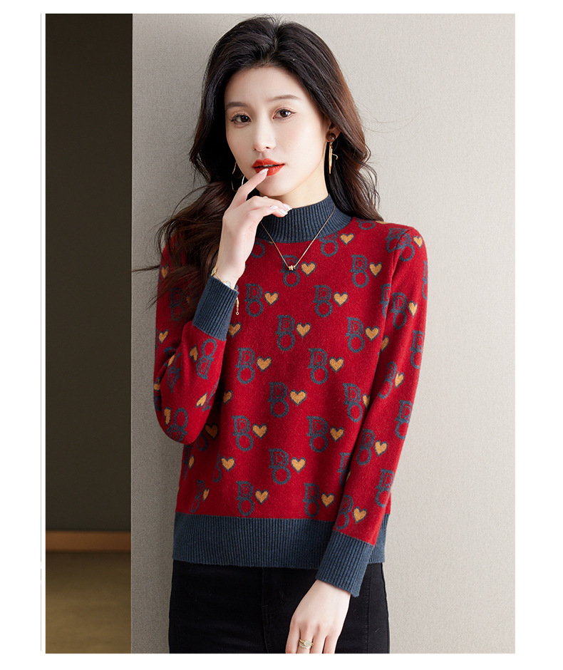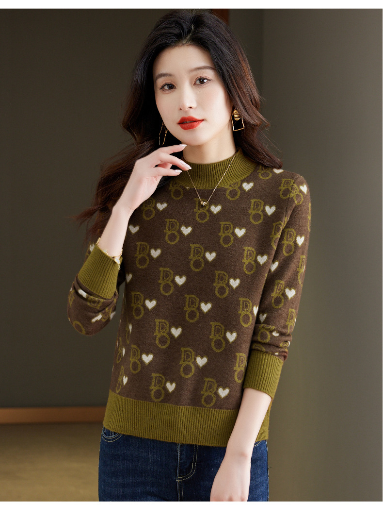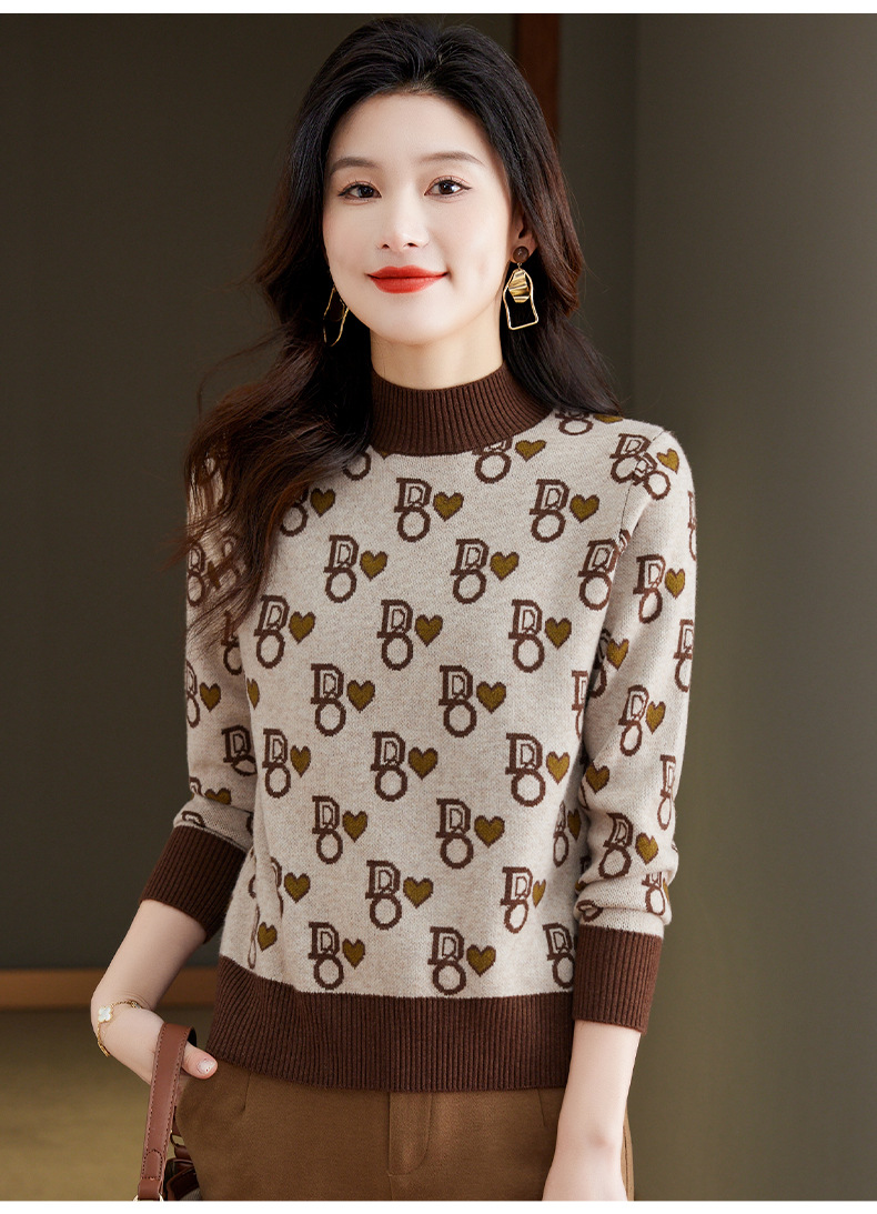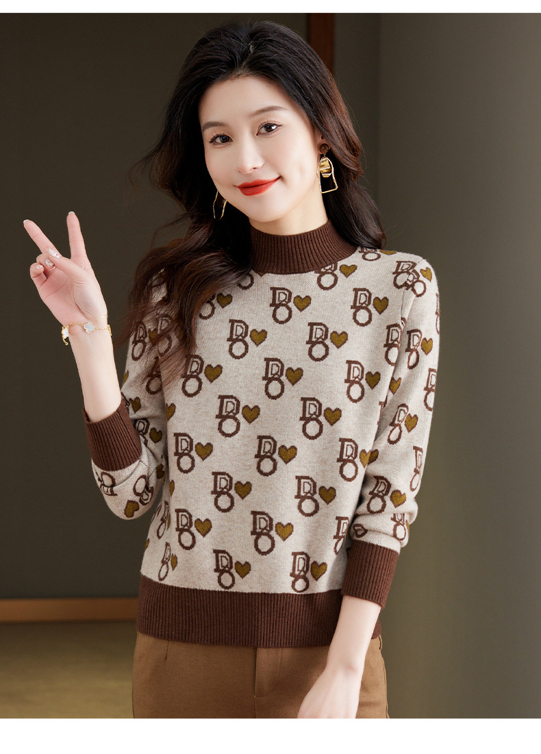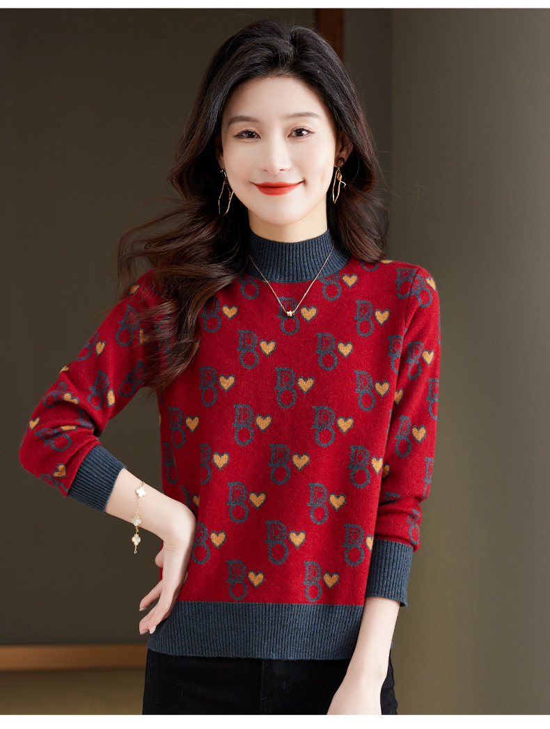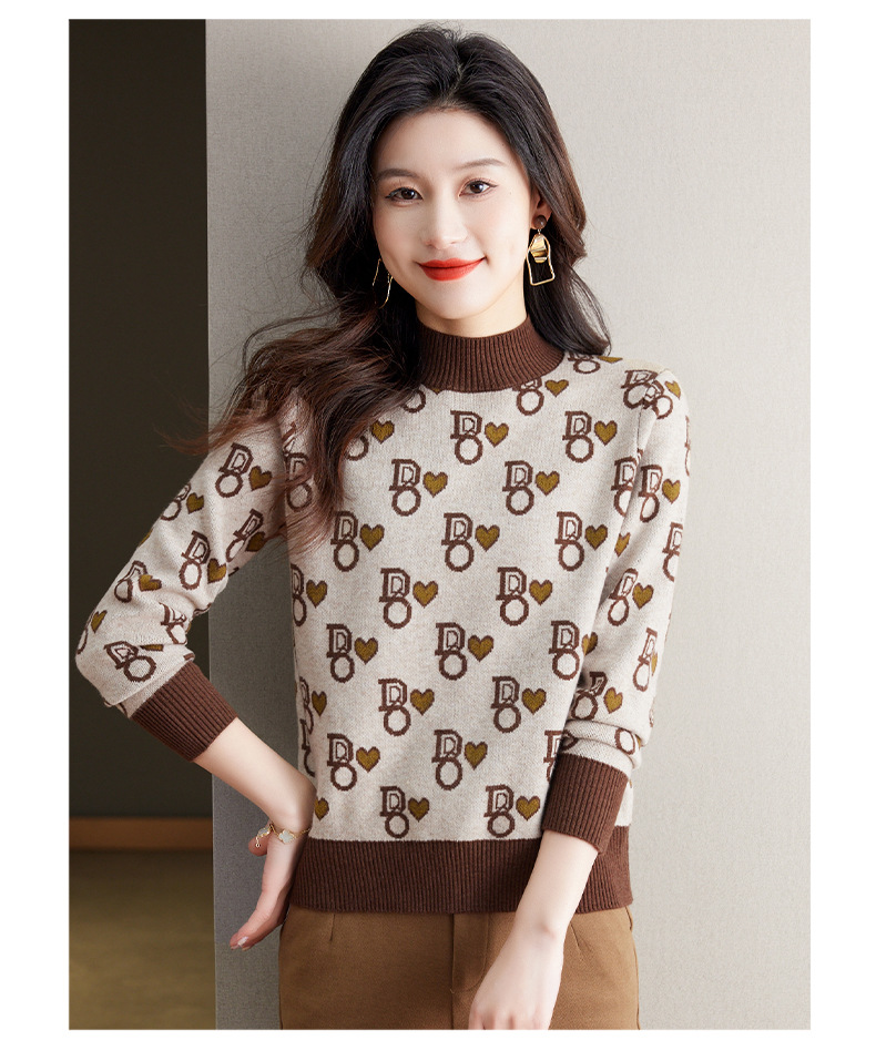 提花加厚毛衣,女短款小个子上衣秋冬新款半高领打底衫洋气内搭CC-BSM-8866